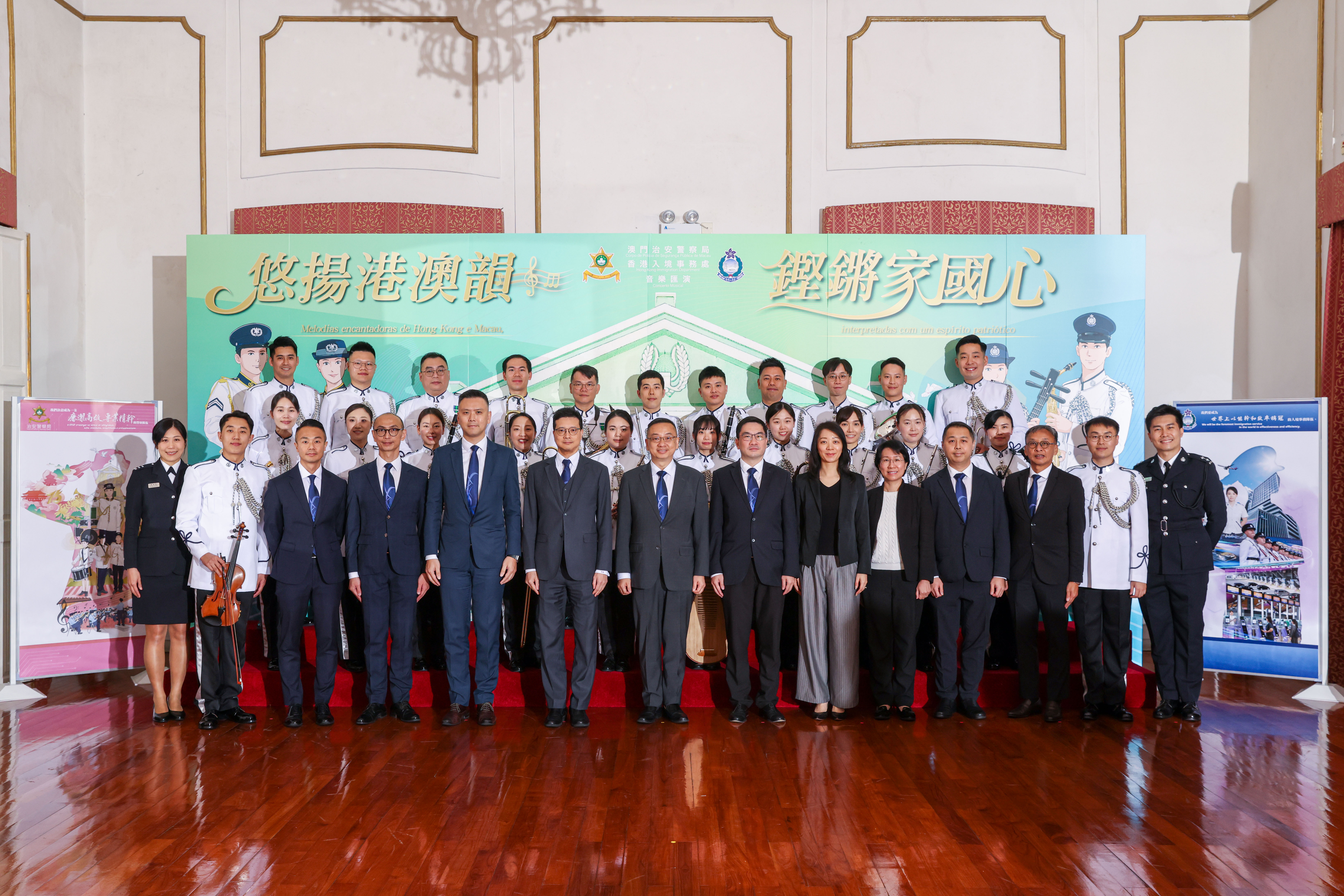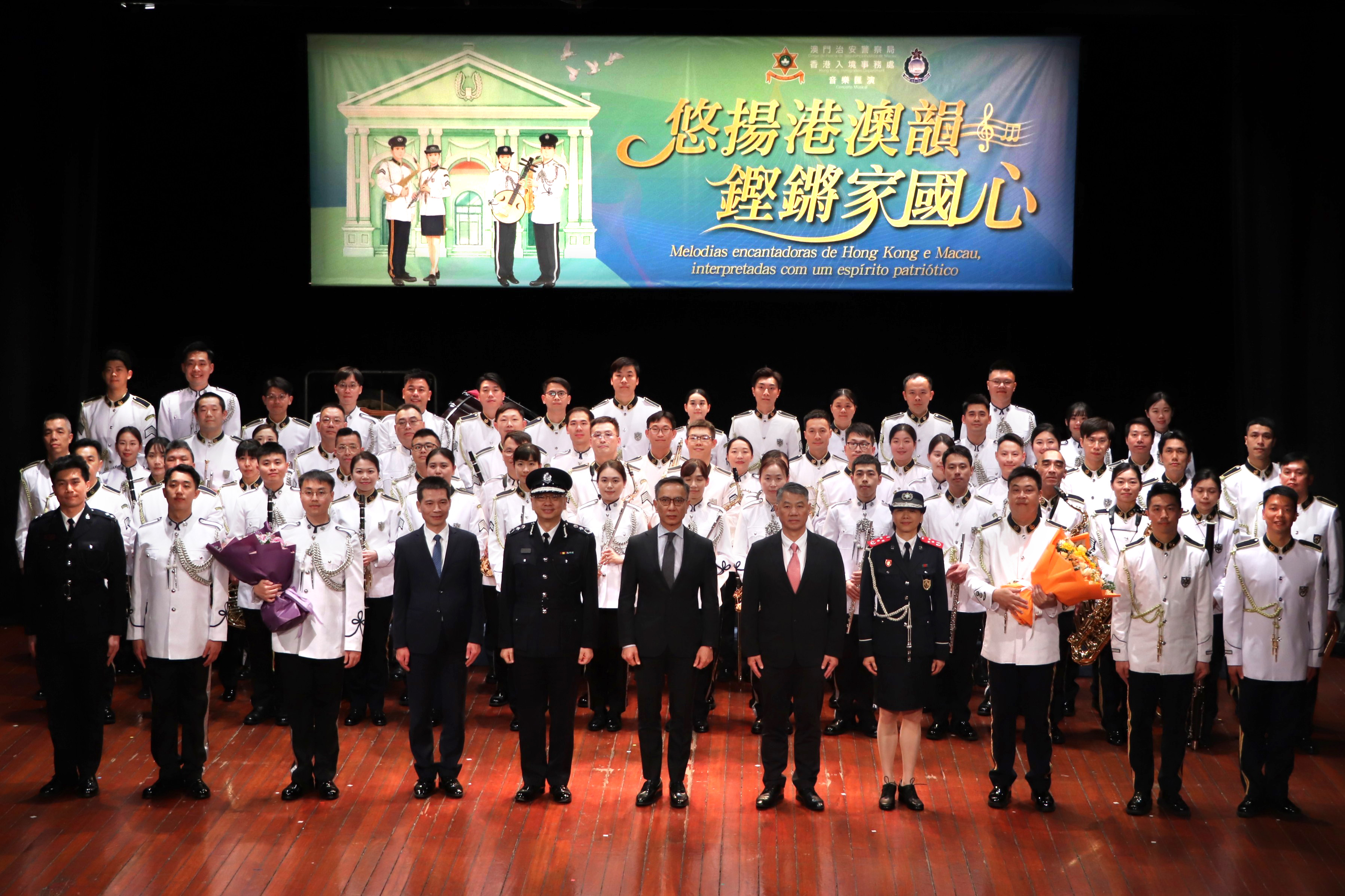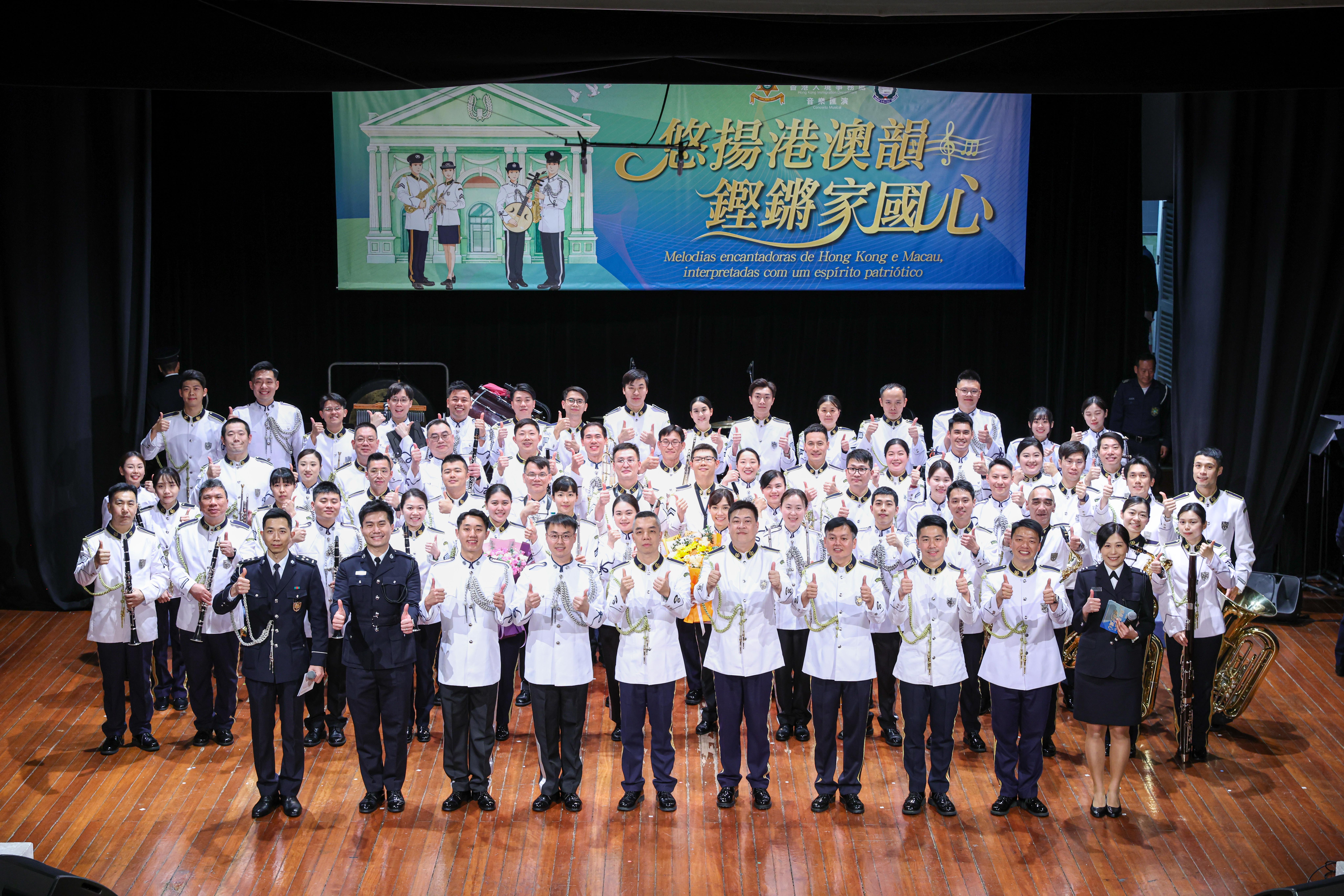適逢3月14日「澳門治安警察日」,入境事務處樂隊應邀前往澳門,與澳門治安警察局樂隊同台交流。在世界文化遺產—澳門崗頂劇院,兩地樂隊聯袂呈獻《悠揚港澳韻 鏗鏘家國心》音樂匯演。郭處長聯同多位長官亦親臨支持。