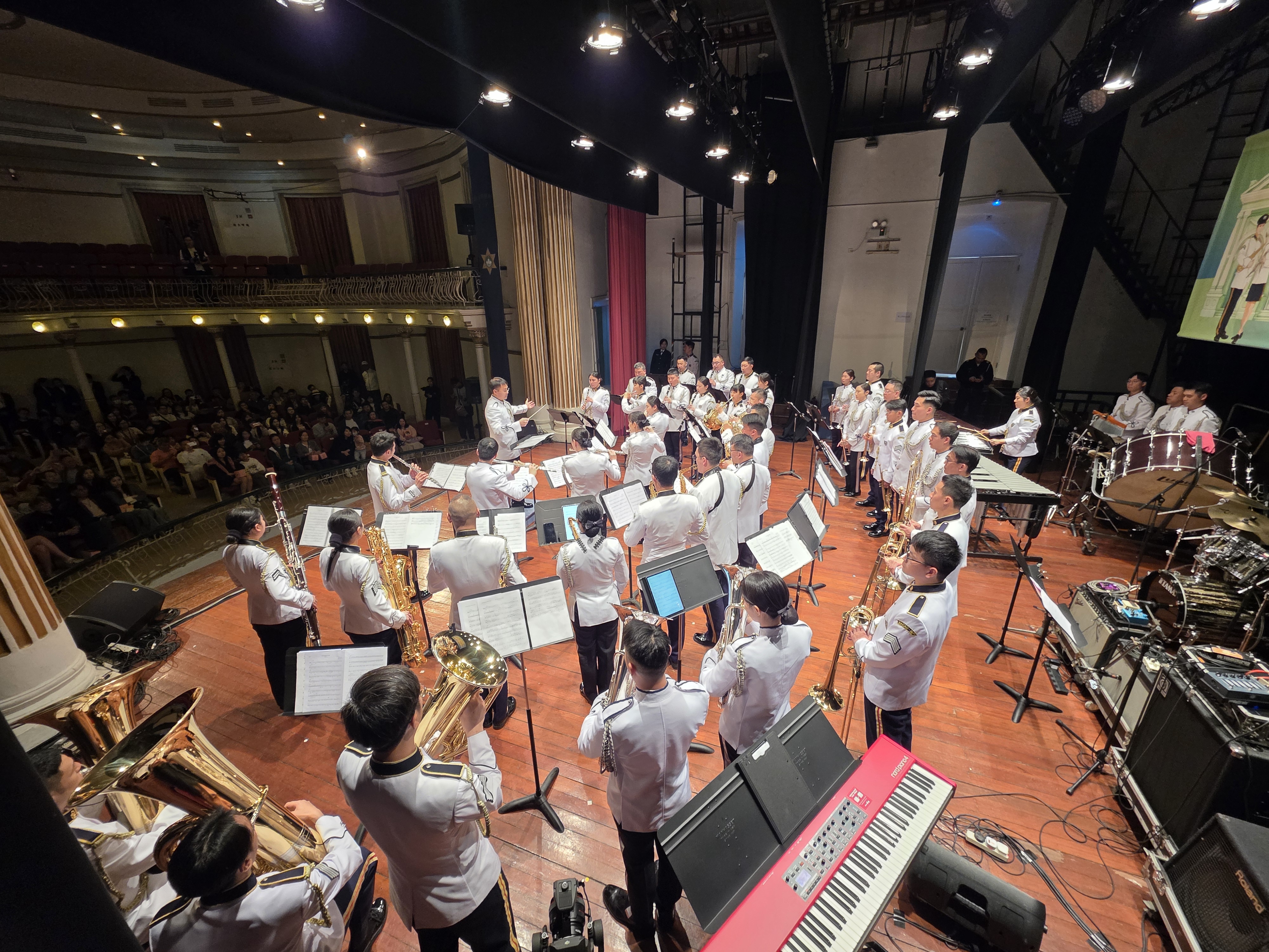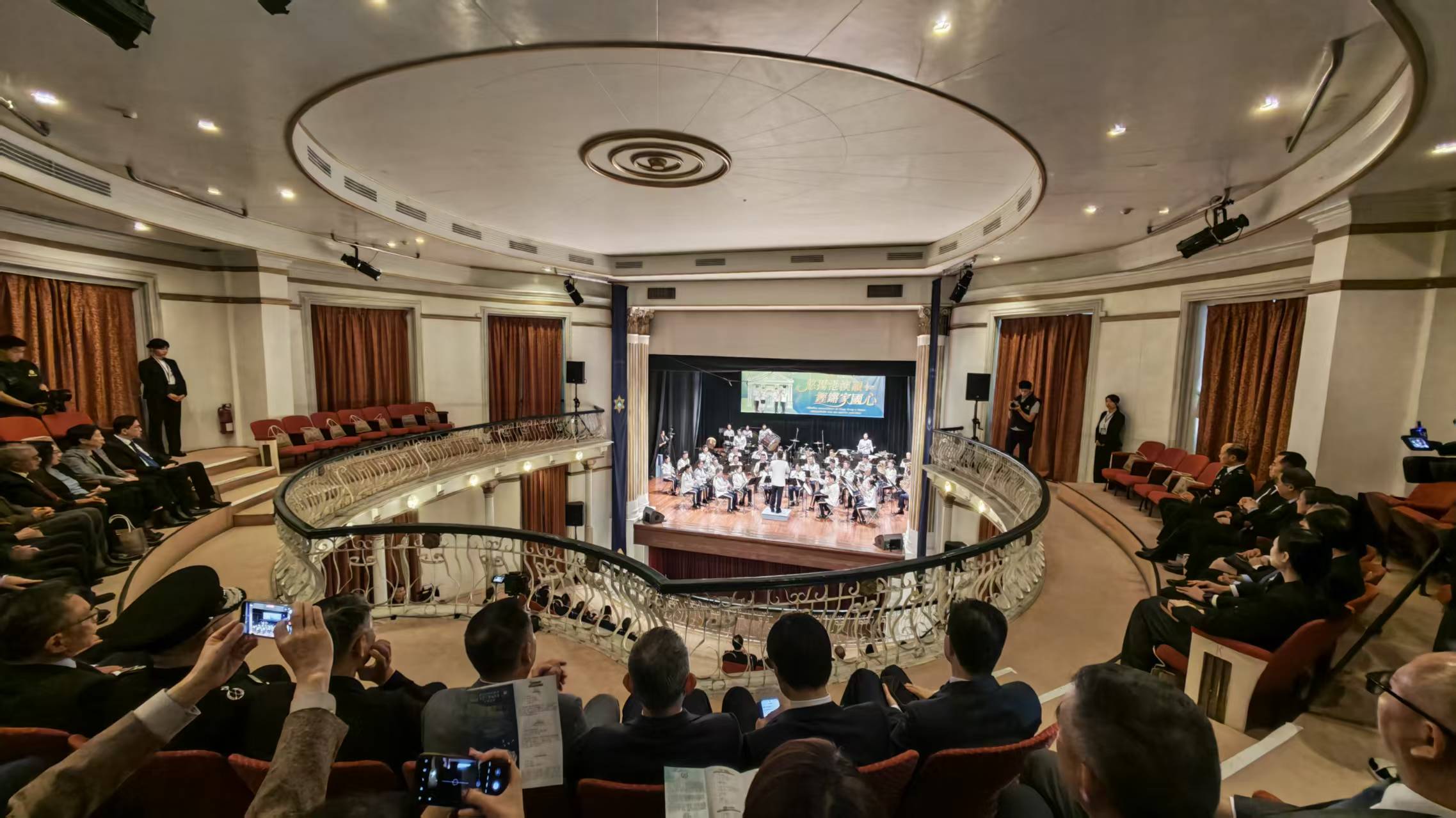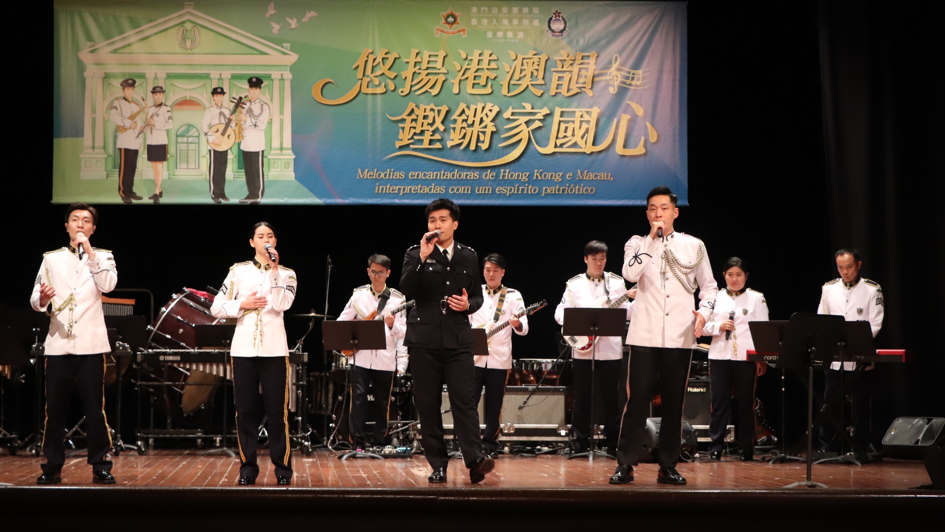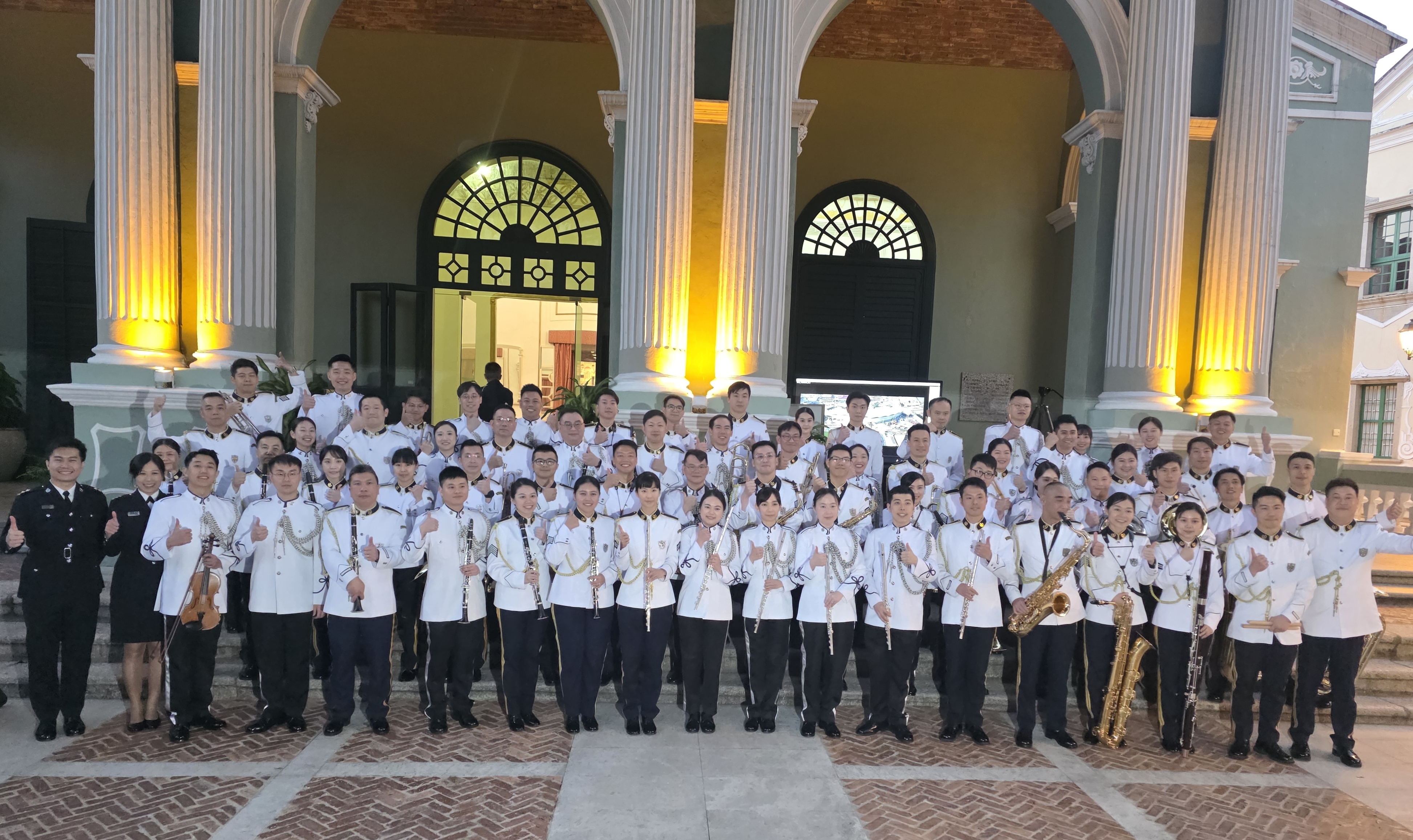 適逢3月14日「澳門治安警察日」,入境事務處樂隊應邀前往澳門,與澳門治安警察局樂隊同台交流。在世界文化遺產—澳門崗頂劇院,兩地樂隊聯袂呈獻《悠揚港澳韻 鏗鏘家國心》音樂匯演。郭處長聯同多位長官亦親臨支持。