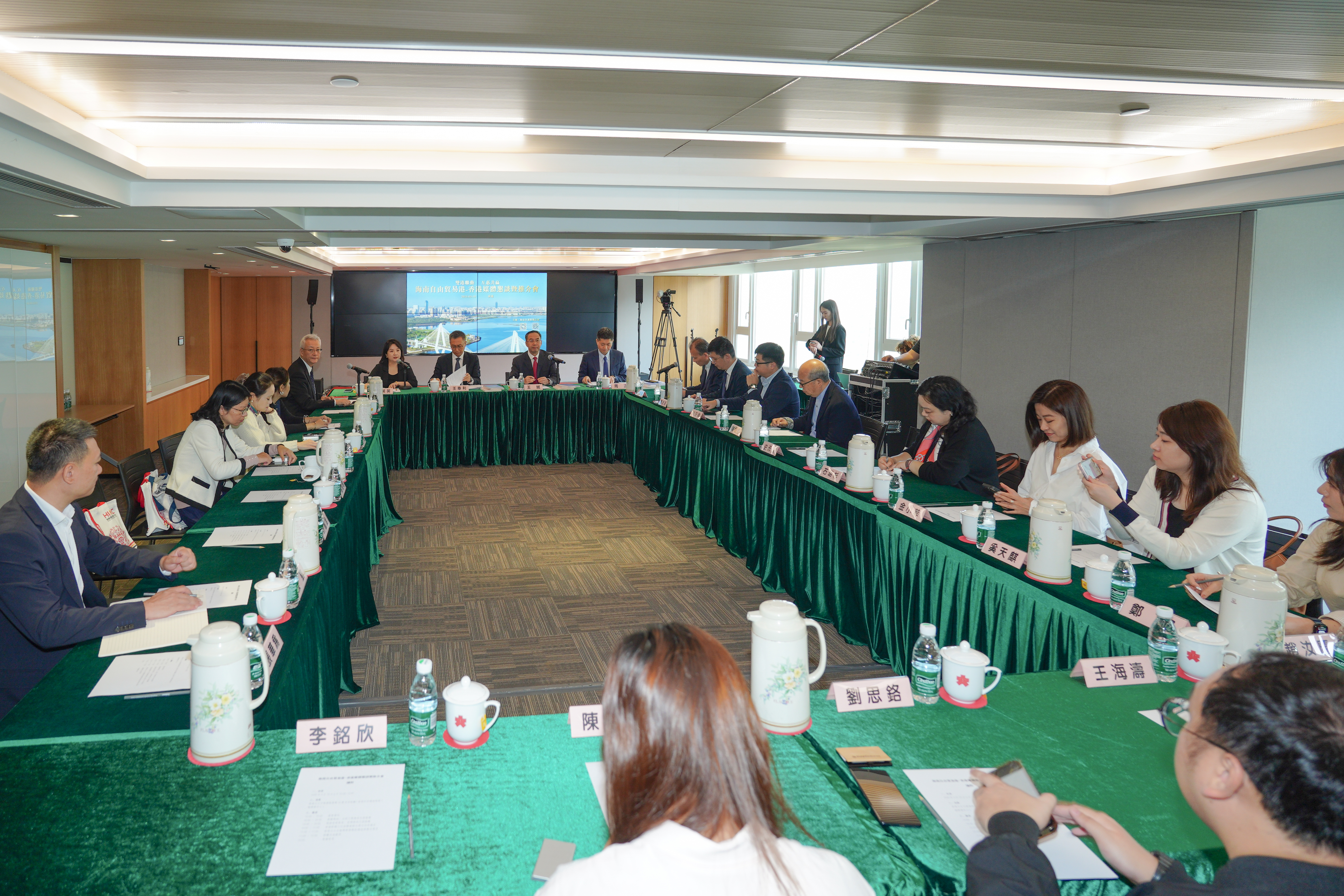 (大公文匯全媒體 記者 周禹含)由海南省新聞辦公室主辦的「雙港聯動 合作共贏」海南自由貿易港-香港媒體懇談暨推介會,今日(18日)上午假香港大公文匯傳媒集團舉行,展示海南自貿港建設最新進展情況,探討海南及香港合作新機遇。會議指出,瓊港兩地近年來合作成果豐碩,未來可在經貿、文旅、教育、安老等多個領域進一步加強合作、協同發展。