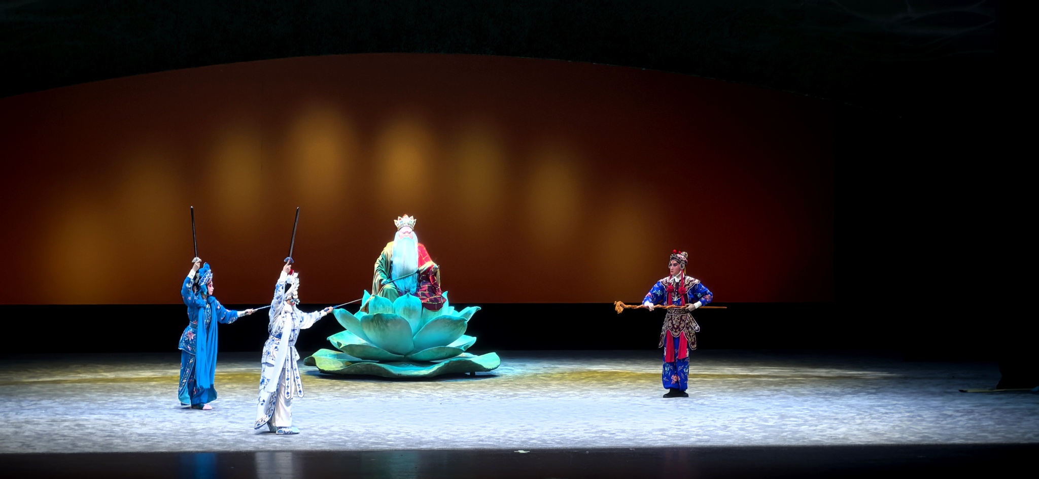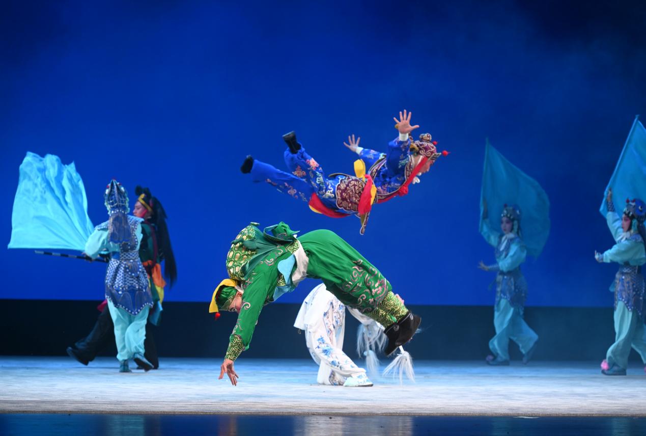 第四折《水鬥》是白素貞上崑崙鬥仙人取靈芝的戲碼,打戲最為密集,湘崑劇團的演員們在舞台上使出十八般武藝,拋、擲、踢、接武器等技巧輪番上演,連續的前空翻、側空翻、後空翻翩若遊龍,看得觀眾直呼過癮,「印象中在電視上看的白素貞更依賴法術,這台劇的白素貞可是硬橋硬馬的真功夫!」