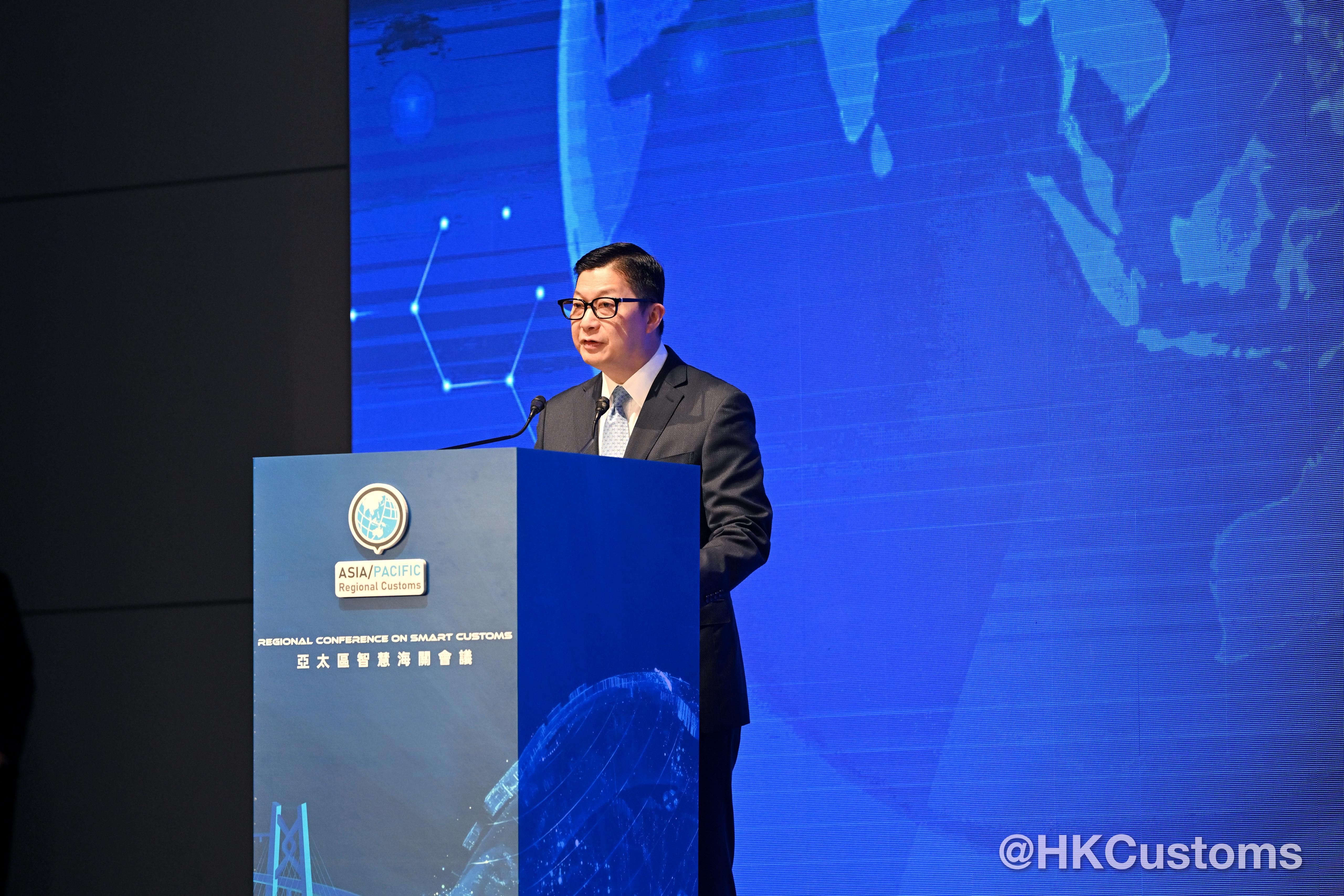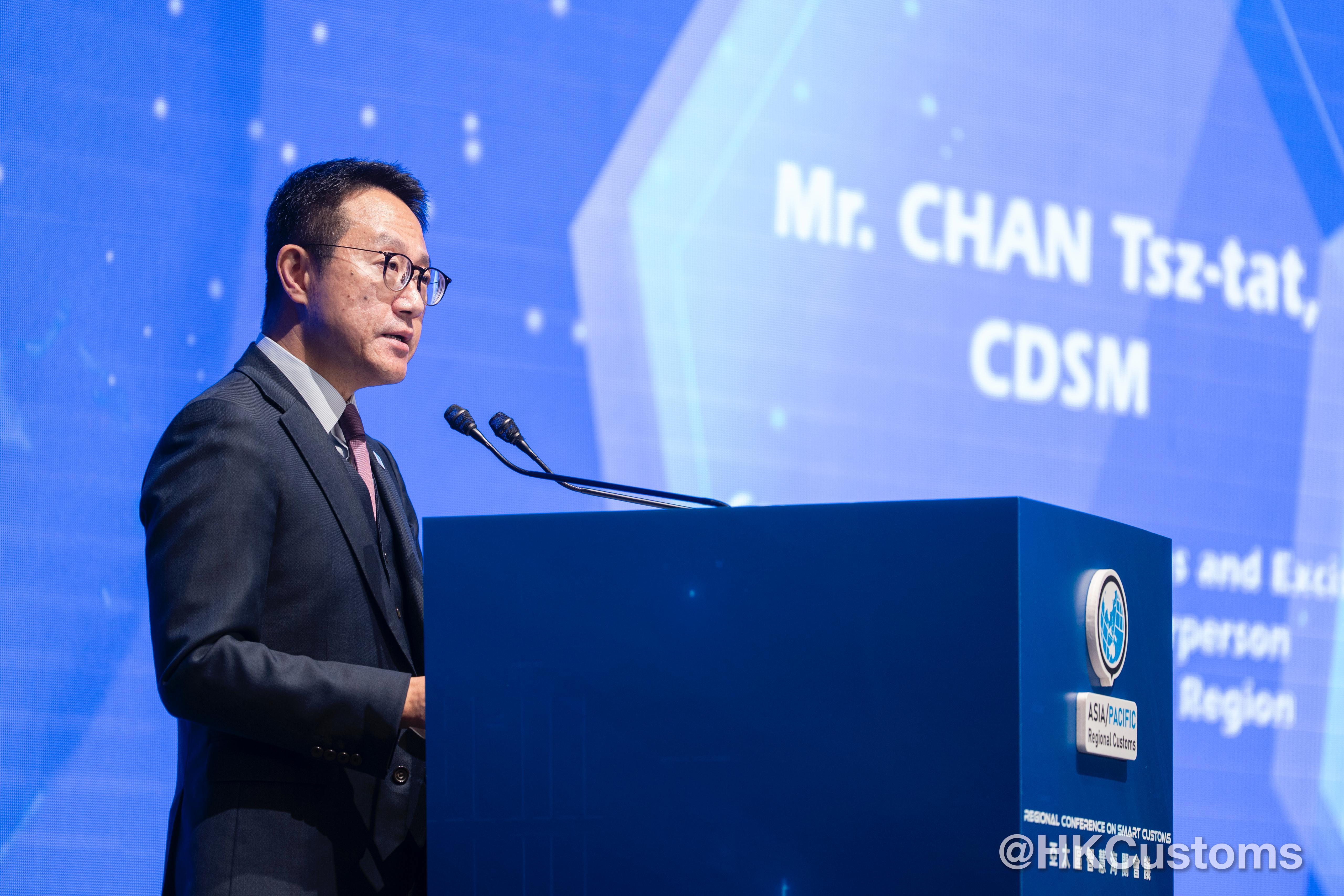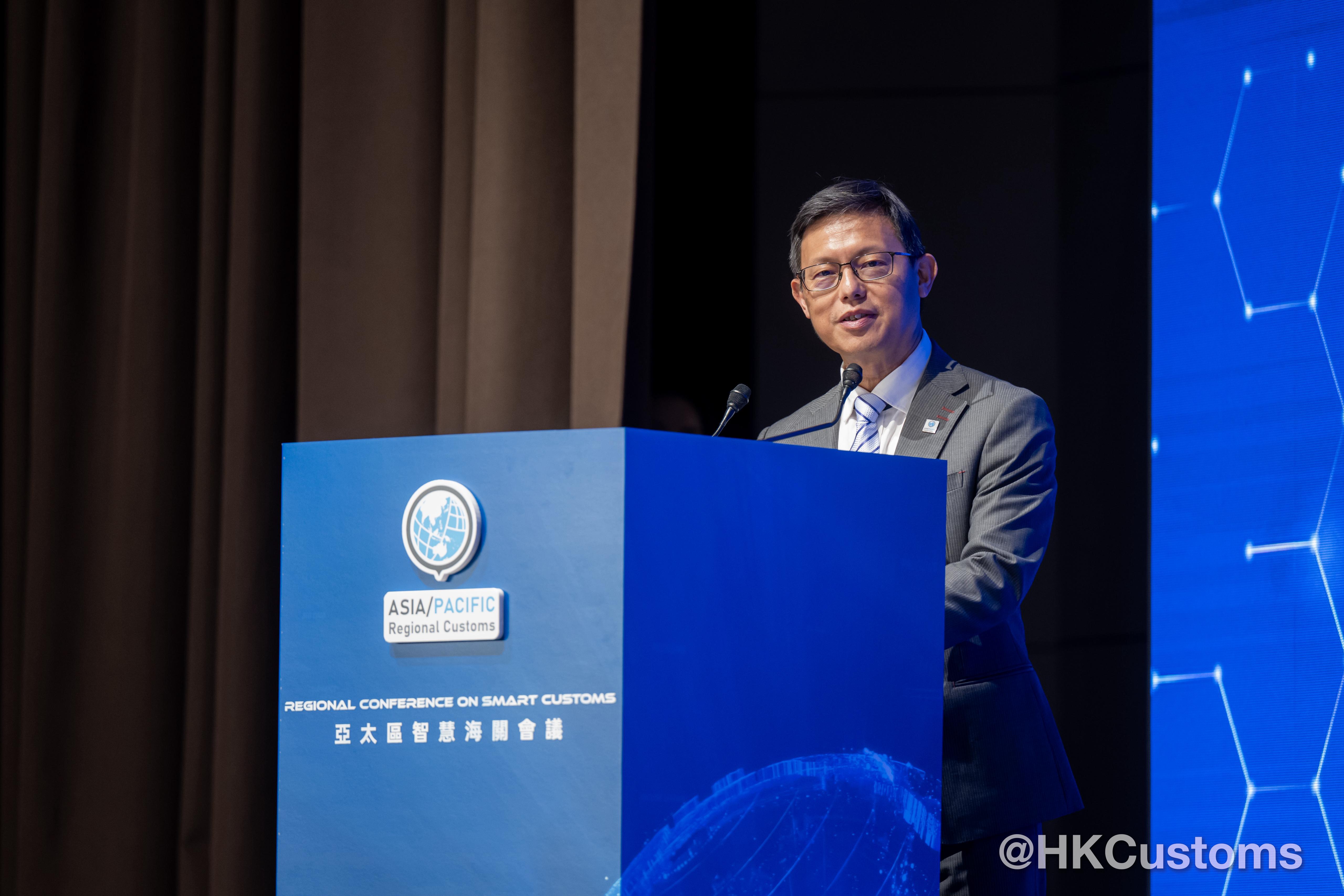 陳子達以世界海關組織亞太區副主席身分致歡迎辭時指,會議旨在加強夥伴關係與合作,共同推動亞太區智慧海關的發展。他介紹了香港海關在人工智能、區塊鏈及大數據方面的應用成果,並強調智慧海關的成功有賴於互信、夥伴關係與緊密協作。香港海關將繼續推動清關數碼化改革,強化全球貿易聯通,並建設更具韌性的供應鏈。
