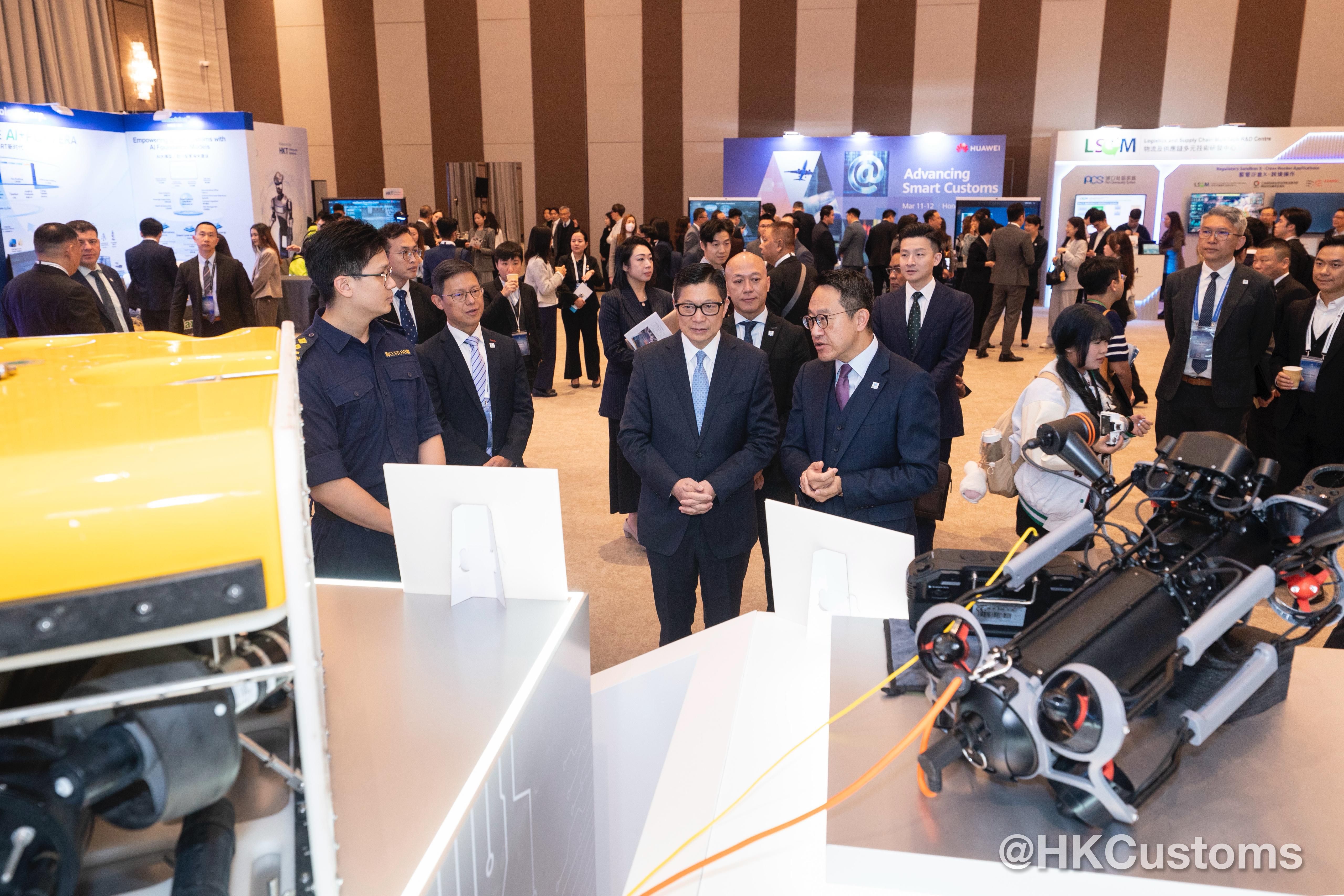 保安局局長鄧炳強、香港海關關長陳子達及香港海關助理關長(世界海關組織)李建基於三月十一日為會議主持開幕典禮。