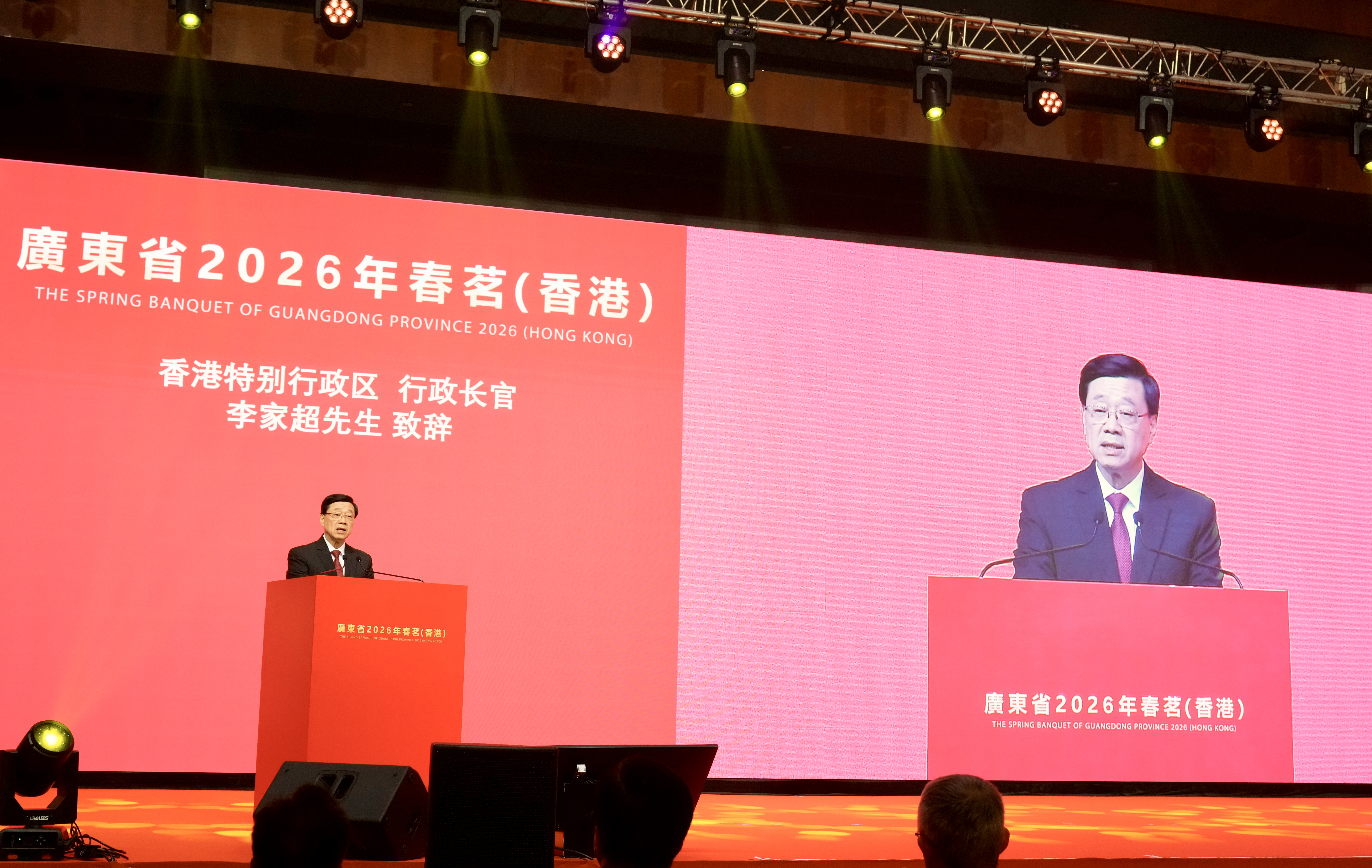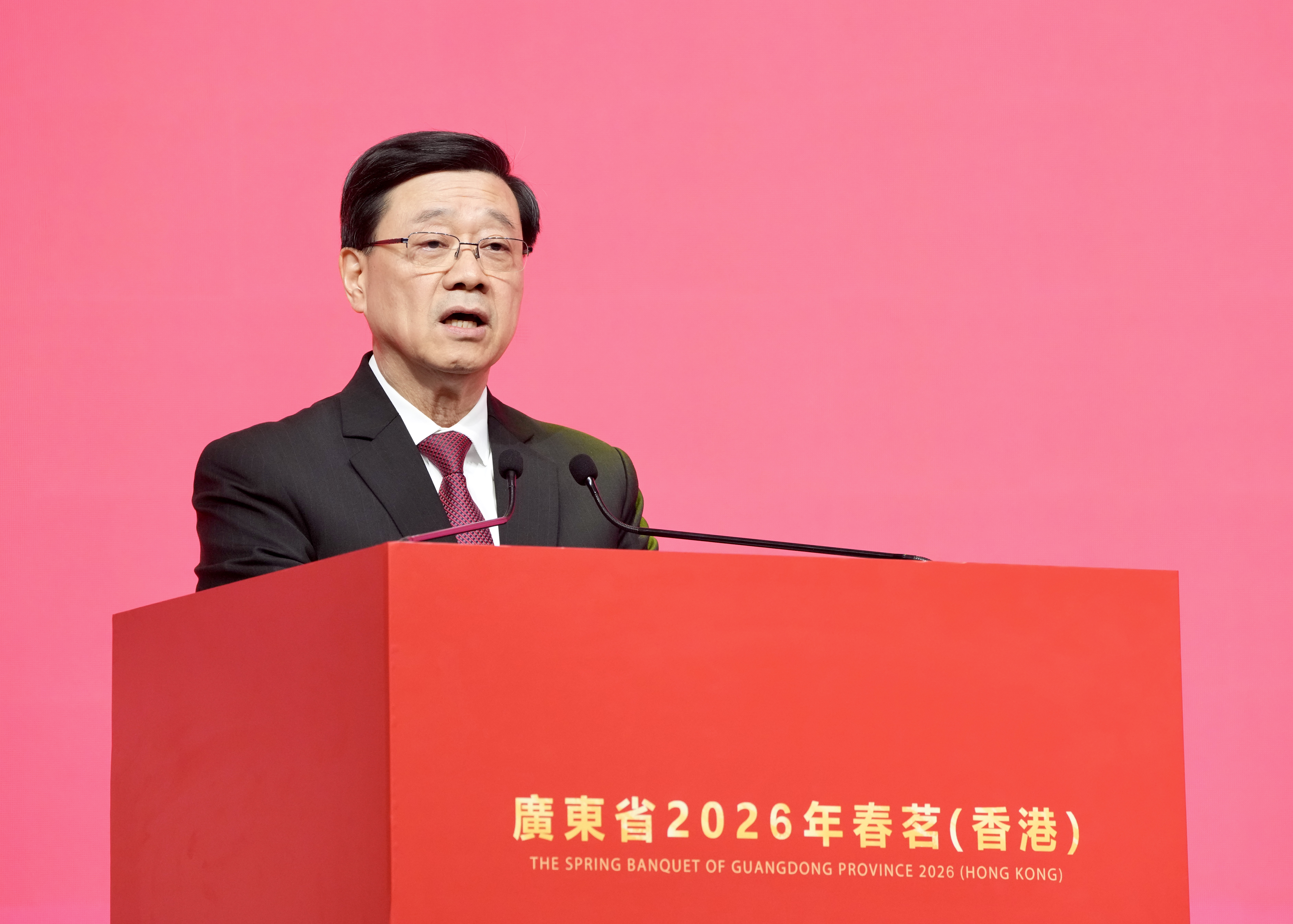 大公文匯全媒體報道,行政長官李家超今日(19日)出席廣東省2026年春茗(香港)並致辭。李家超表示,在丙午馬年,特區政府會馬不停蹄、策馬揚鞭,發揮好香港在「一國兩制」下背靠祖國、聯通世界的獨特優勢和重要作用。在新一年,他相信粵港之間的高水平合作將推上更高台階,為兩地人民的安居樂業共謀發展,為推進強國建設作出新的更大貢獻。
