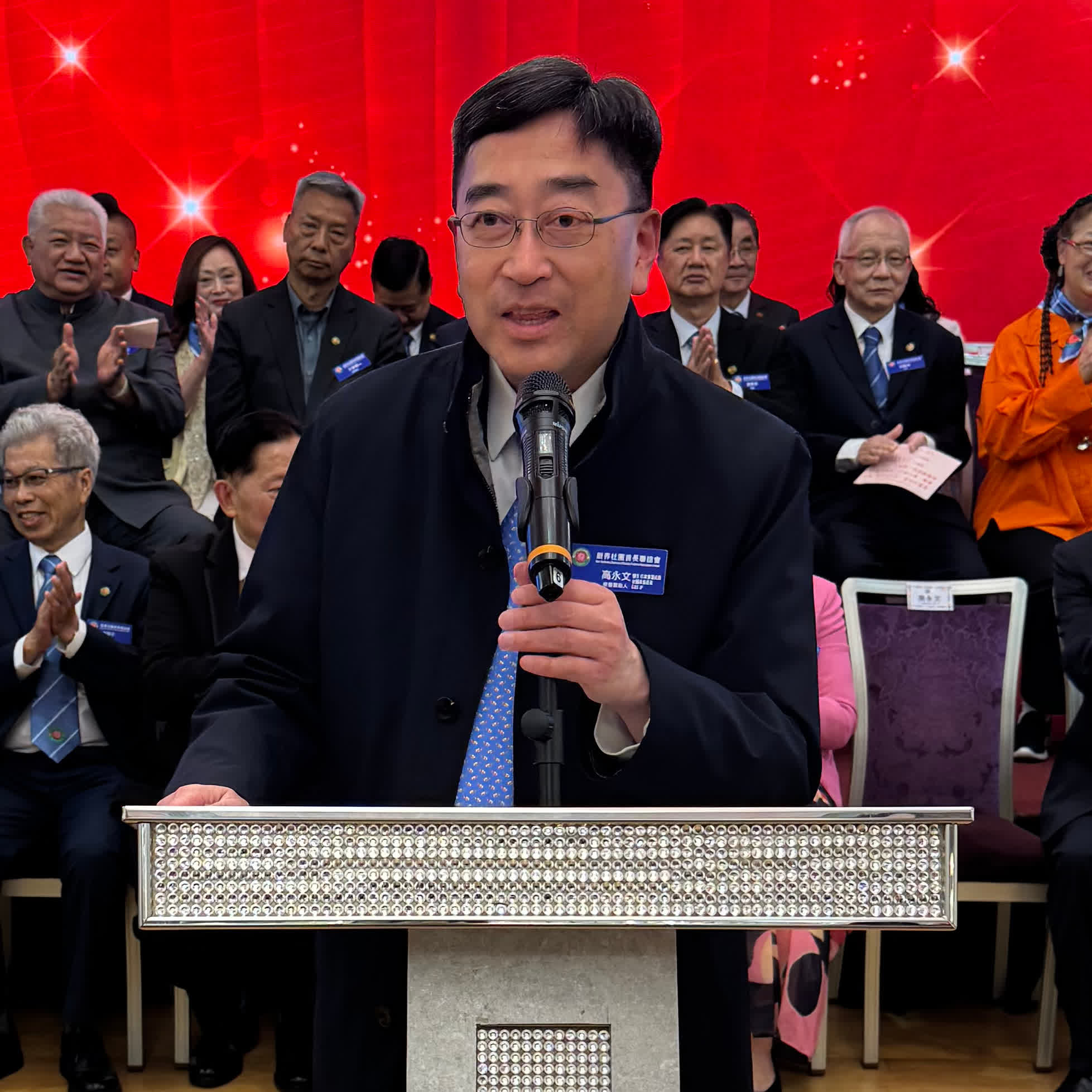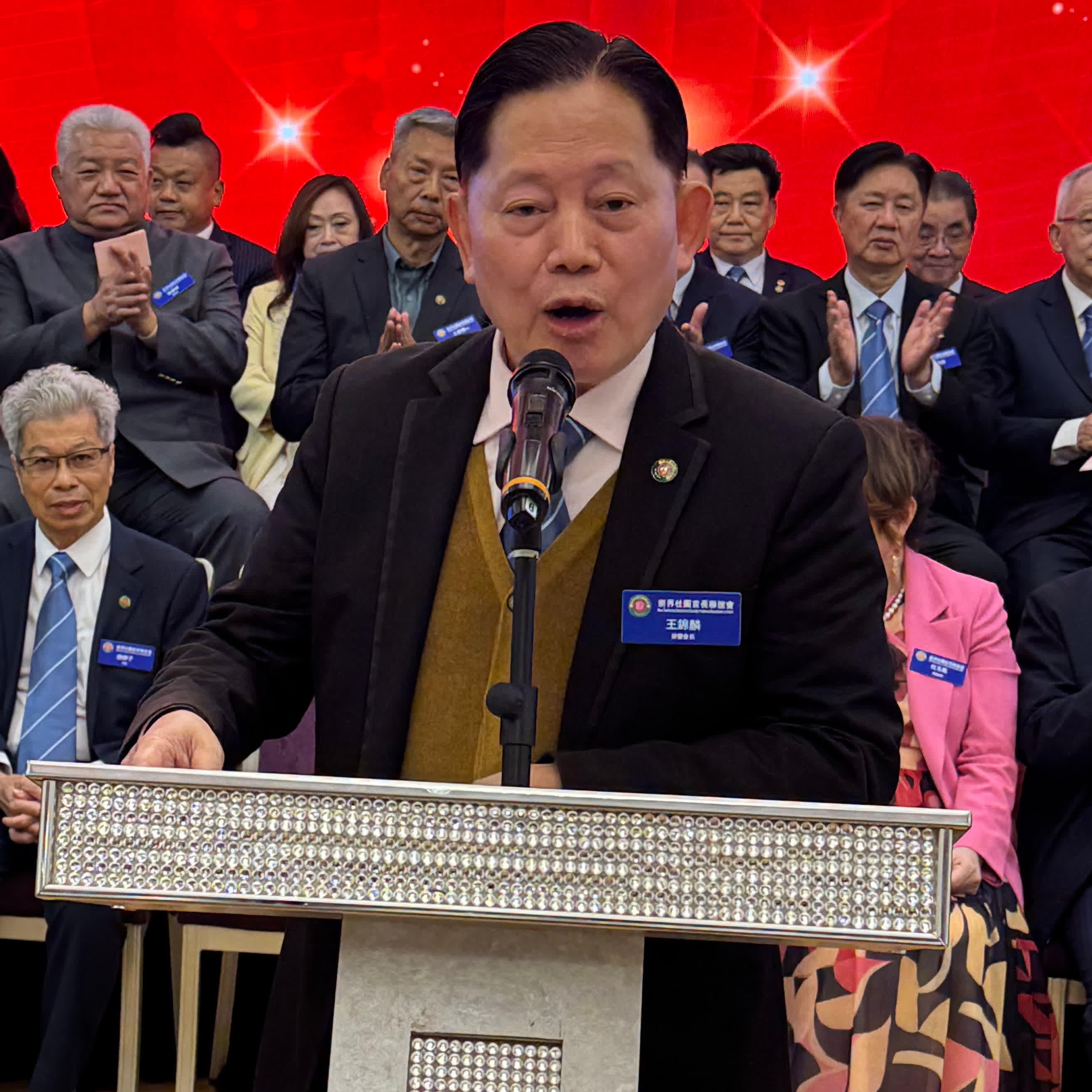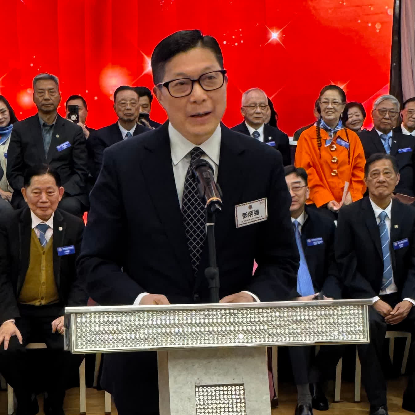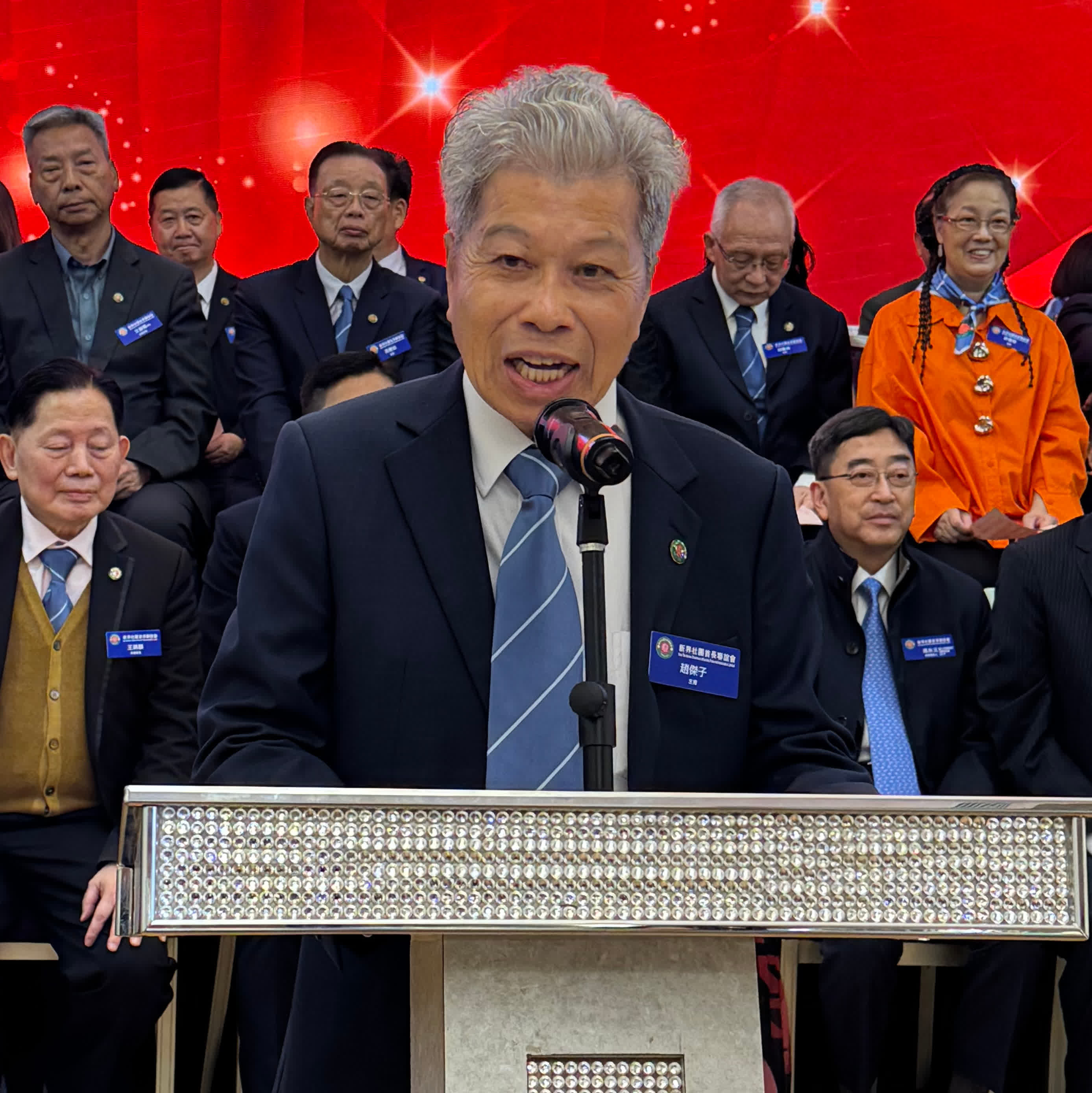 榮譽會長黃錦麟致辭感謝支持該會發展的同仁及各界友好。他表示,新界社團首長會是由一群對社會充滿熱誠的人組成的大家庭:有醫生、退休校長、區議員及來自不同專業界別的精英。雖然背景各異,但目標一致,希望用自已的專業、經驗和時間,為社區、為祖國出一分力。回顧過去數年,該會同仁攜手開展了多項富有意義的工作。每年舉辦的「韶關教育考察暨助學團」,大家慷慨解囊、親身力行,深入內地山區支持莘莘學子,並舉行獎教獎學頒獎典禮。這份源於付出與收穫的感動與溫暖,至今仍深植人心。這些活動已成為該會與國家、與社區之間最真摯的情感連結。他深信,新一屆委員會定能承先啟後,帶領首長會邁向更美好的未來,繼續為社區、為國家貢獻力量。