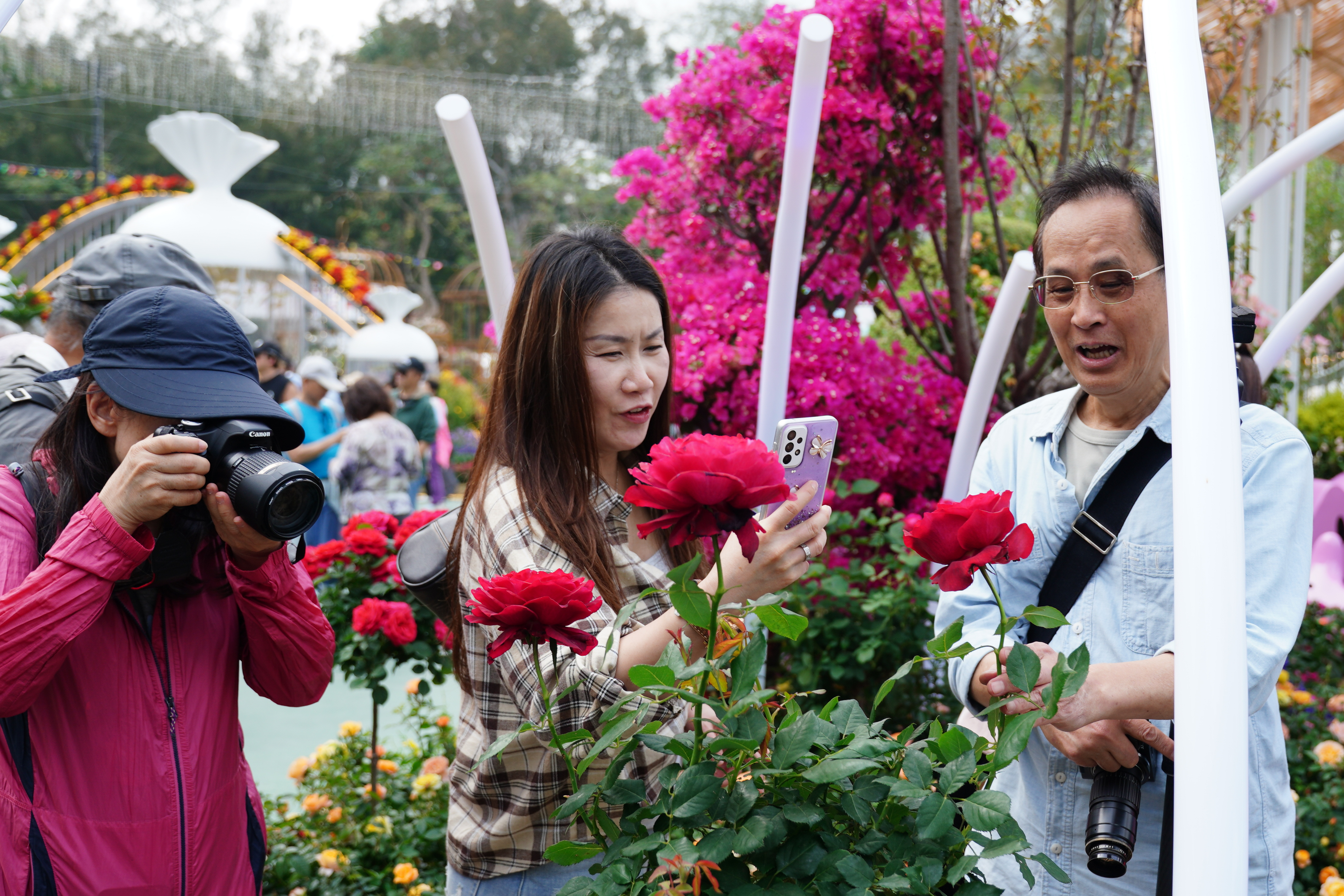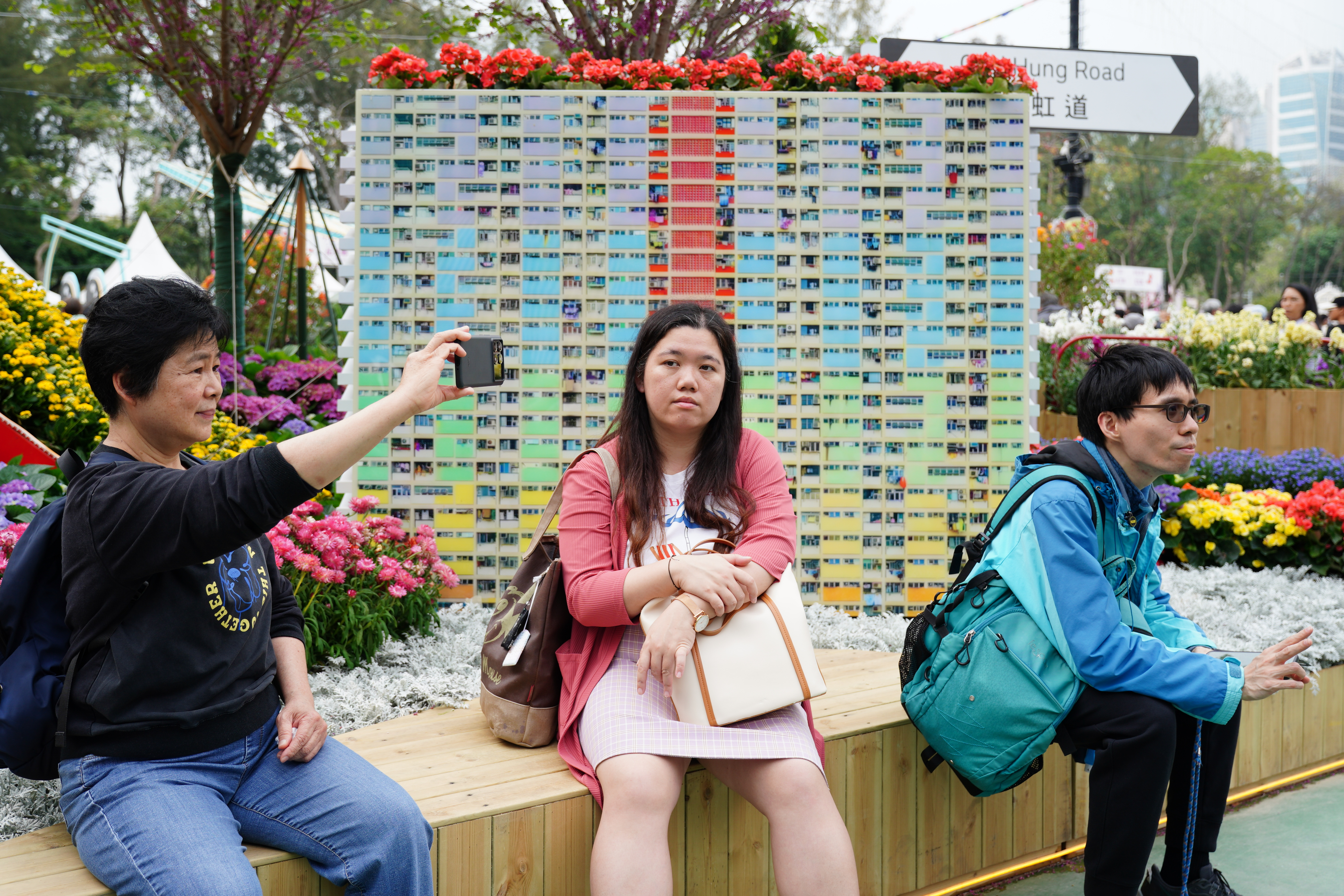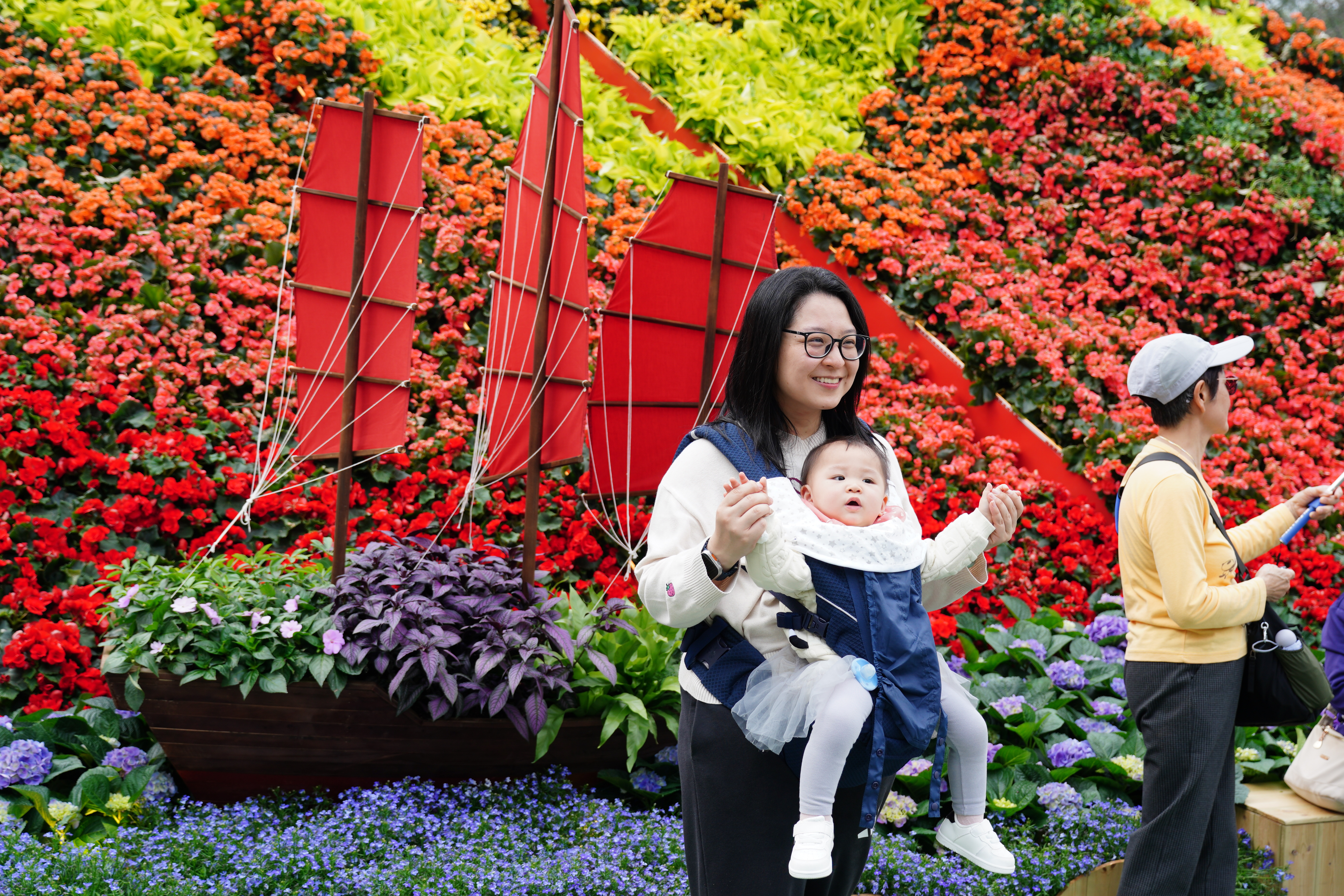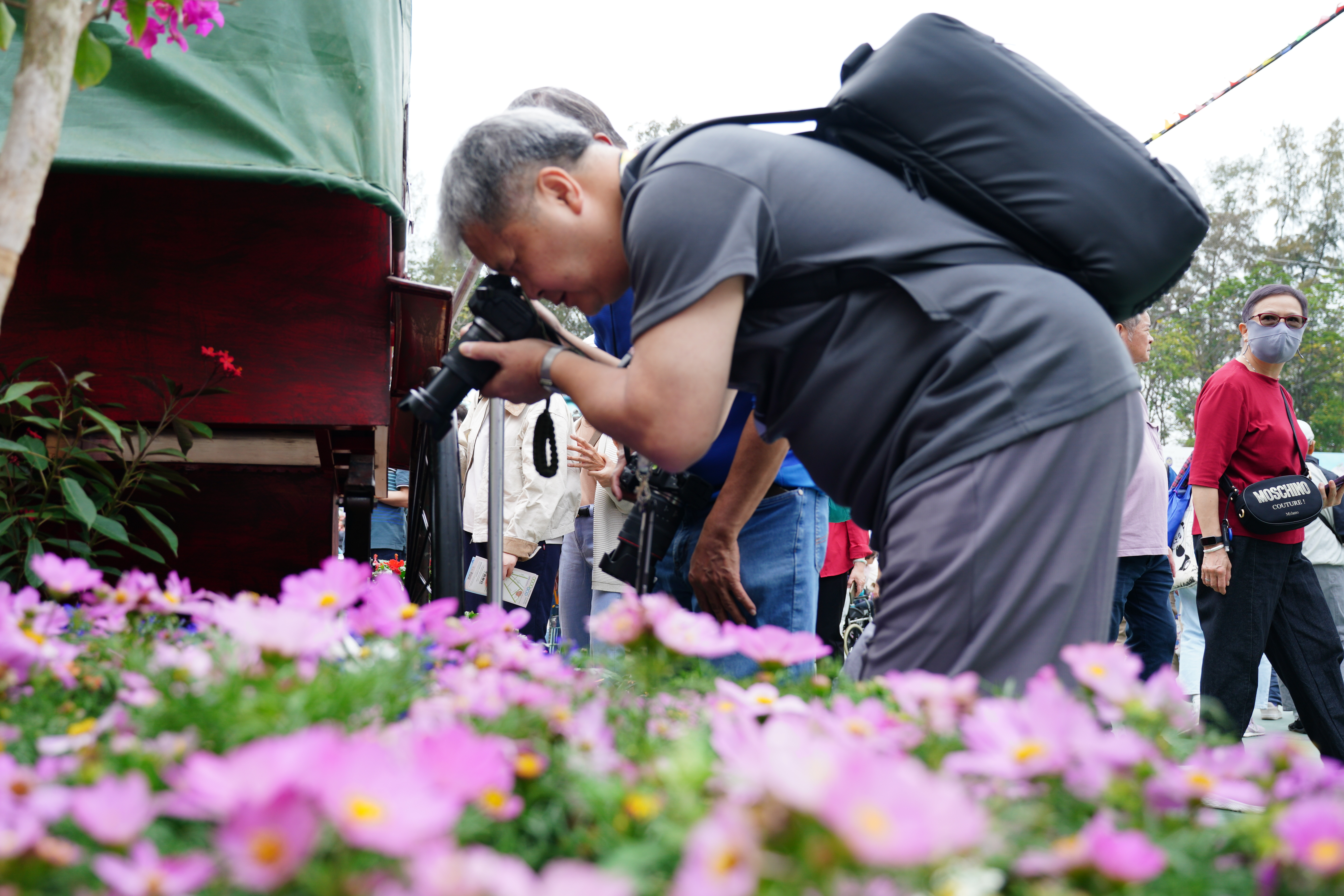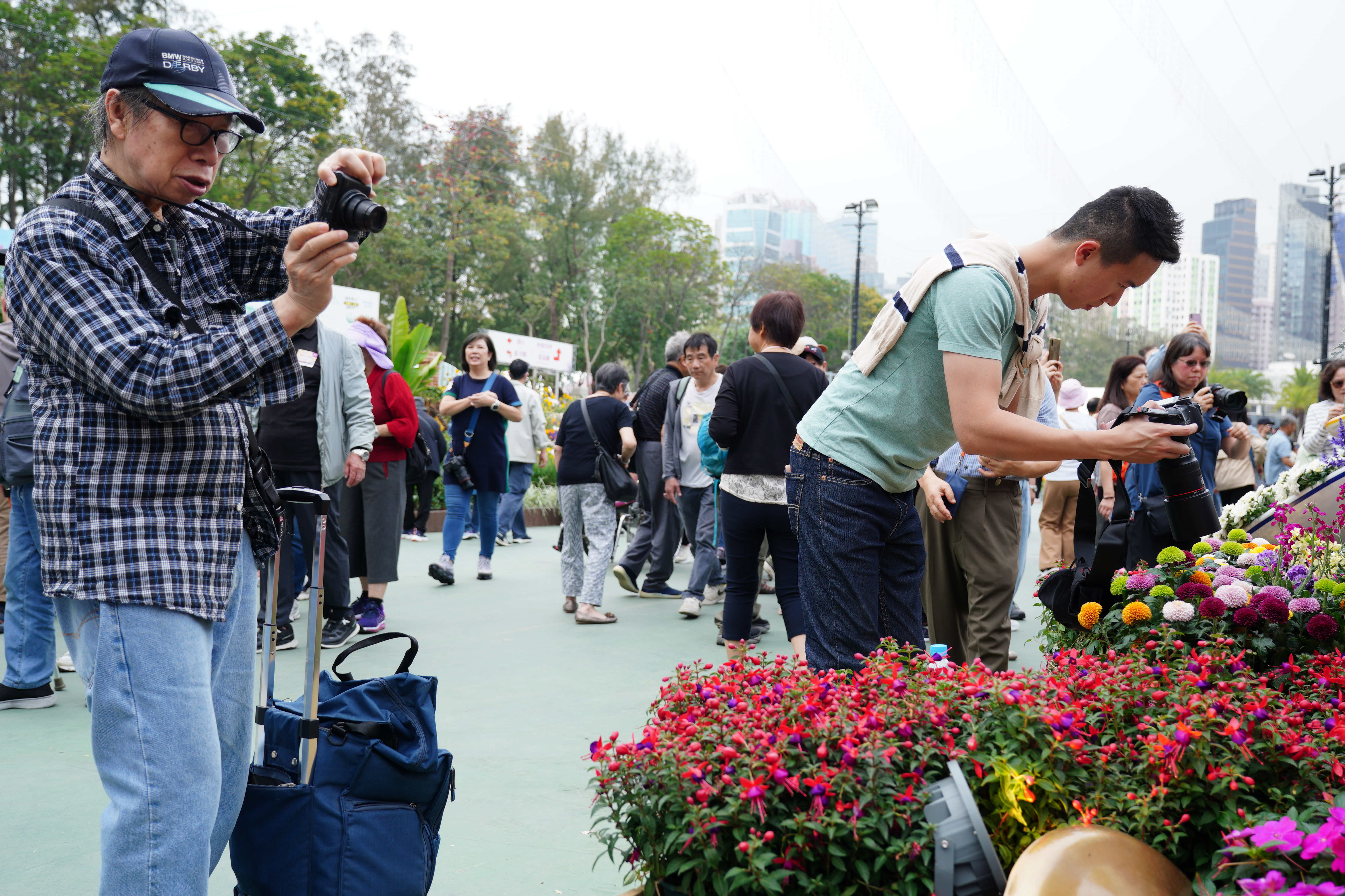 花展開幕首日,維園現場人頭攢動,大批市民專程前來賞花。點新聞記者所見,不少家庭攜同子女在花海前留影,亦有攝影愛好者帶備專業器材,捕捉花間美景。有小朋友更精心打扮,身穿黃色連衣裙,成為鏡頭下的亮麗風景。場內設有多個具本地特色的微縮景觀,包括鴨靈號、彩虹邨、前九廣鐵路鐘樓(尖沙咀鐘樓)及澳門特色路牌等,吸引市民及遊客駐足拍照。