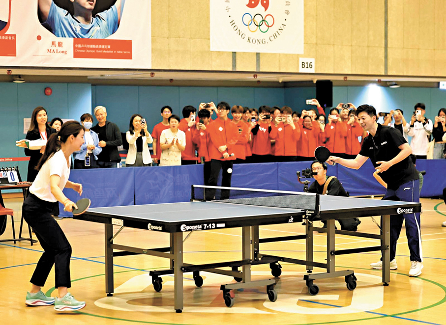 分享會結束後,馬龍與霍啟剛,以及理工大學乒乓球校隊在體育館進行對打交流,郭晶晶亦難得落場參與。近百名學生在場館觀戰,一睹奧運金牌英姿,氣氛熾熱。