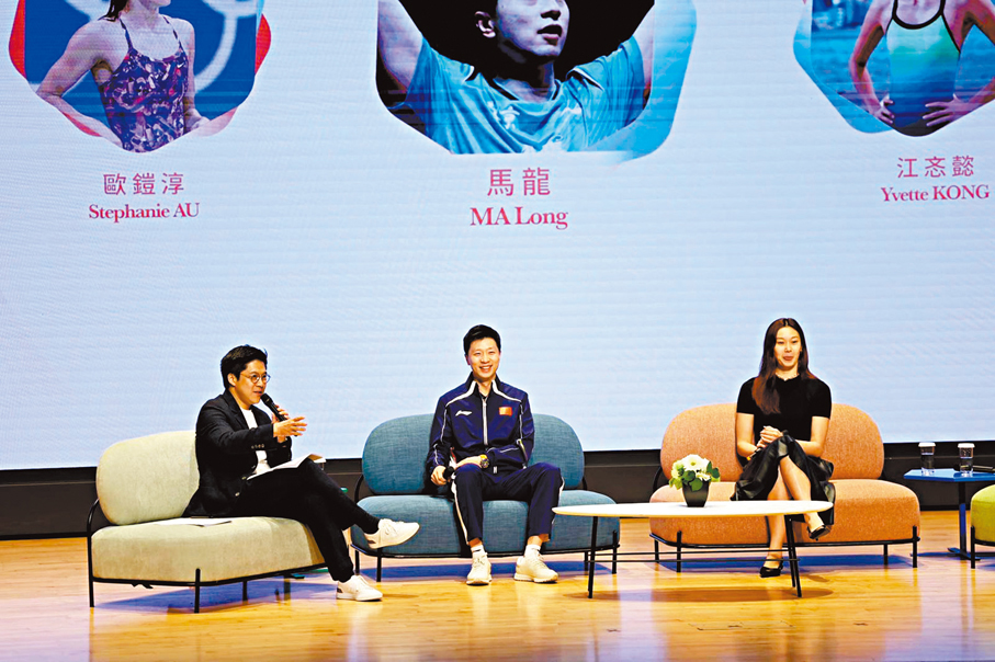 在問答環節中,他被大學生問到年輕運動員需要什麼特質才能走得更遠,馬龍回應:「當中必定經歷無數失敗和嘗試,韌性非常重要,心理抗壓才能走得遠,這要從訓練和比賽中慢慢鍛煉。」有同學問他以一句話概括六金奧運生涯,這名球星風趣笑道:「難、真難、更難。」引起哄堂大笑。