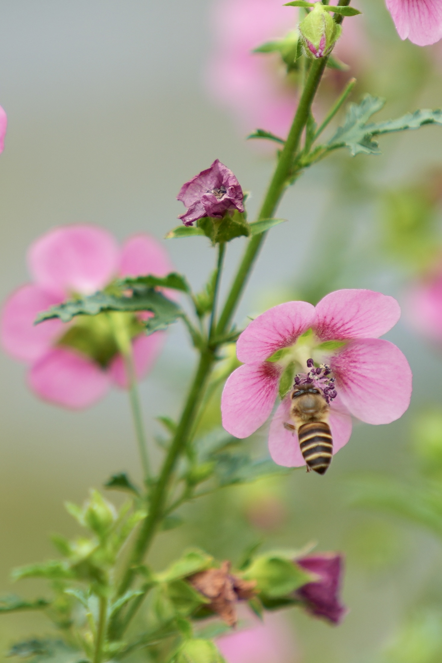 花展開幕第二天,記者在現場所見,各色花朵爭奇鬥艷,開得正好,包括紫羅蘭、向日葵、碧桃、小木槿、三角梅等。現場人頭湧湧,市民及遊客紛紛前來觀賞,大家拿出手機拍攝花朵,並與家人親友在花前合影留念。