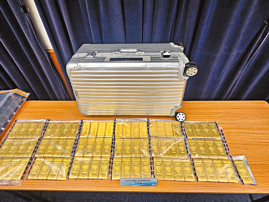 (香港文匯報 記者 蕭景源)紅磡崇安街一間黃金交易公司,前日發生黃金盜竊案。一名男子相約職員交收黃金時,數人突闖入,聲稱黃金公司東主欠債,遂與買家將73條共重約73公斤、總值約9,300萬港元的金條,全數放入行李箱內離開現場,分乘兩部私家車逃去。鑑於案情嚴重,西九龍總區重案組總部接手調查,經情報分析及翻查大量閉路電視片段,迅速鎖定5名疑犯身份,當晚分別在中環及大埔,以涉嫌盜竊拘捕5人,並悉數起回金條。