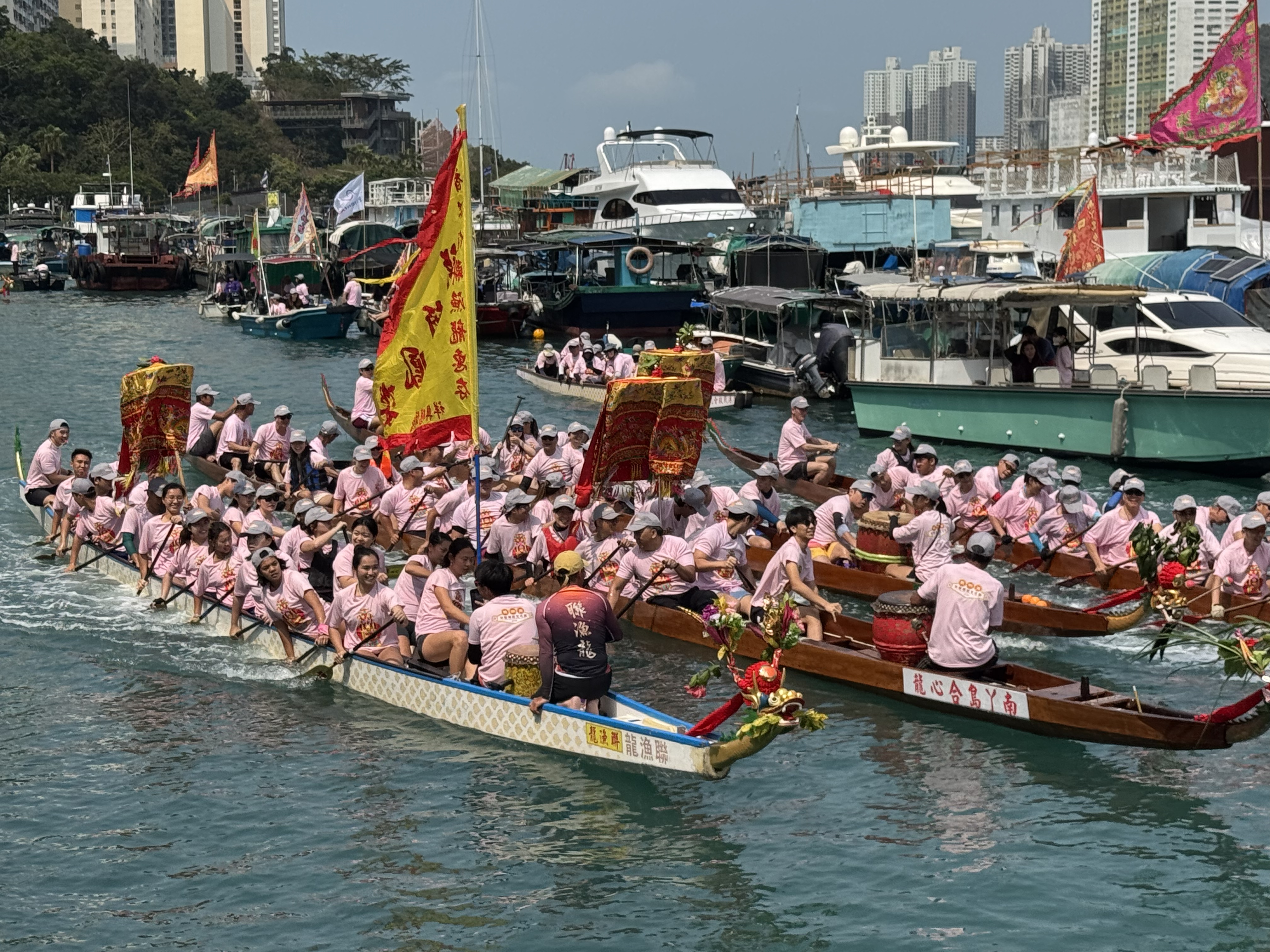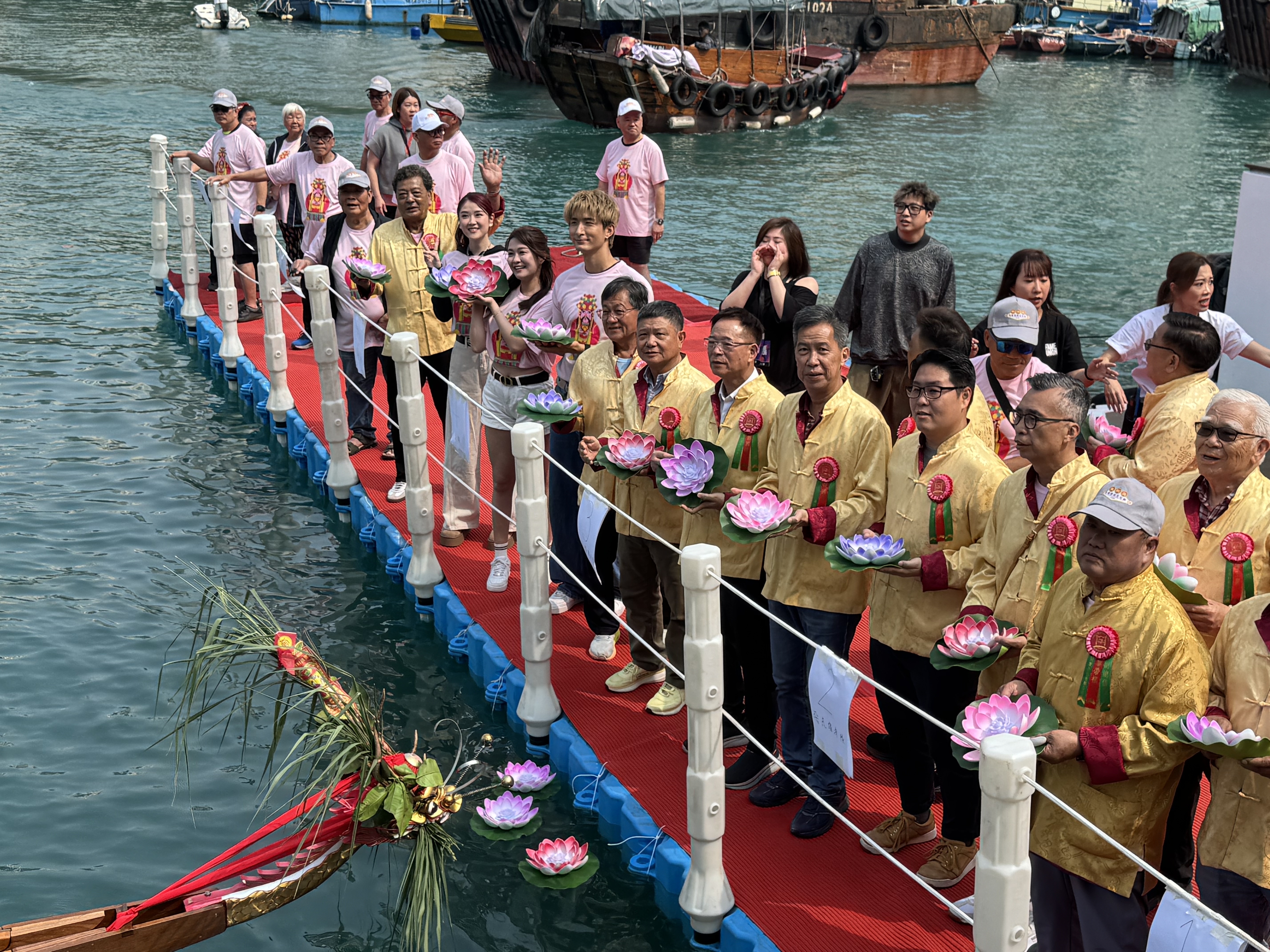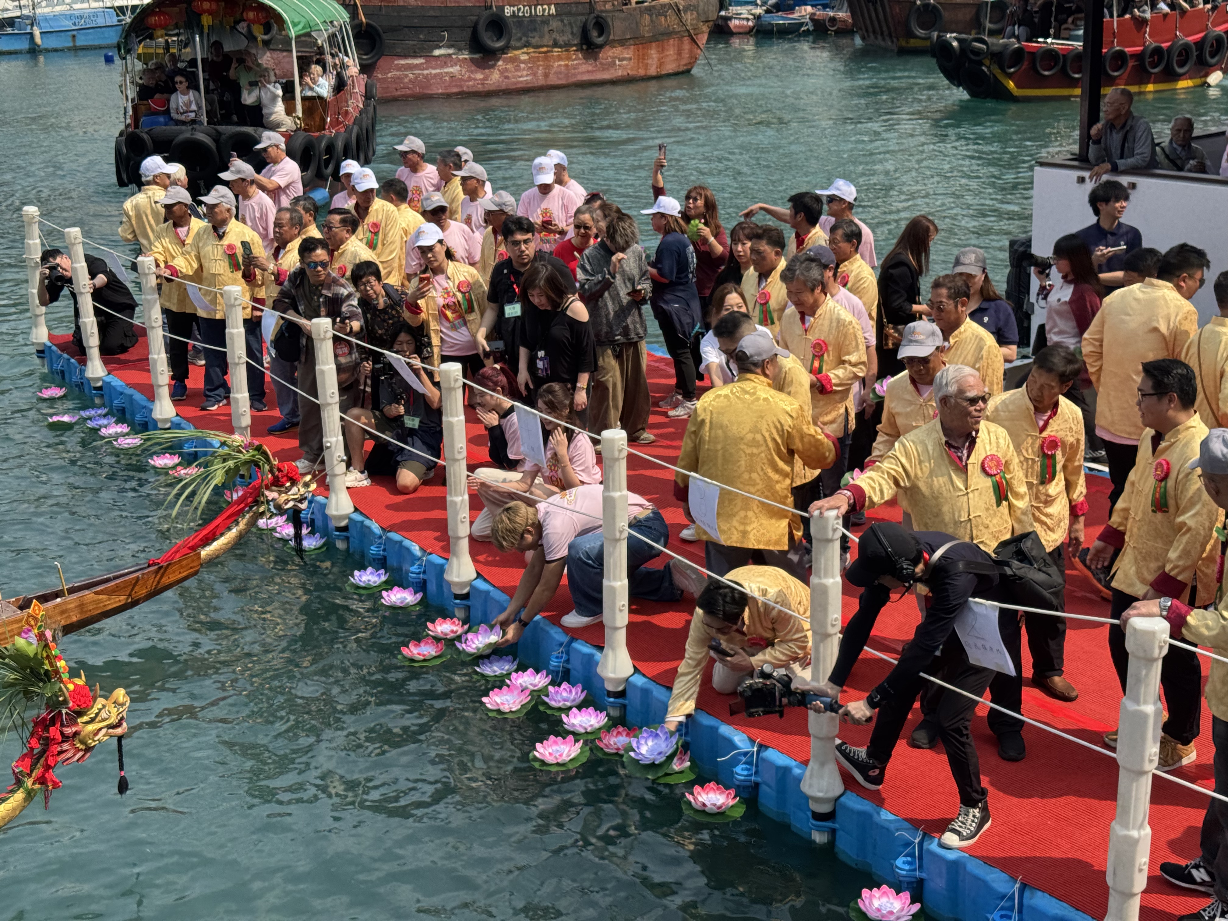 (大公文匯全媒體記者 陳子萌)2026鴨脷洲洪聖傳統文化節是南區年度最重要傳統節慶之一,今日(22日)舉行祈福放水燈、龍舟拜廟,及作為重點壓軸項目的賀誕巡遊表演,由上午10點開始直到下午5點接連不斷。今年亦首度向公眾開放海上放水燈,現場熱火朝天、人聲鼎沸。