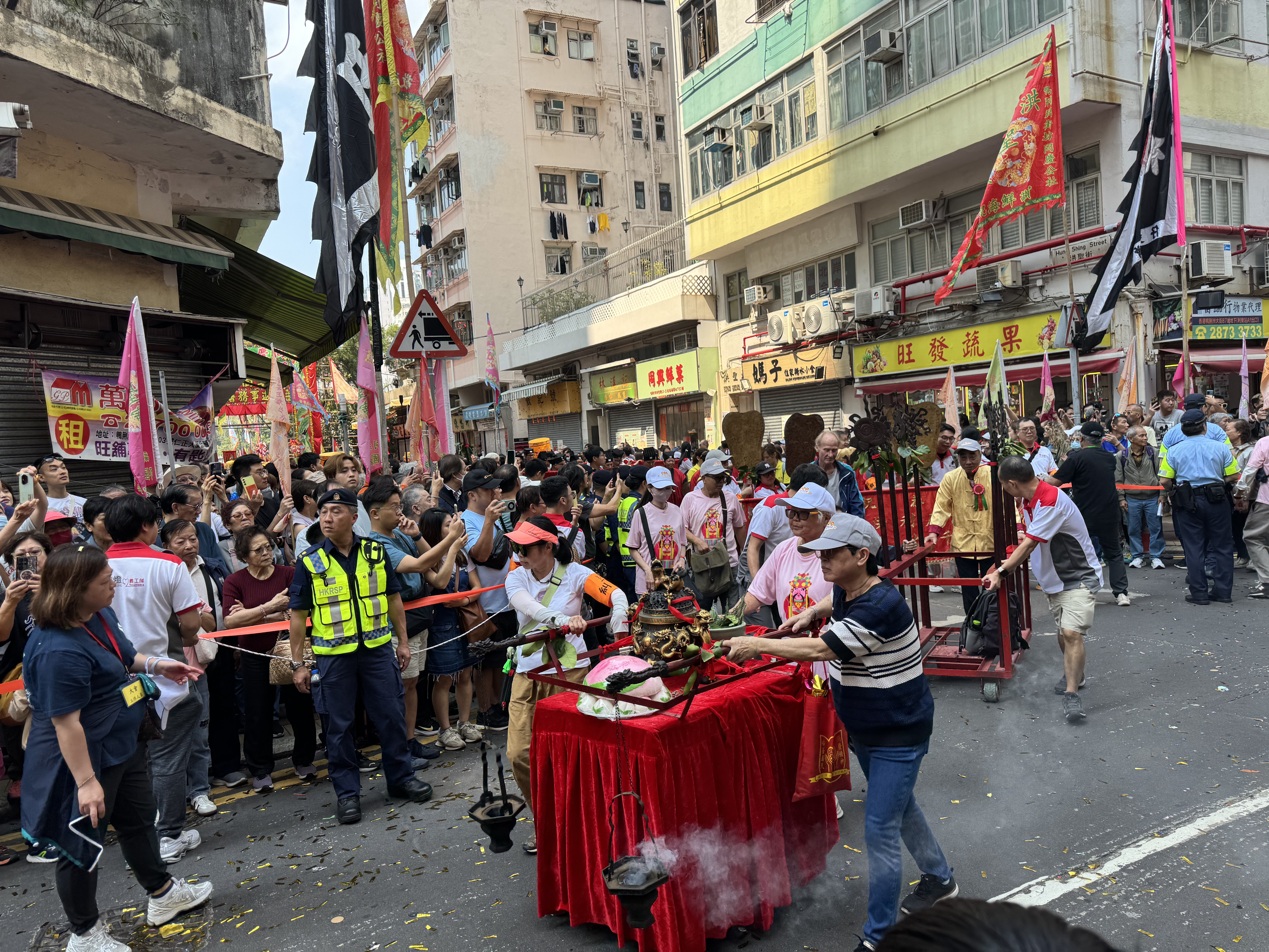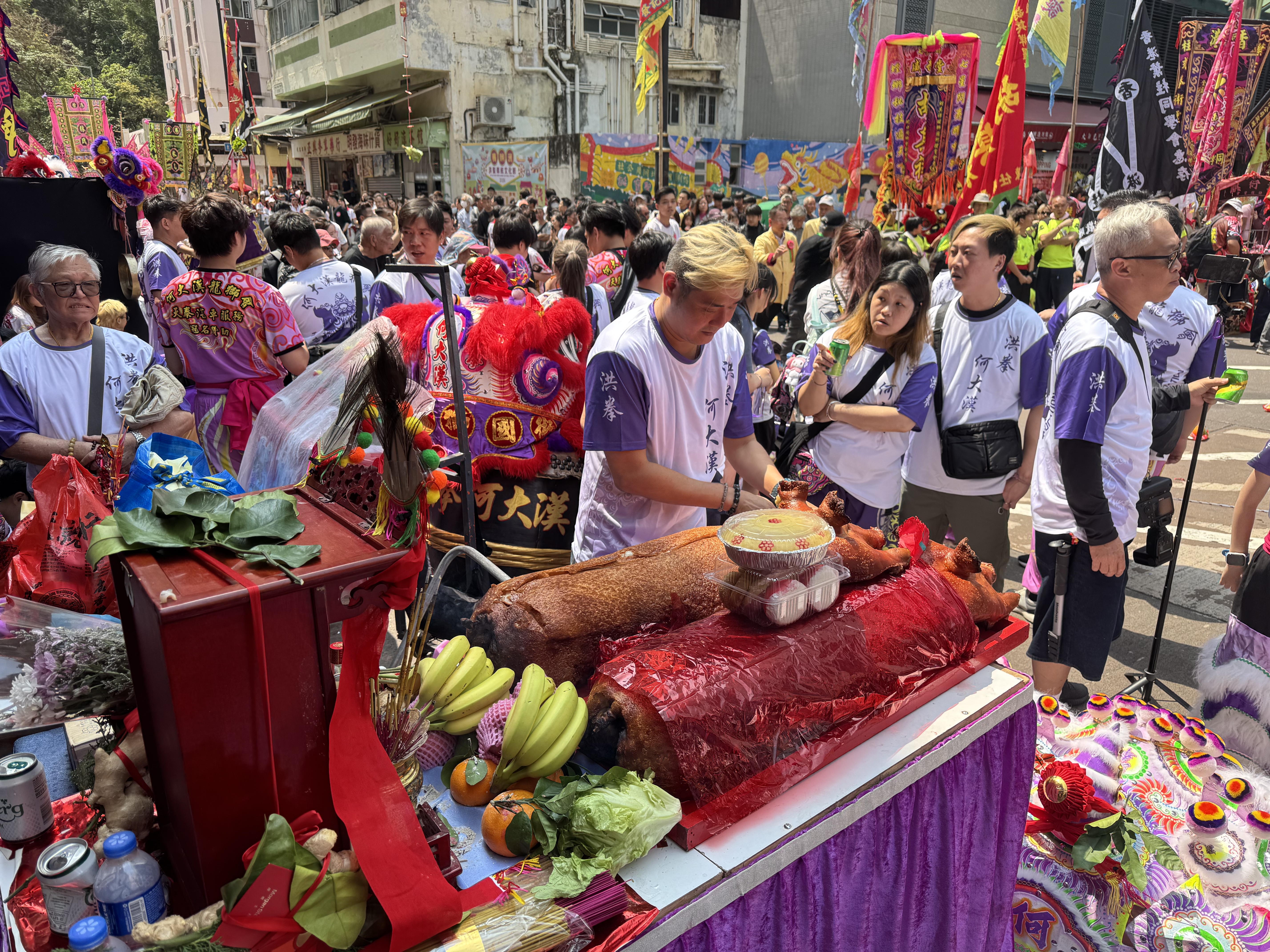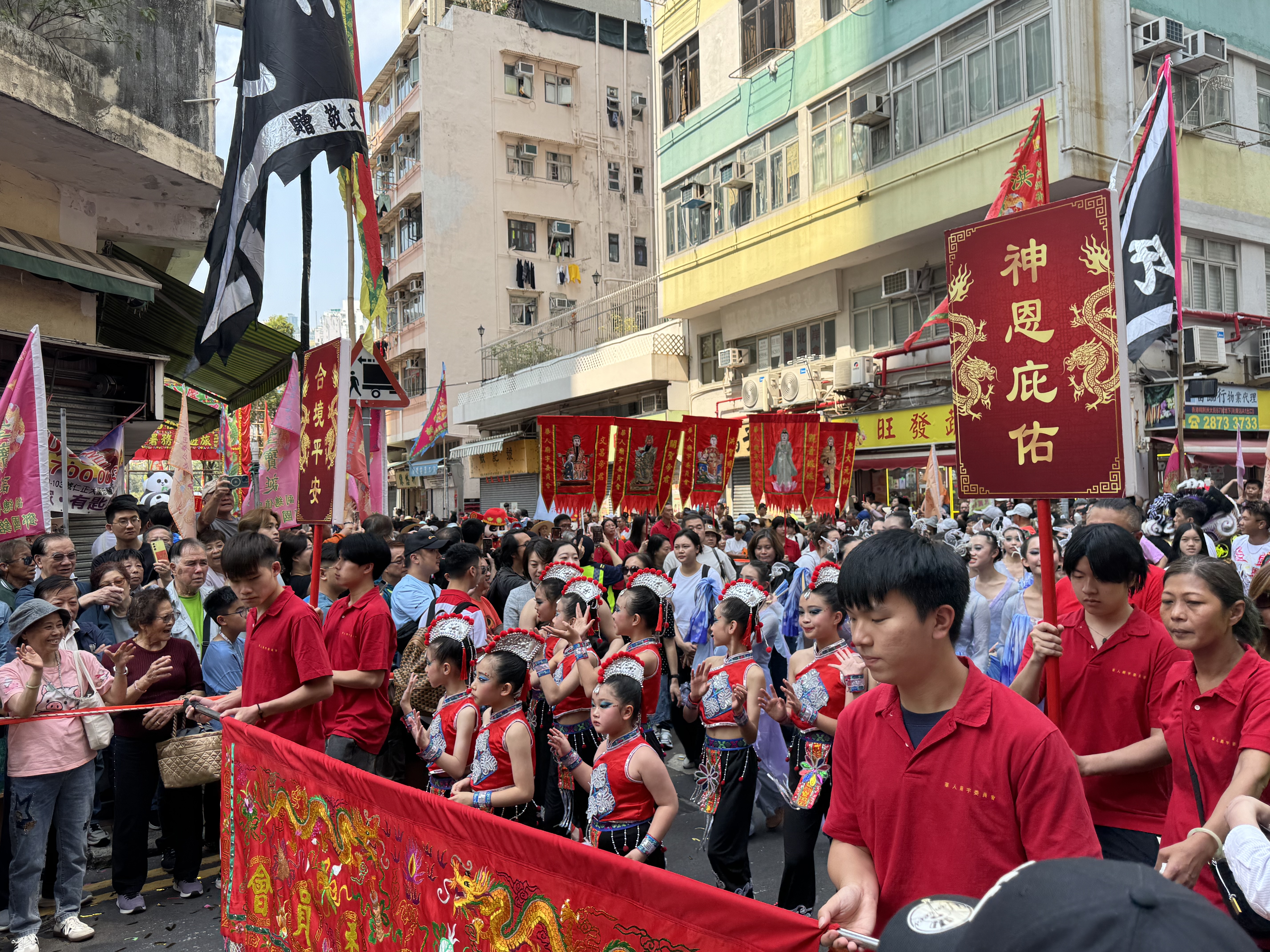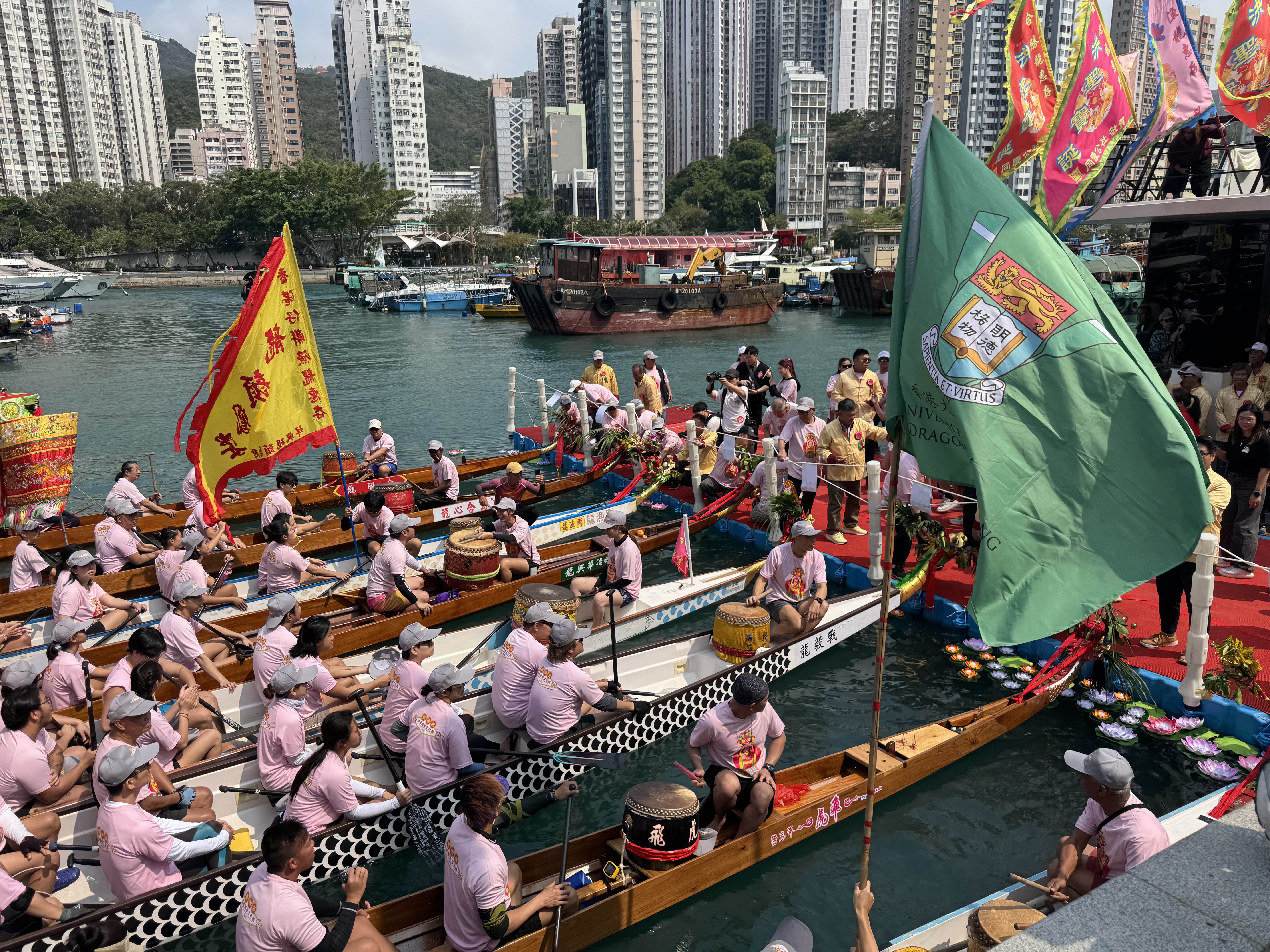 (大公文匯全媒體記者 陳子萌)2026鴨脷洲洪聖傳統文化節是南區年度最重要傳統節慶之一,今日(22日)舉行祈福放水燈、龍舟拜廟,及作為重點壓軸項目的賀誕巡遊表演,由上午10點開始直到下午5點接連不斷。今年亦首度向公眾開放海上放水燈,現場熱火朝天、人聲鼎沸。