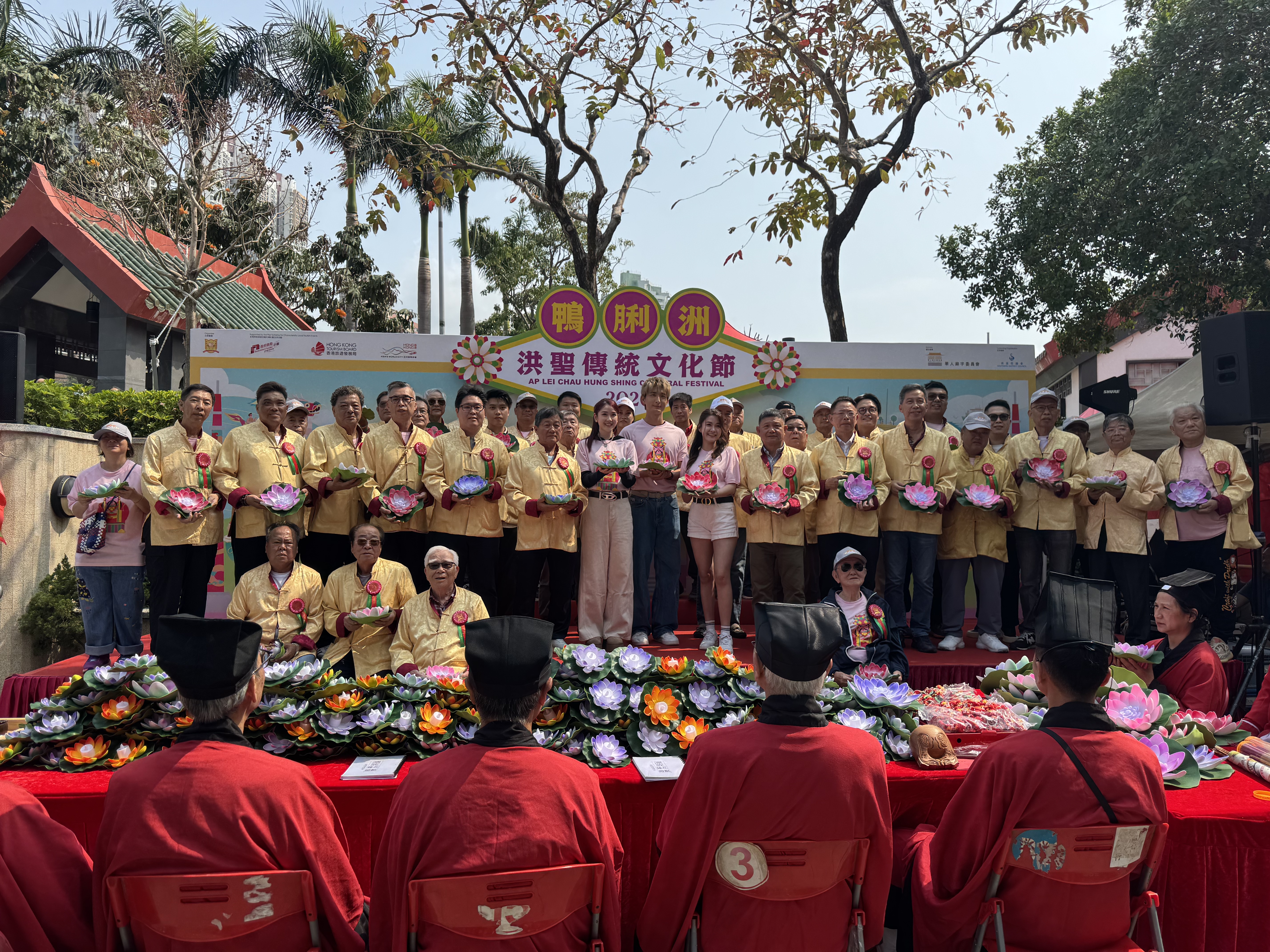 洪聖誕慶典已列入香港非物質文化遺產代表作名錄,各項活動都承載了居民的心靈寄託,祈求風調雨順、境內安寧。上午10時半,祈福放水燈儀式開始,三位同樣成長或現居於南區的歌手藝人張馳豪、潘靜文、江嘉敏是首次參與鴨脷洲洪聖傳統文化節,同眾多嘉賓一起放水燈,祈求工作順風順水。