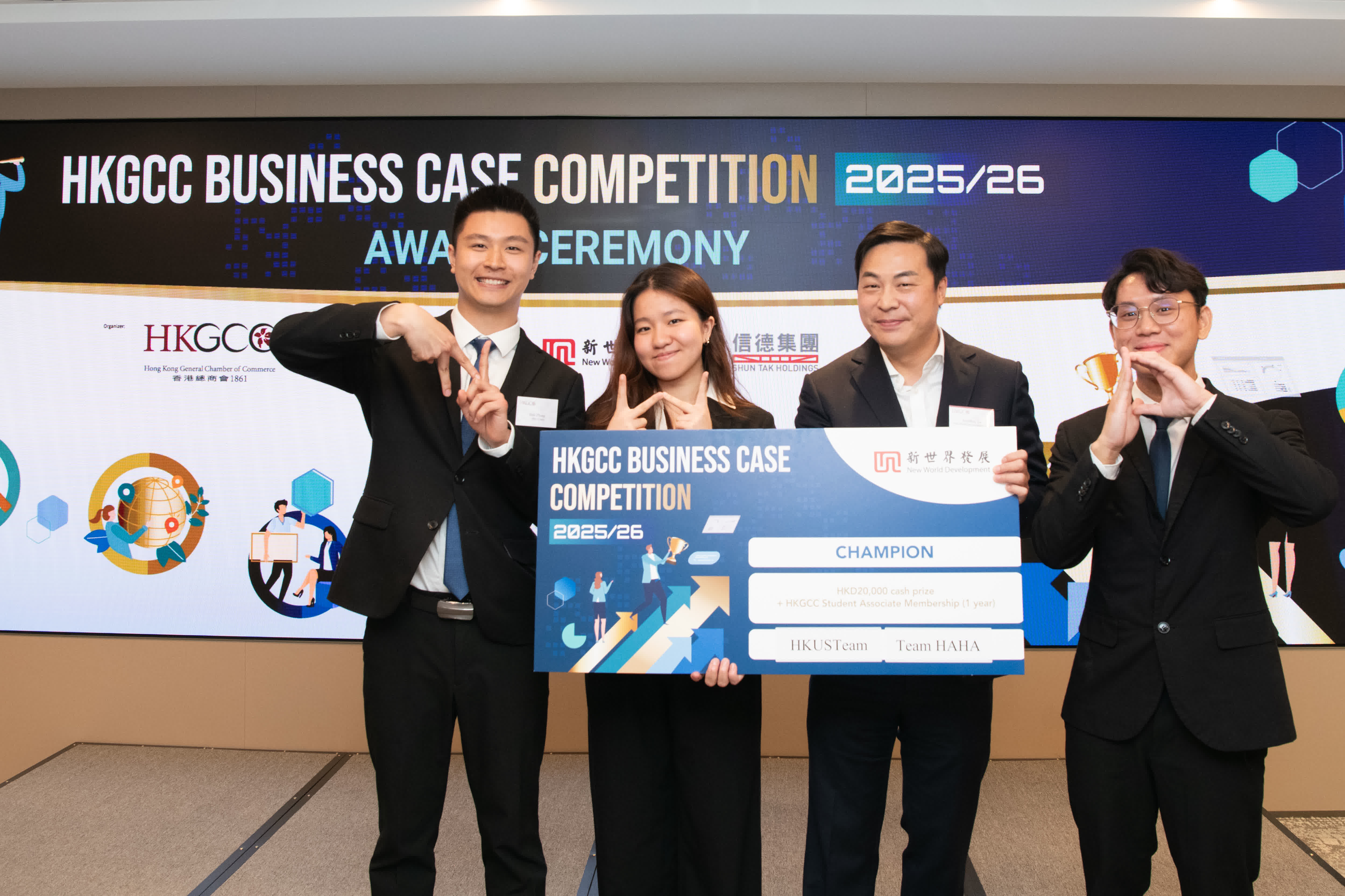 總商會2025 /26年度「商業案例競賽」決賽於3月20日舉行,共有12隊大專生競逐獎項,其中五隊優秀隊伍脫穎而出,獲得總商會學生會籍一年及獎金。