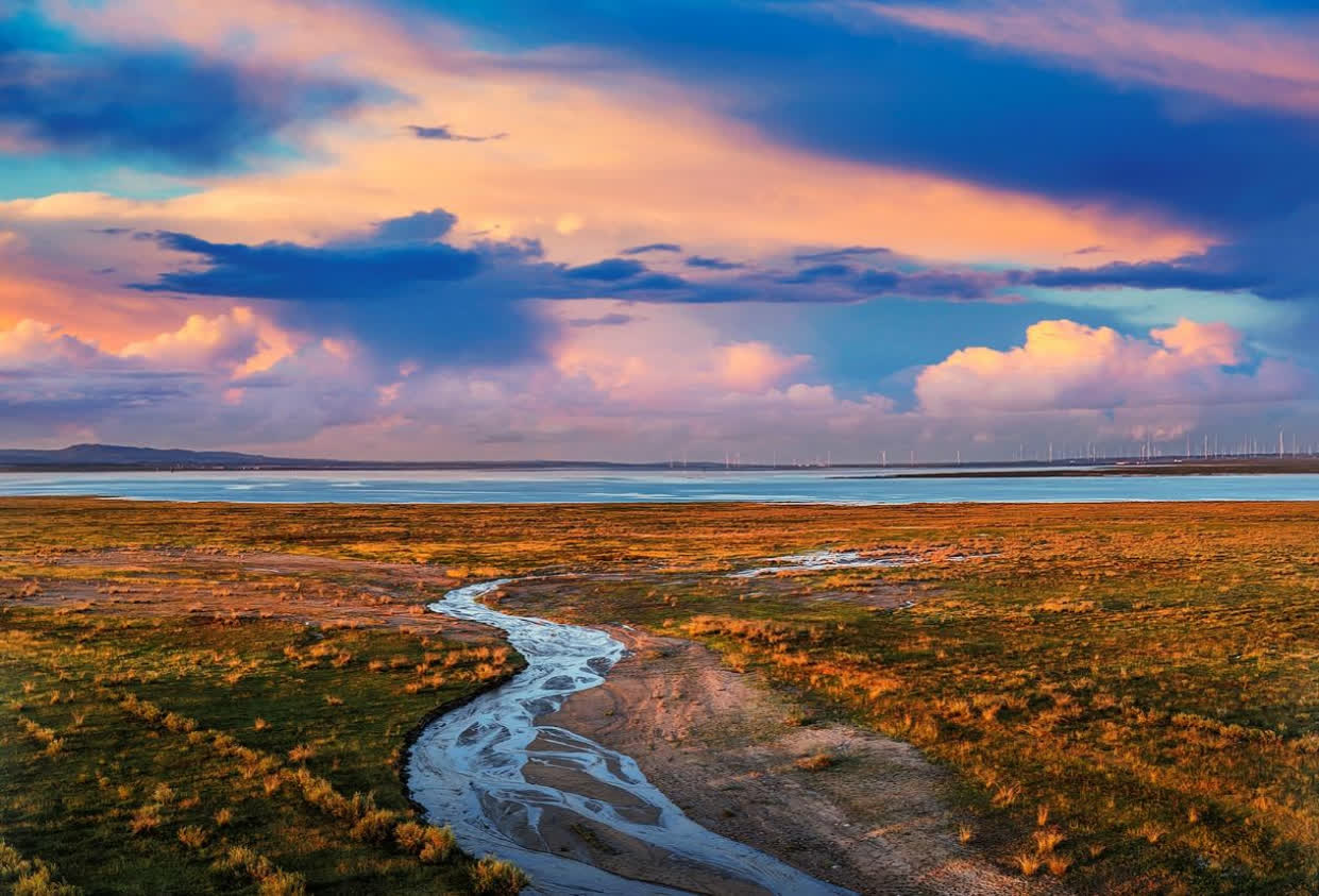 如今的察汗淖爾,碧水映藍天,綠草拂微風。晨曦初露時,鳥鳴聲此起彼伏,各類水鳥或嬉戲追逐,激起層層漣漪;或靜立休憩,悠然自得;成群的雁鴨在開闊水域展翅滑翔,划出優美的弧線。這片土地已從昔日的鹽鹼荒灘重回華北重要生態屏障,為築牢我國北方重要生態安全屏障提供了生動的實踐樣本。