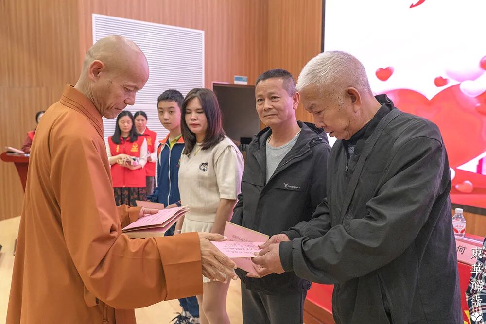 活動尾聲,首座頓瀚法師與參會領導共同為學子們發放了助學金,這不僅是物質的支撐,更是精神的接力。