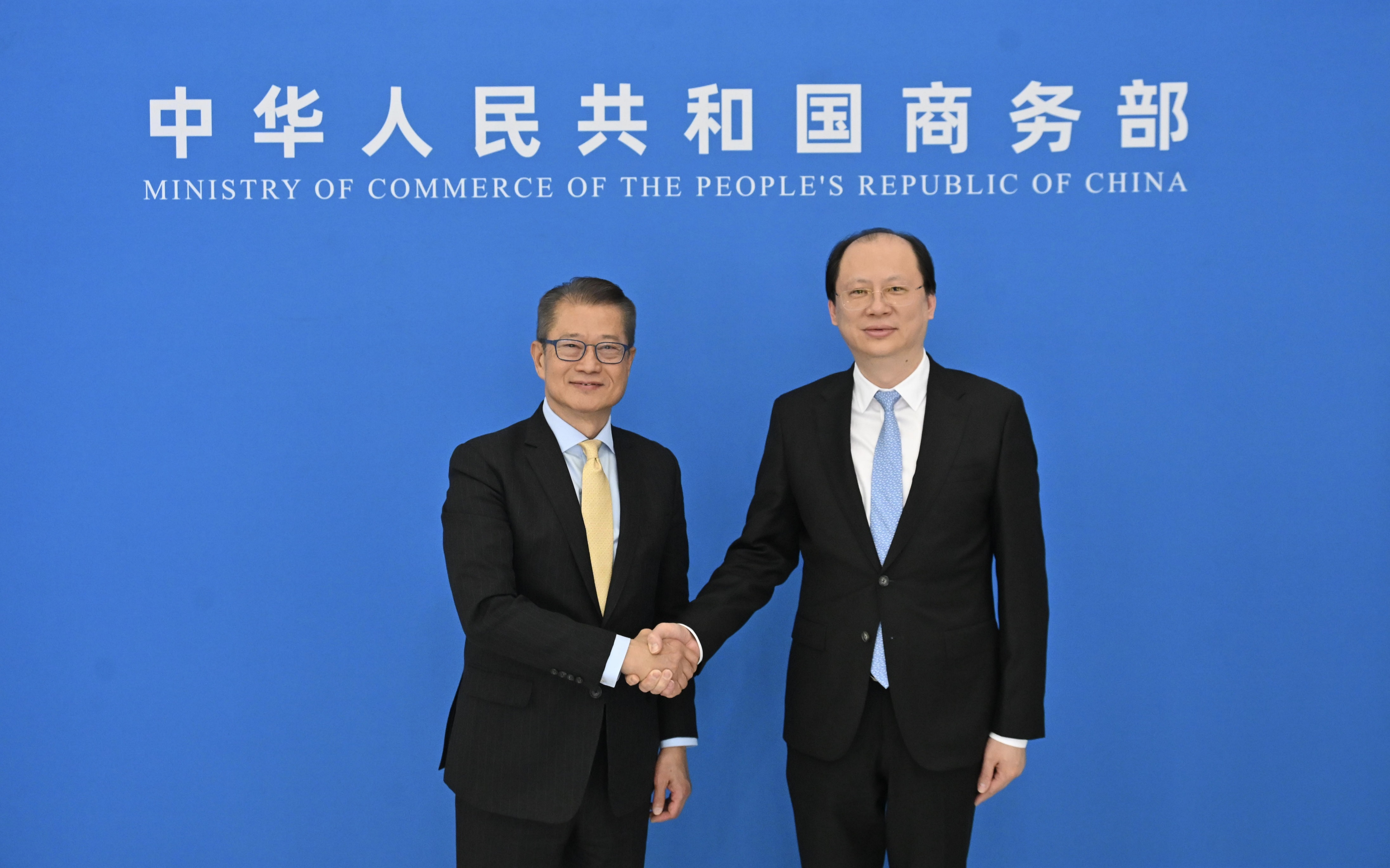 大公文匯全媒體報道,財政司司長陳茂波今日(23日)上午在北京與國家商務部部長助理袁曉明共同主持內地與香港經貿合作委員會第八次會議,這是會議首次在北京以實體方式舉行。會議回顧了過去一年內地與香港經貿合作的進展,並商議委員會未來的工作,包括《內地與香港關於建立更緊密經貿關係的安排》的落實情況、共同推進粵港澳大灣區建設、支持香港參與共建「一帶一路」與區域經濟合作等。