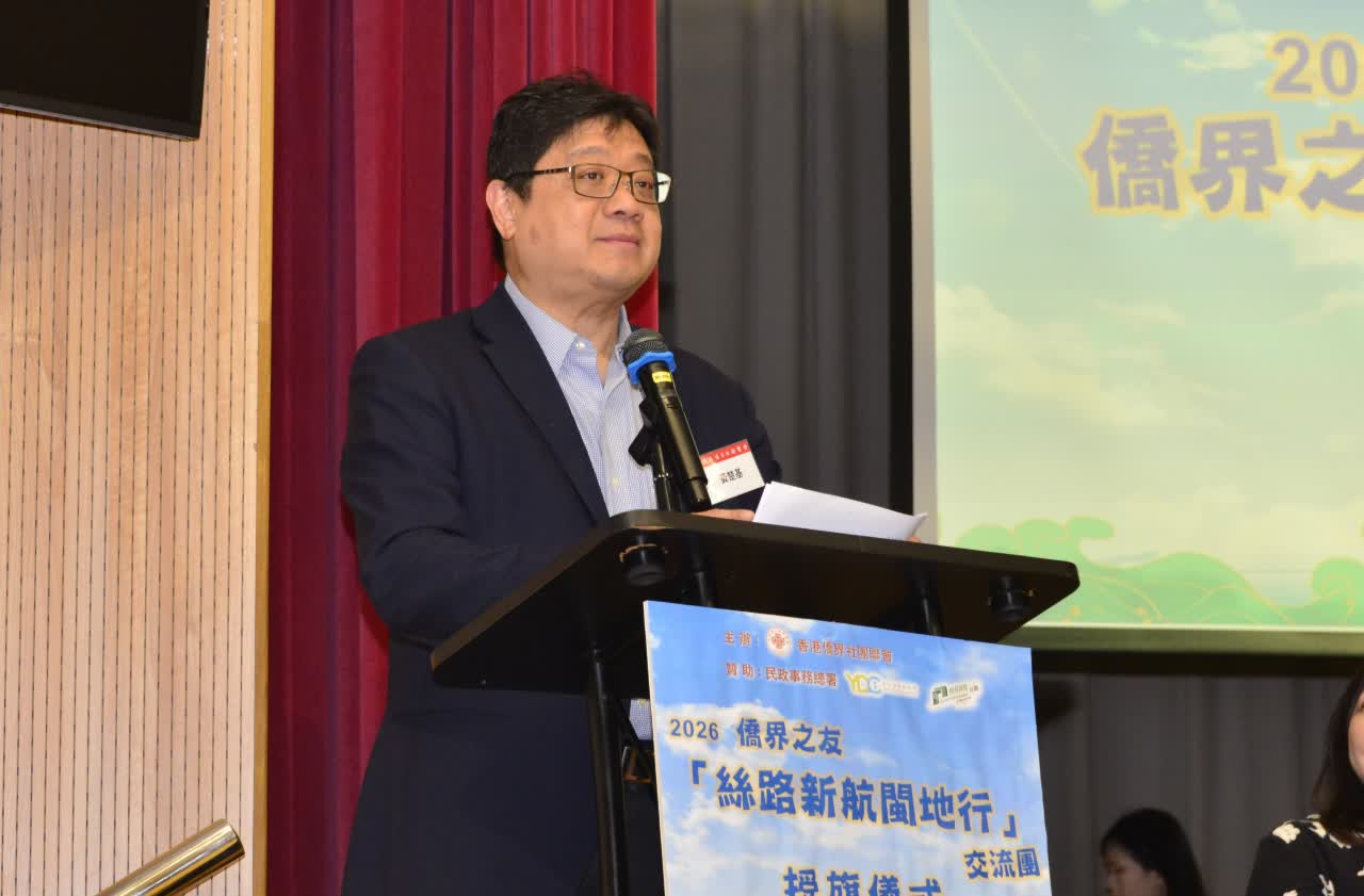為紀念紅軍長征勝利90周年及迎接國家「十五五」規劃開局之年,由香港僑界社團聯會(港僑聯會)主辦,民政及青年事務局及青年發展委員會資助的「紀念紅軍長征勝利90周年系列——香港僑青重走長征路暨『2026僑界之友絲路新航閩地行』交流團」,3月21日在福建中學(小西灣)舉行隆重的授旗儀式。