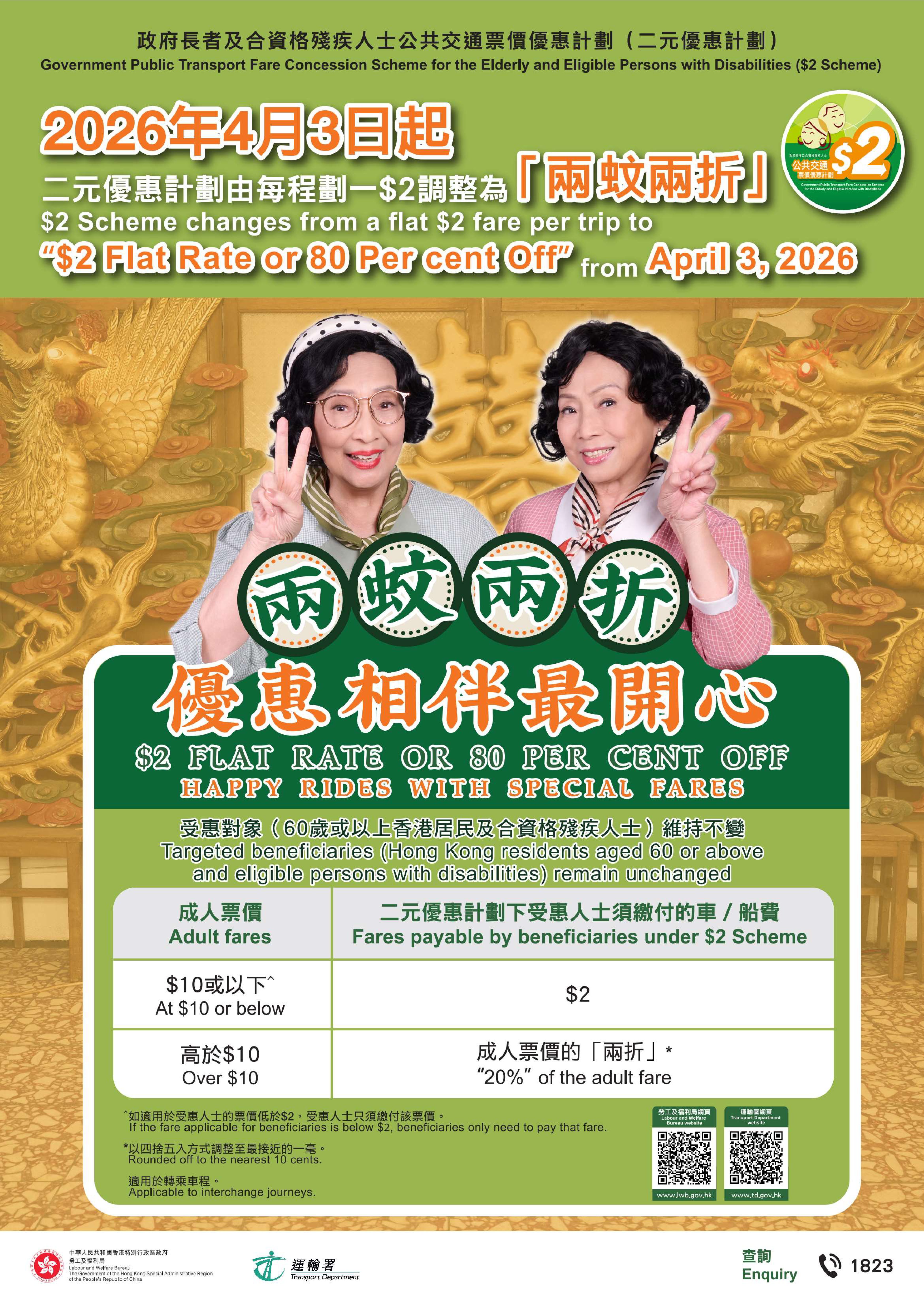 大公文匯全媒體報道,由4月3日起,「二元優惠」乘車計劃將劃一調整為「兩蚊兩折」。勞工及福利局局長孫玉菡今日(24日)於電台節目表示,昨日(23日)與區議員及關愛隊見面,他們提出了很多意見,包括如何令長者更容易識別是兩元抑或兩折的路線。當局為每區制定的乘車攻略將會陸續出台,也邀請區議會及關愛隊製作小區為本的攻略。