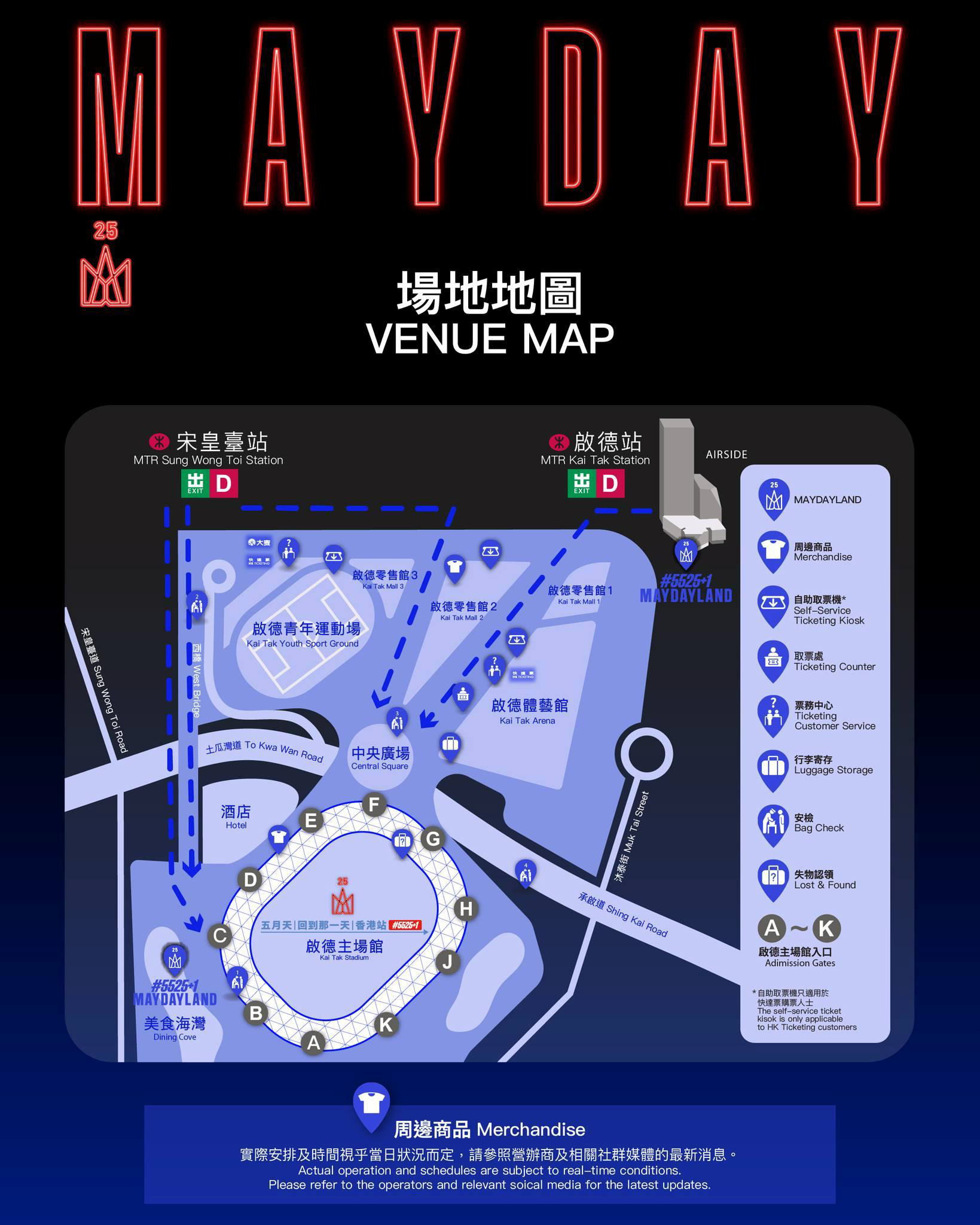 - 的士服務:啟德主場館的士上落客區全面開放。
