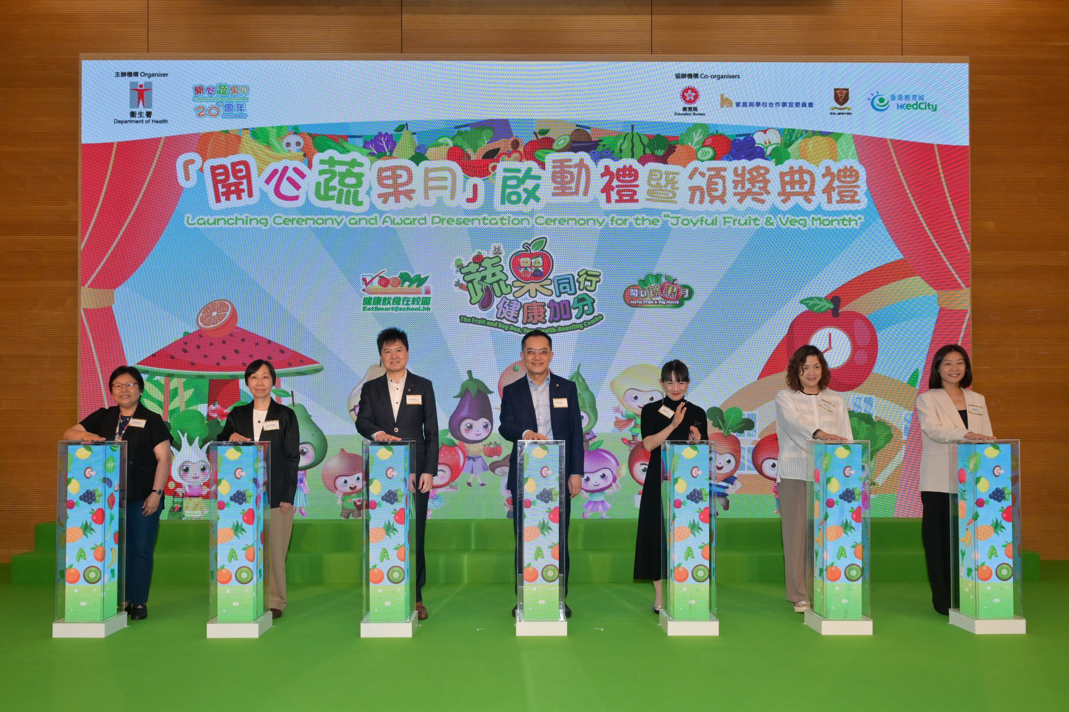 衞生署署長林文健醫生在啟動禮上致辭說:「充足的科學證據顯示,進食足夠的蔬果有助減低患上心臟病、中風和癌症的風險。健康均衡飲食亦會減少超重及肥胖,提升市民健康。然而,衞生署《學生健康服務2024/25學年周年健康報告》顯示,在二○二四/二五學年,有89.4%的學生(82.5%小學生及96.8%中學生)表示每天進食水果和蔬菜量不足(即小學生平均少於四份;中學生平均少於五份),顯示有需要改善。因此,在二○二五/二六學年,衞生署正式將推廣蔬果的活動升格為『開心蔬果月』。至今已有超過1 700間學校積極參與,惠及近60萬名學生,創下歷史新高。今年主題為『蔬果同行 健康加分』,提醒學生和家長蔬菜與水果是身體健康的最佳拍檔,同時呼應衞生署本月初推出貫穿全生命周期的《體重管理行動計劃》,鼓勵公眾從小培養健康飲食及生活模式,以預防肥胖及多種慢性疾病。」