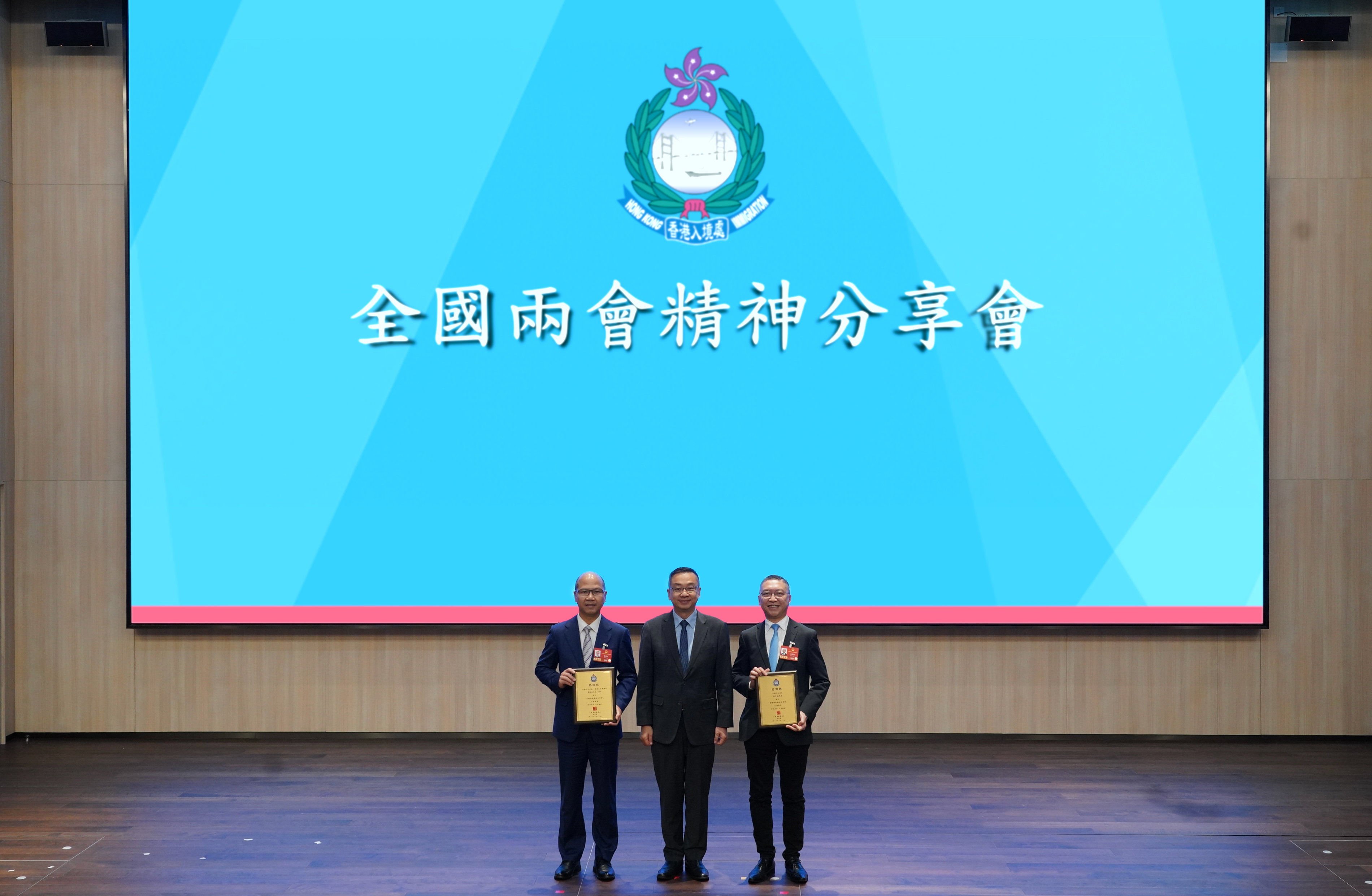 昨日, 我們非常榮幸邀請到兩位港區全國人大代表──黃錦良議員和林至頴先生,來到入境處總部為同事舉行「全國兩會精神分享會」。