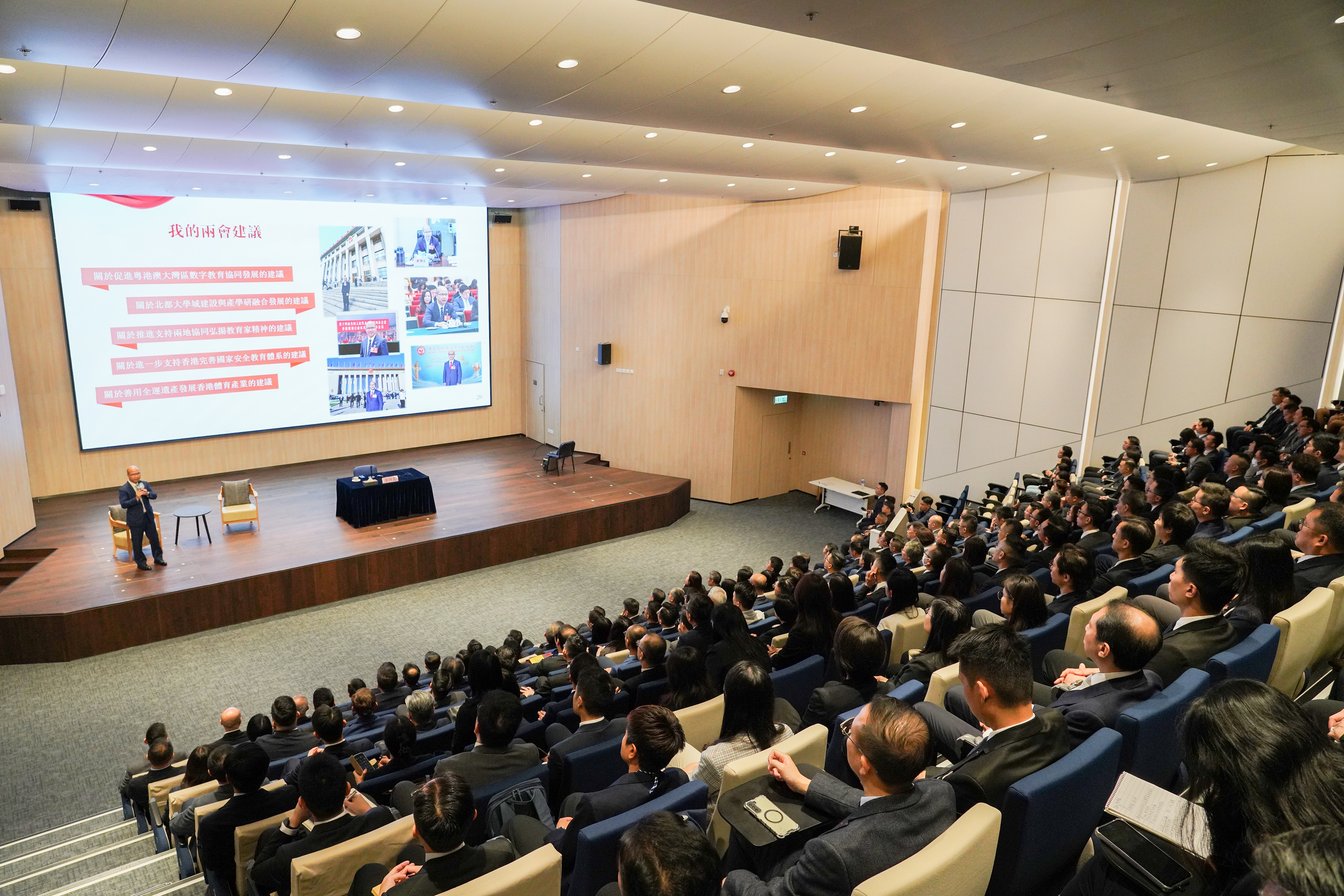 今年正值「十五五」規劃開局之年,兩位代表透過親身參與會議的第一手觀察,與大家分享國家發展的宏偉藍圖。黃議員向同事解說政府工作報告的重點數據,剖析香港服務國家大局的戰略方向。而林先生則談到「十五五」規劃承先啟後的意義,勉勵大家要平衡發展與安全,為強國建設貢獻香港所長。