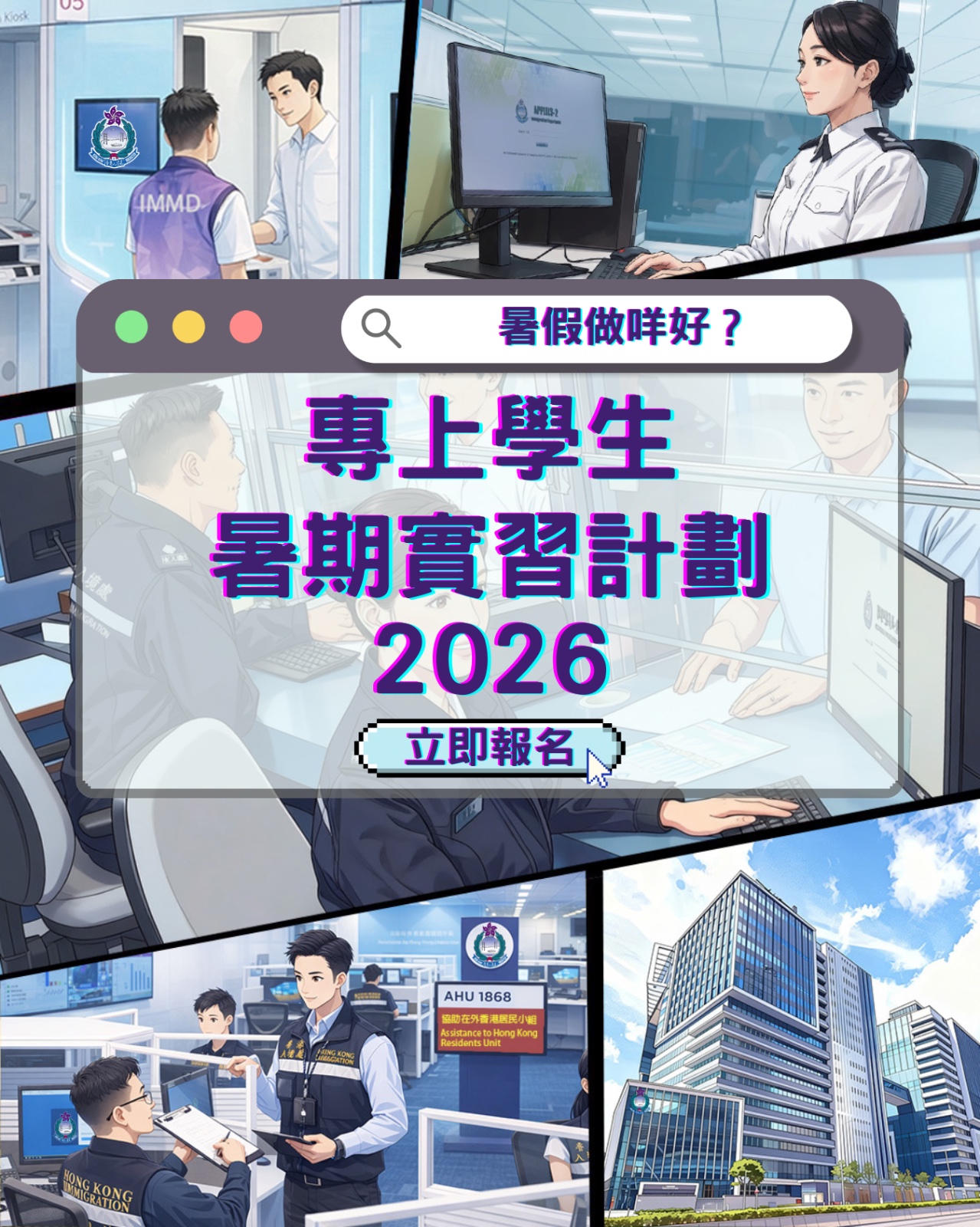 今年暑假做甚麼好? 現在機會來了,立即報名參加入境處暑期實習計劃吧!