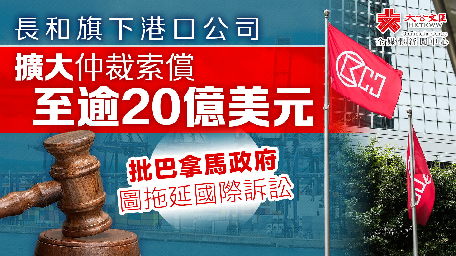 大公文匯全媒體報道,長和再發聲明,就巴拿馬政府不合法接管巴爾博亞港和克里斯托瓦爾港貨櫃碼頭,並霸佔巴拿馬港口公司資產一個月後,擴大對巴拿馬政府提出之國際仲裁索償,相關索賠金額現已提升至超過20億美元。