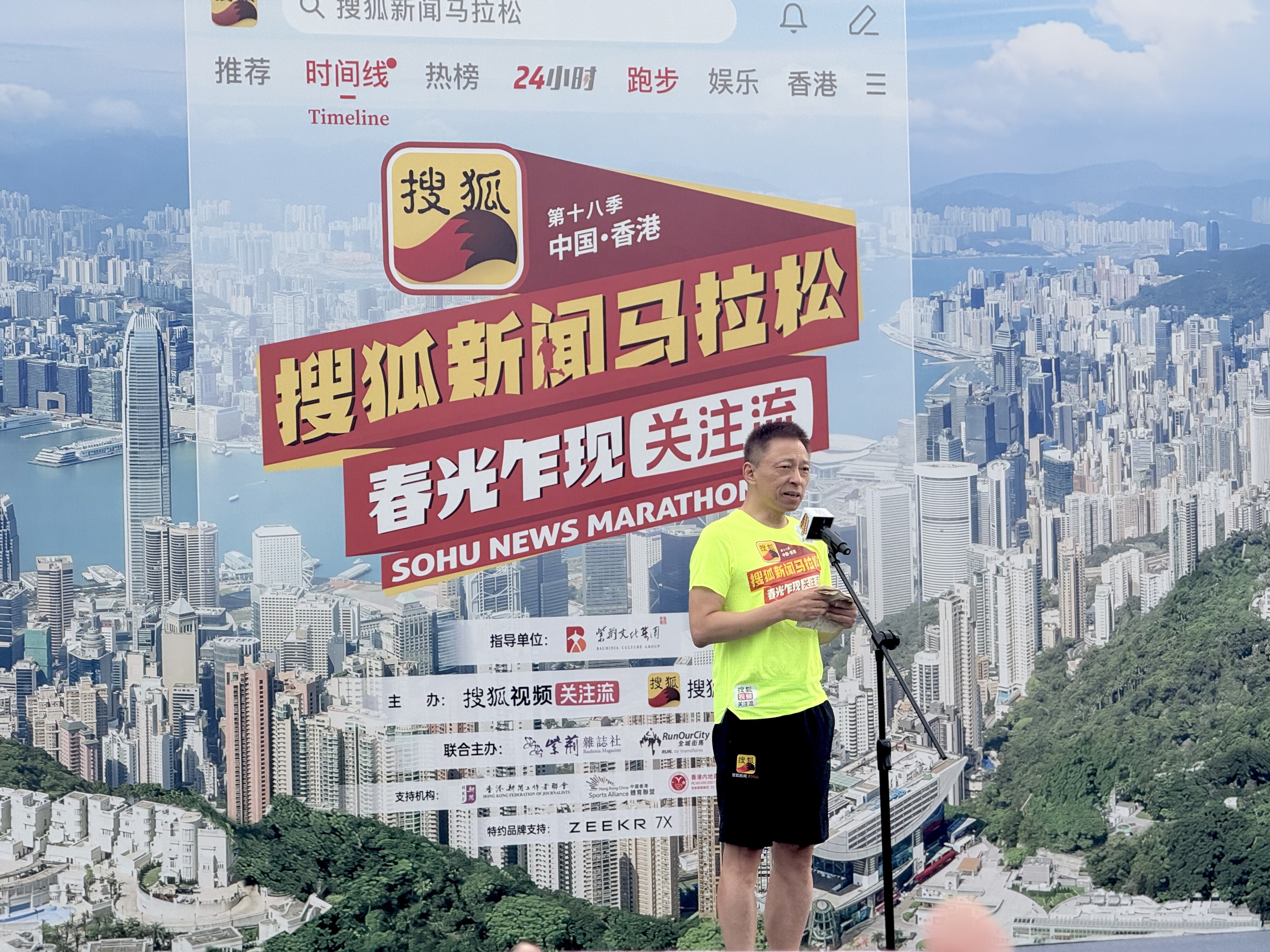 搜狐創始人、董事局主席兼首席執行官張朝陽發言時首先感謝紫荊集團和紫荊雜誌社的大力支持,又表示香港是一個他非常熱愛的城市。他讚香港是運動天堂,因為這裏不僅有繁華都市,還有山路、台階和美麗海灣風光,能帶來豐富的運動體驗,希望能透過馬拉松活動推介這座城市,讓更多網民來港遊玩。