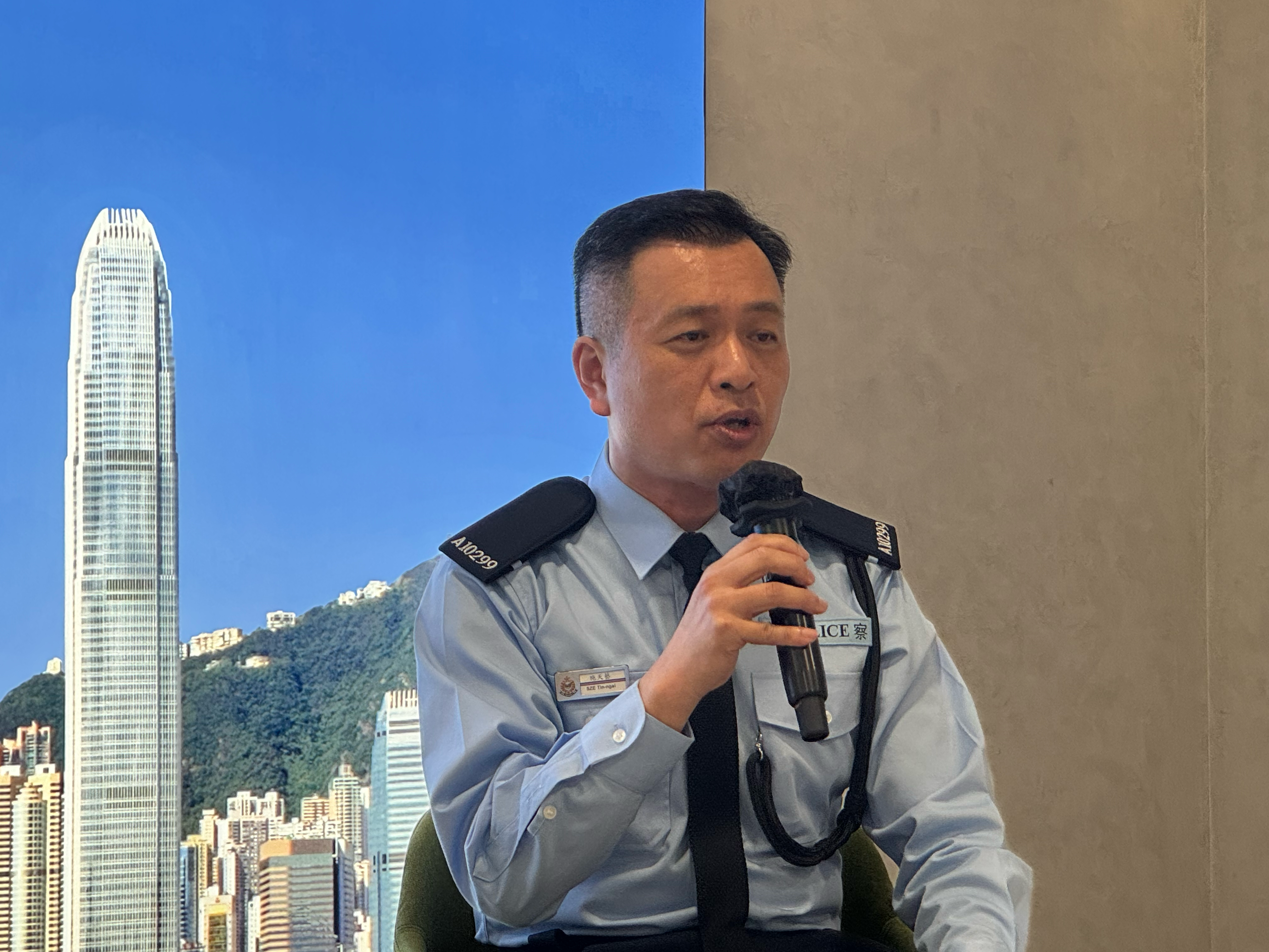 52歲的施天藝於香港科技大學任職,身兼內地事務處主任和公共政策學部及大數據研究所副教授。他坦言,大學時期便嚮往警務工作,卻因工作原因離港而未能如願,之後他在2019年「黑暴」事件期間目睹對校園及社區的衝擊,而其子女就讀學校附近還發生了警員被圍堵事件,他更加堅定了投身輔警的念頭,希望既能保護家人,也能為子女樹立榜樣。