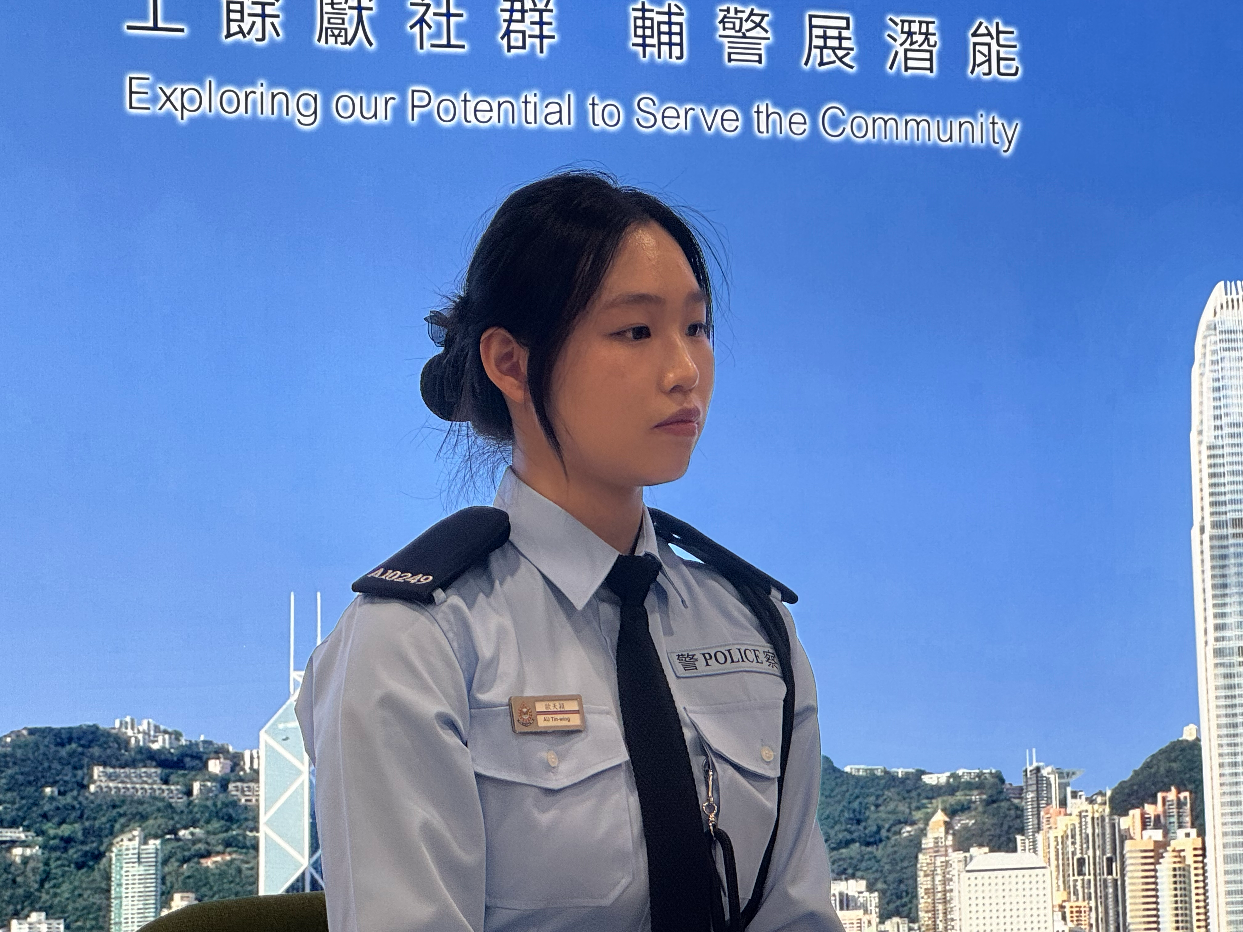 就讀於香港浸會大學社會學的大三學生歐天穎今次亦成功畢業,成為一名輔警。她表示,相信自己所學的社會現象分析、溝通技巧,能讓她在巡邏中更敏銳地觀察市民需求,成為一位具備人文關懷的輔警,更深入地理解社會問題的根源,而其自幼學習游泳的經歷培養了她的自律與堅持的品質。