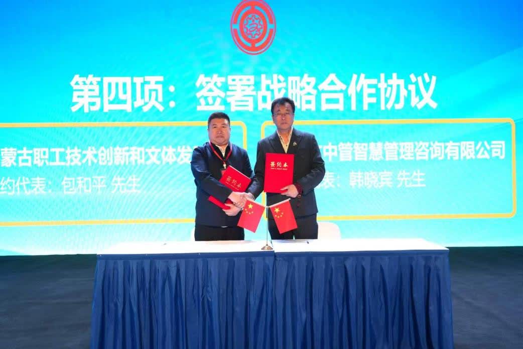 會上,內蒙古職工技術創新和文體發展協會與內蒙古中管智慧管理諮詢有限公司簽署戰略合作協議;額爾敦巴雅爾為組織與人才發展專業委員會揭牌,標誌着專委會正式成立。烏雲同志詳細解讀專委會管理規範,明確運行機制與工作準則,為專委會規範運營、高效履職奠定堅實基礎。