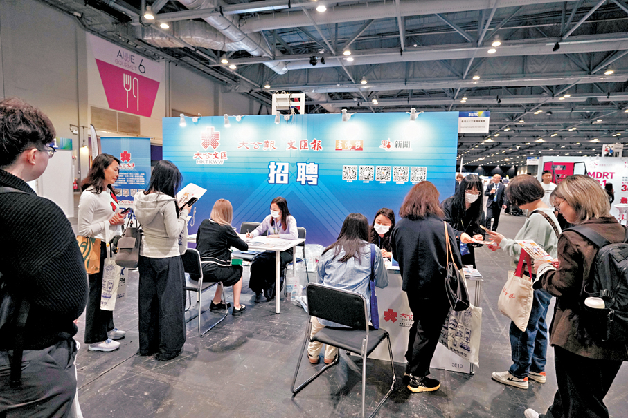 (大公文匯全媒體記者 江凌風)香港大公文匯傳媒集團在「創新香港—國際人才嘉年華2026」設置招聘攤位(3E10),提供集團管培生、採編、行政等全職崗位,同時亦有實習崗位,吸引各地人才前往。昨日攤位人頭湧湧,應聘者絡繹不絕,大排長龍。有高才應聘者表示,受家人鼓勵到大文集團應聘,並計劃為心儀崗位學習廣東話。