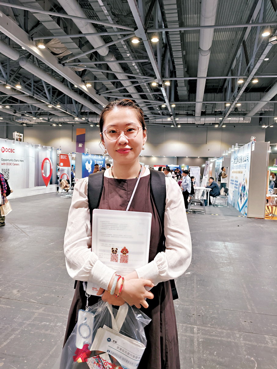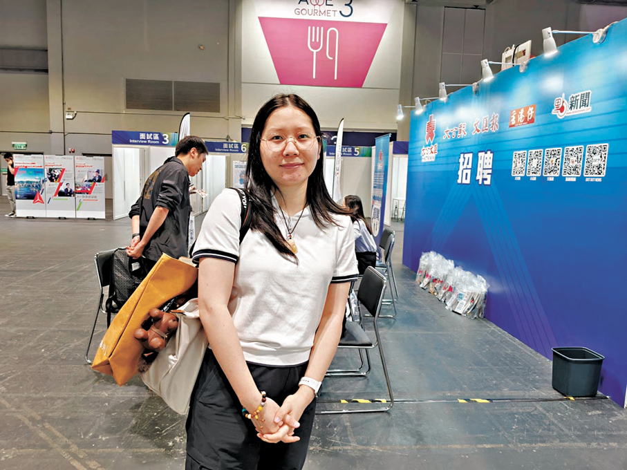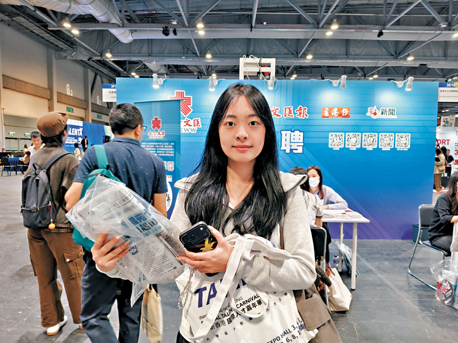 持香港高才通資格的李小姐昨日特地應聘大公文匯傳媒集團採編崗位。作為海外傳媒與教育專業背景的應屆生,她表示,自己有親人從事媒體相關工作,受他們推薦及鼓勵嘗試應聘。她喜歡香港中西文化融合的環境,昨日在大文集團攤位經了解後知悉,能懂廣東話亦十分重要,故計劃主動學習廣東話,希望通過努力爭取心儀崗位。