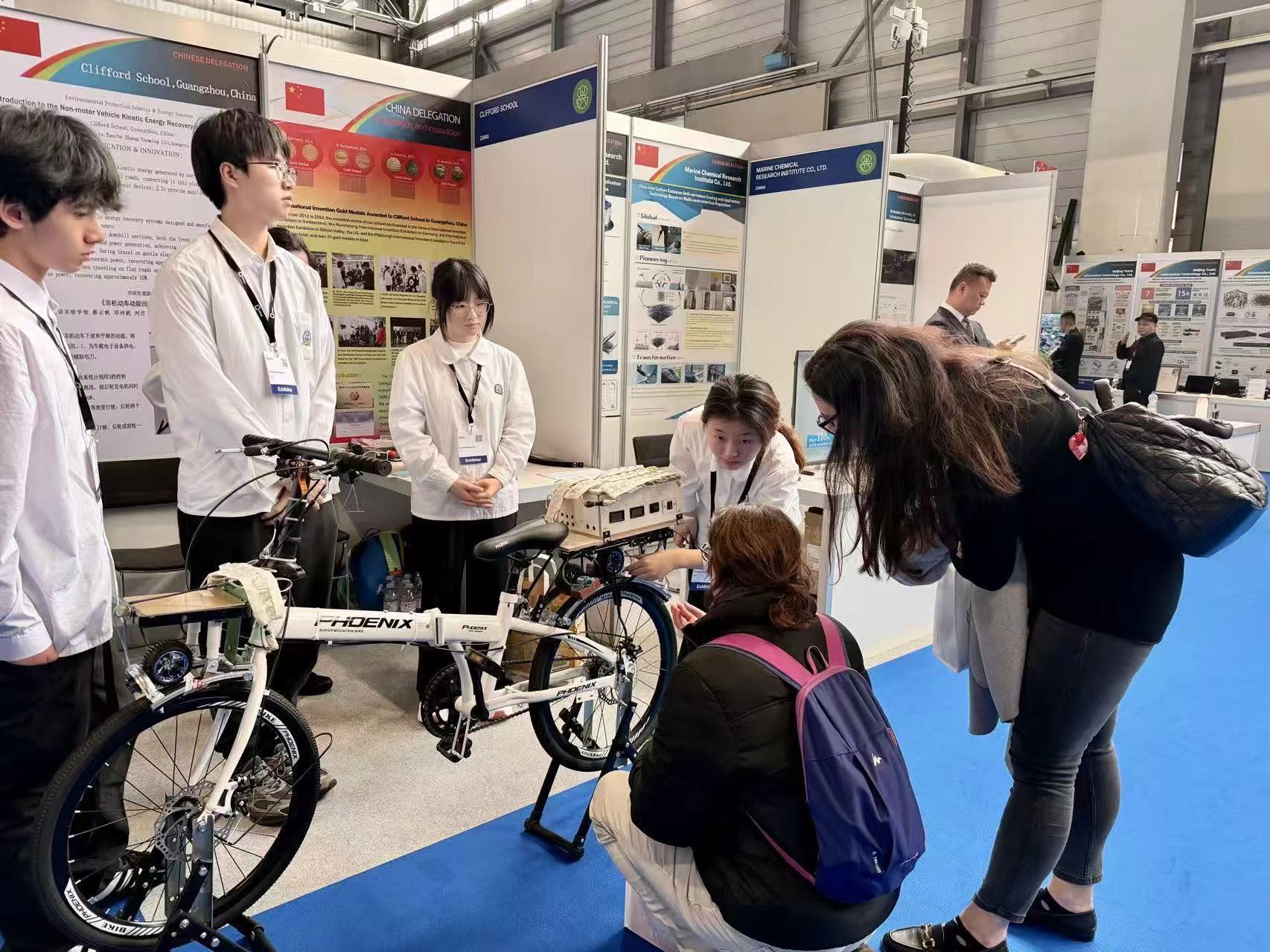 日內瓦國際發明展素有「發明界奧林匹克」之稱,評審嚴苛、含金量極高。本屆展會匯聚全球35個國家和地區千餘項頂尖創新項目,祈福英校蔡雲帆等7名學子在鄧九貴、馮傑雲老師指導下,攜非機動車動能回收裝置2.0參賽。該裝置攻克動能轉化與存儲難題,可回收非機動車滑行、下坡損耗動能,支持220V交流輸出,兼具AI創新與環保價值,契合綠色低碳趨勢,獲國際評委高度認可。