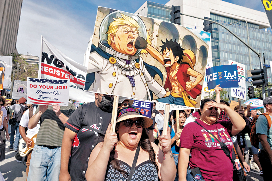 抗議浪潮席捲全美,從東海岸大都市到西部偏遠鄉鎮。在紐約曼哈頓,數萬名示威者在中央公園遊行,隊伍綿延近兩公里,抗議標語上寫有「法律而非人治」等口號,諷刺聯邦移民及海關執法局(ICE)。奧斯卡影帝羅拔迪尼路也加入人群,直斥特朗普是「對我們自由與安全的持續威脅」。在首都華盛頓,數千人聚集在國家廣場,有抗議者高舉「特朗普必須現在下台」等標語。