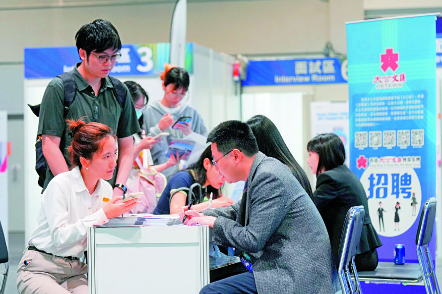 大公報記者昨日下午所見,各展位前均有大批求職者駐足諮詢、遞交履歷,不少是應屆碩士畢業生,專程為留港發展而來;各企業的工作人員亦熱情向求職者介紹,幫助他們尋找適合的崗位。