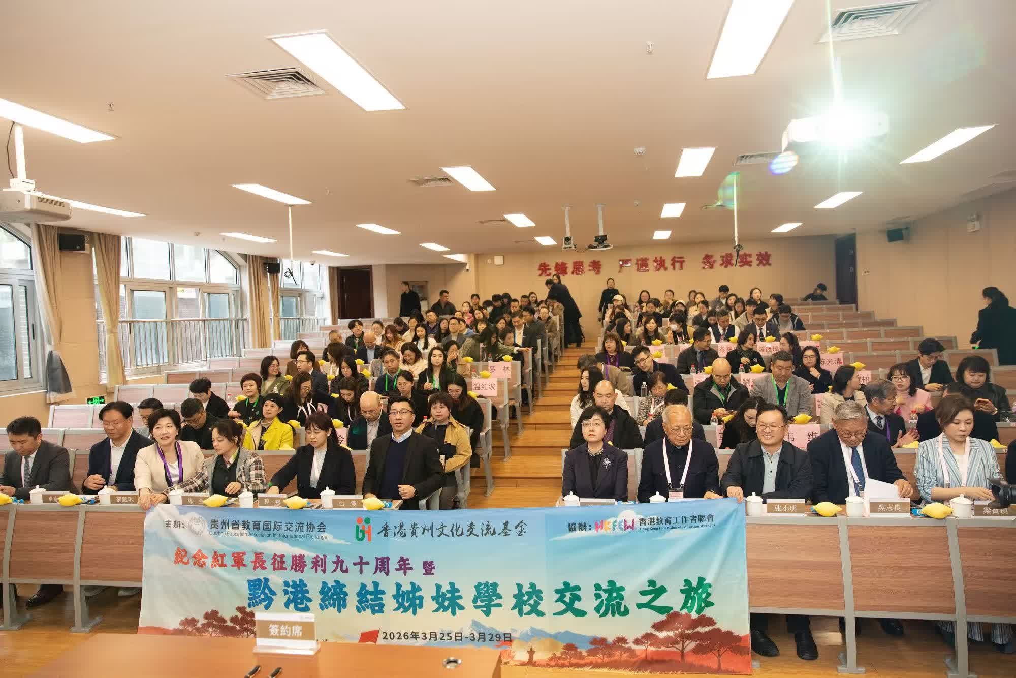 由香港貴州文化交流基金主辦的2026年「學子手牽手 貴港一家親」黔港締結姊妹學校活動,於3月25日至29日隆重舉行。該項活動自2015年起,每年三月舉辦,至今已持續逾十年。今年在基金會的積極牽線搭橋下,黔港兩地再增六對姊妹學校,共有18間香港學校的120多位師生、教育工作者及基金會同仁參與貴州之行。