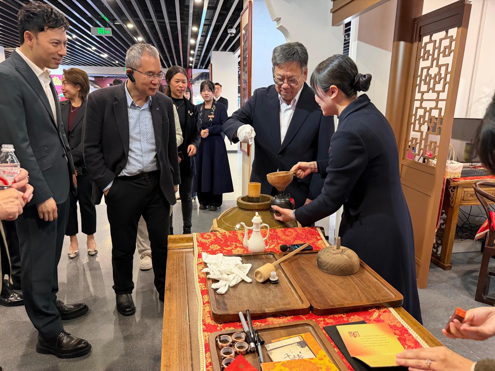 局長向有關白酒品牌的高層代表簡介香港在推動烈酒貿易的優勢,並就協助當地白酒業「出海」交換意見。代表團一行在貴州亦參觀中國酒文化城,加深認識中國酒業的特色和發展歷程。