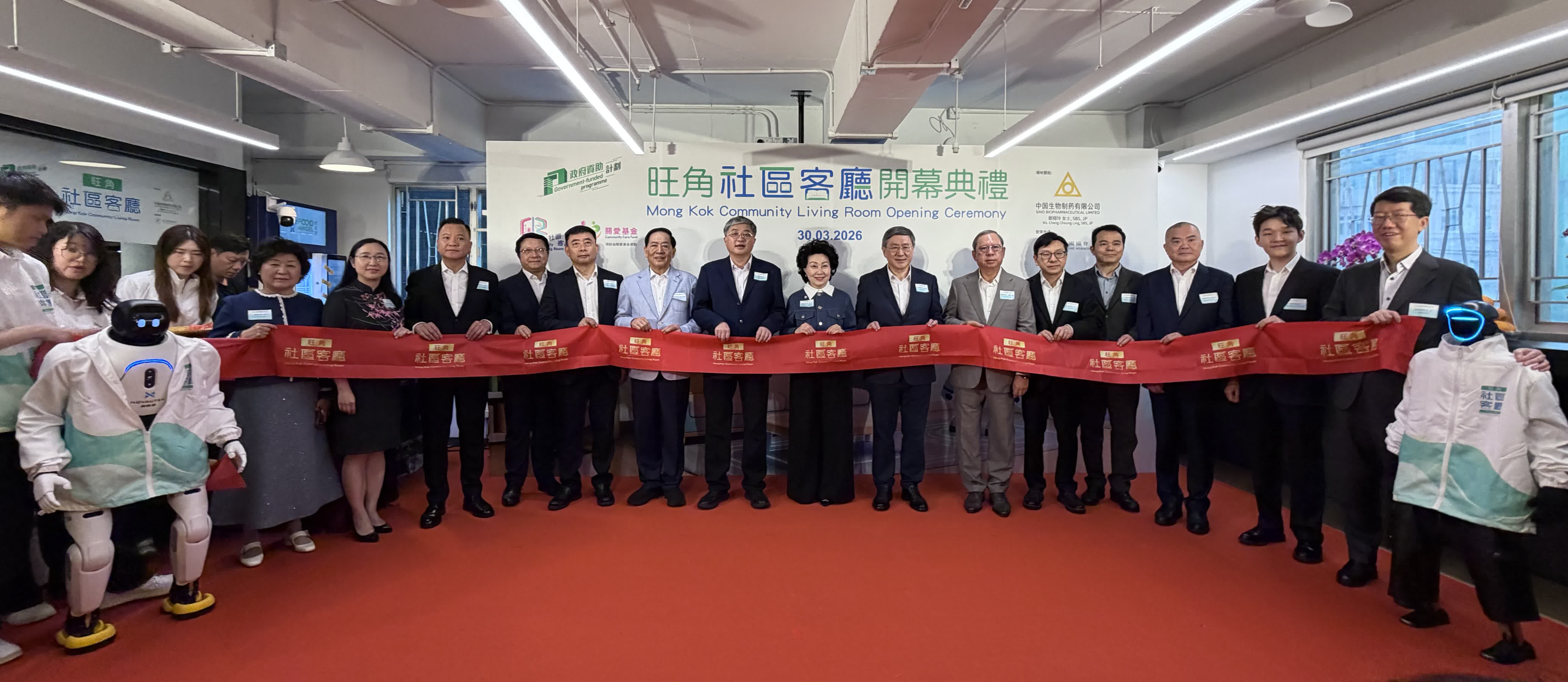出席旺角社區客廳開幕典禮的主禮嘉賓還包括中央人民政府駐香港特別行政區聯絡辦公室副主任羅永綱,勞工及福利局局長孫玉菡,中聯辦協調部部長朱文,中聯辦九龍工作部部長祝小東,香港大公文匯傳媒集團董事長兼大公報社社長、香港文匯報社社長李大宏,中國生物製藥有限公司首席執行長謝承潤,勞工及福利局常任秘書長劉焱,社會福利署署長杜永恒和新家園協會監事會主席張茵等。