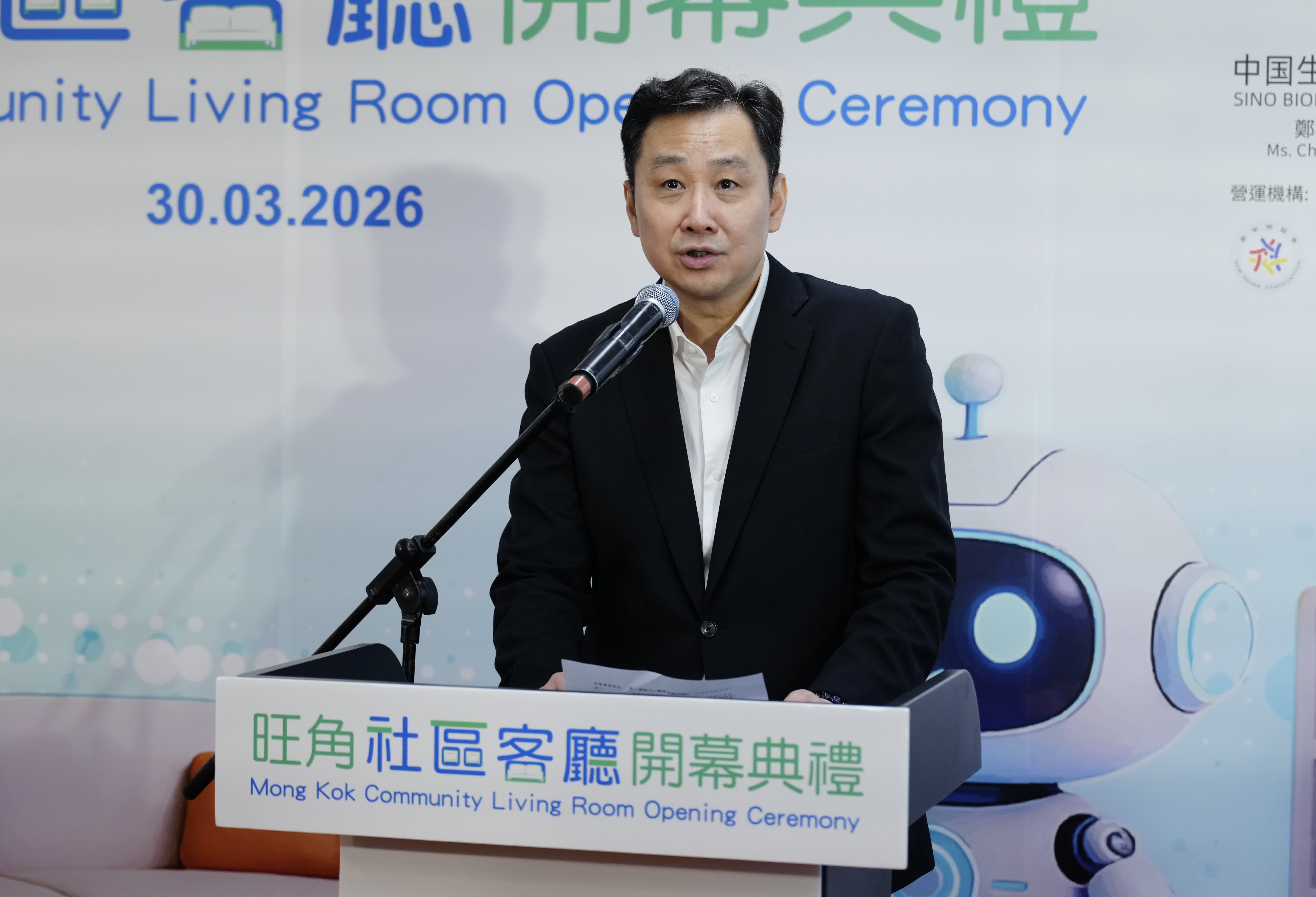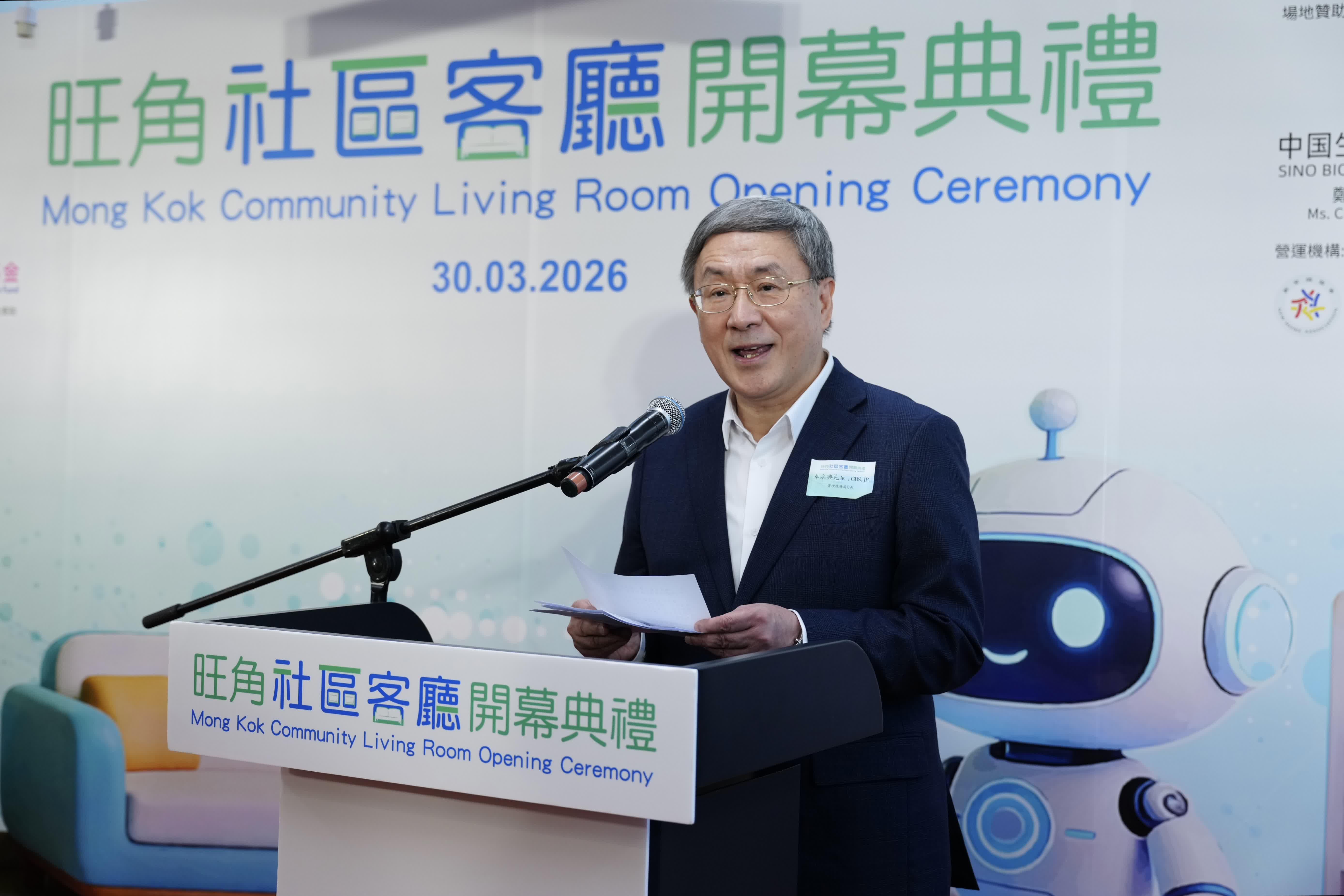 署理政務司司長卓永興在致辭時表示,旺角社區客廳實用面積約為5300平方呎,是油尖旺區第一個社區客廳,也是全港第二大的社區客廳,同時是5間重點旗艦項目之一。這間客廳的設計與規劃,處處體現以人為本、因地制宜的理念,兼顧服務對象的獨特需要。