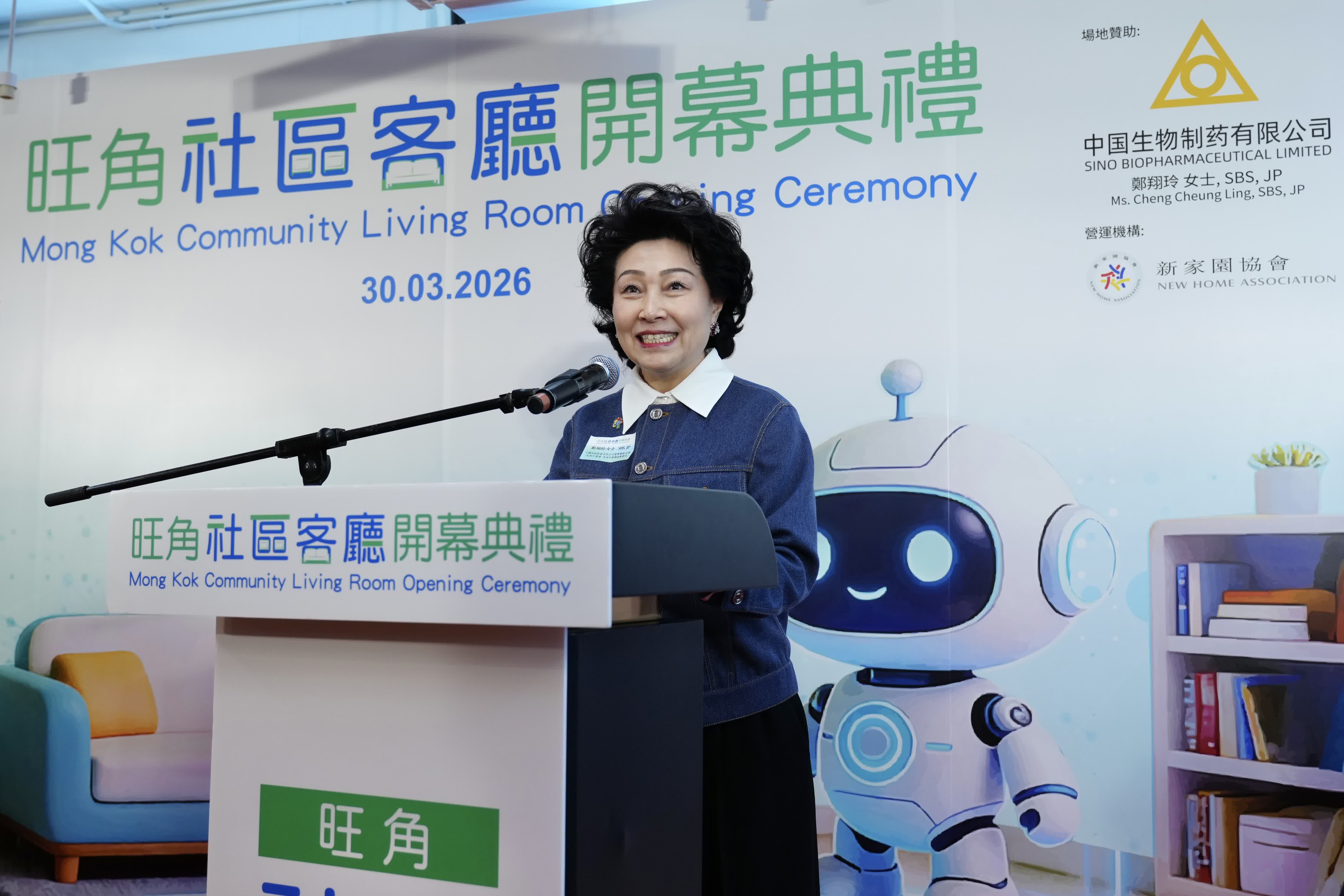 中國生物製藥有限公司董事會副主席及執行董事、香港中華聯誼會會長鄭翔玲在致辭時表示,旺角社區客廳每年服務約500戶、共2600人,預計每年服務人次達8萬。作為首家引入AI技術的社區客廳,配備了各類學習工具、最先進的電腦和編程設備等,相信孩子們在這裏接觸最先進的智能科技和最新的科技創新成果。