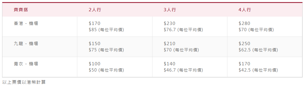 即日(3月30日)起至8月31日,不論是2人、3人或4人行,只需一同前往機場快綫客務中心(博覽館站除外)購買單程團體票,每人可以低至HK$42.5乘搭機場快綫。