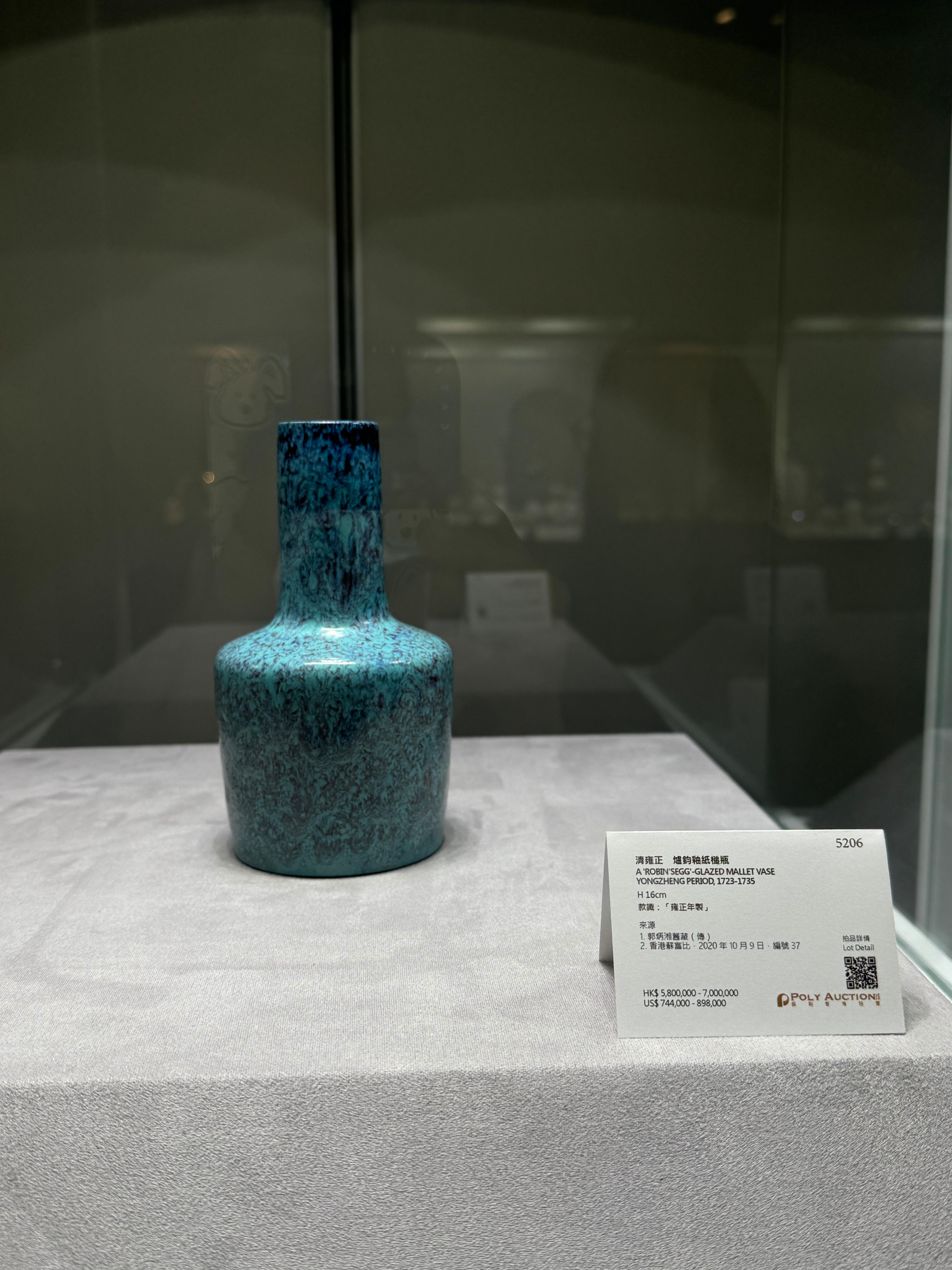 此次春拍有500餘件古董藏品,分中國古董珍玩、物道:中國高古藝術珍品、頤華:重要宮廷藝術珍品選粹三個專場拍賣。保利香港拍賣中國古董珍玩部高級專家陳依依介紹,清乾隆的廠官釉加洋彩披肩花卉山字紋太平有象雙象耳尊以洋彩搭配茶葉末釉,並融入西畫陰影處理技巧,融匯中國傳統與西洋藝術的精粹,頸部兩側各貼塑一象耳,寓意太平有象。