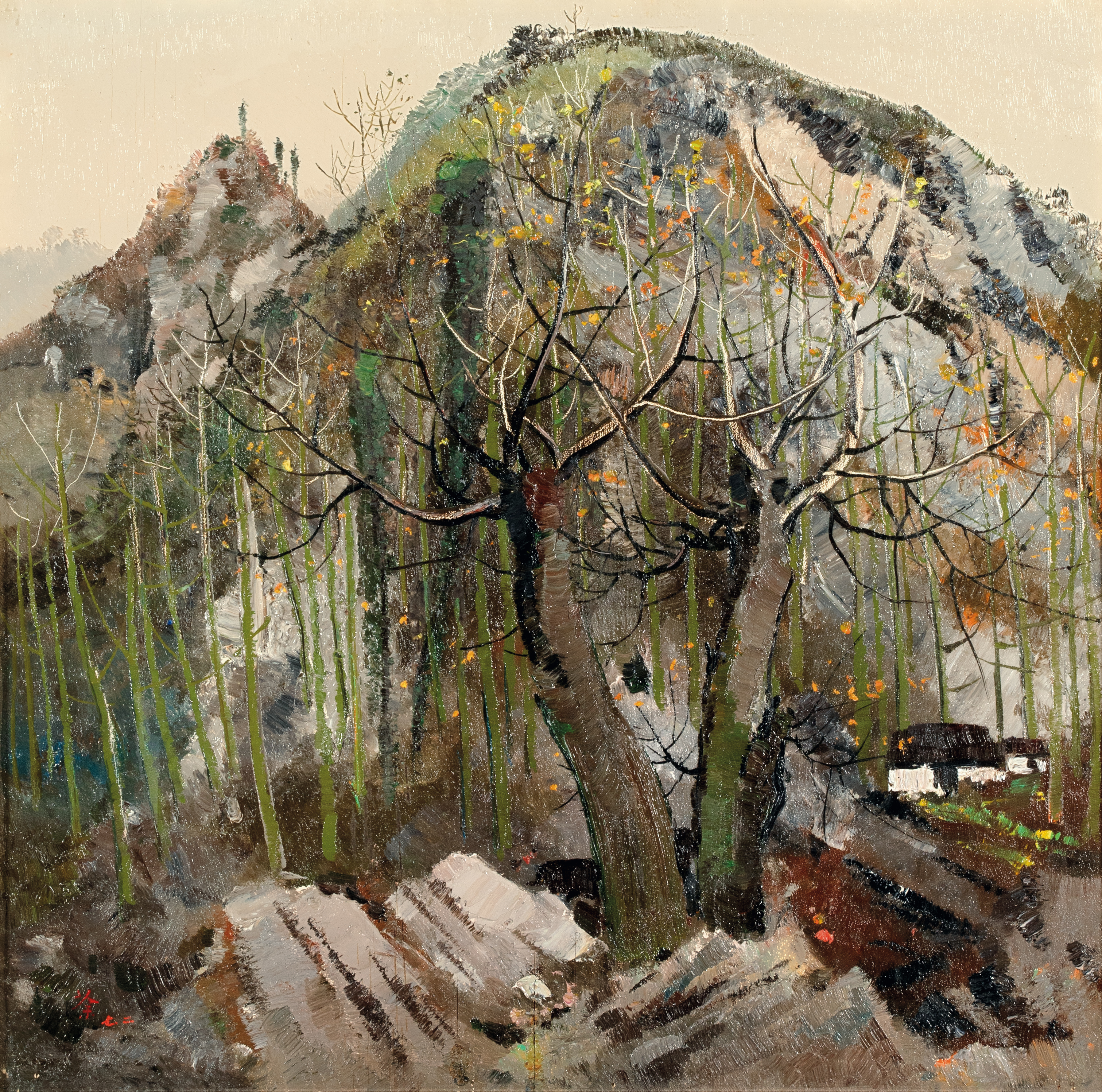吳冠中的《黔靈山》可視為中國現代藝術史上融會東西的一座高峰。該作是其1970年代的重要代表作,此作不僅描繪貴陽山景,更融合宋人山水精神、石濤的形式自由,以及塞尚以來的現代藝術觀念。