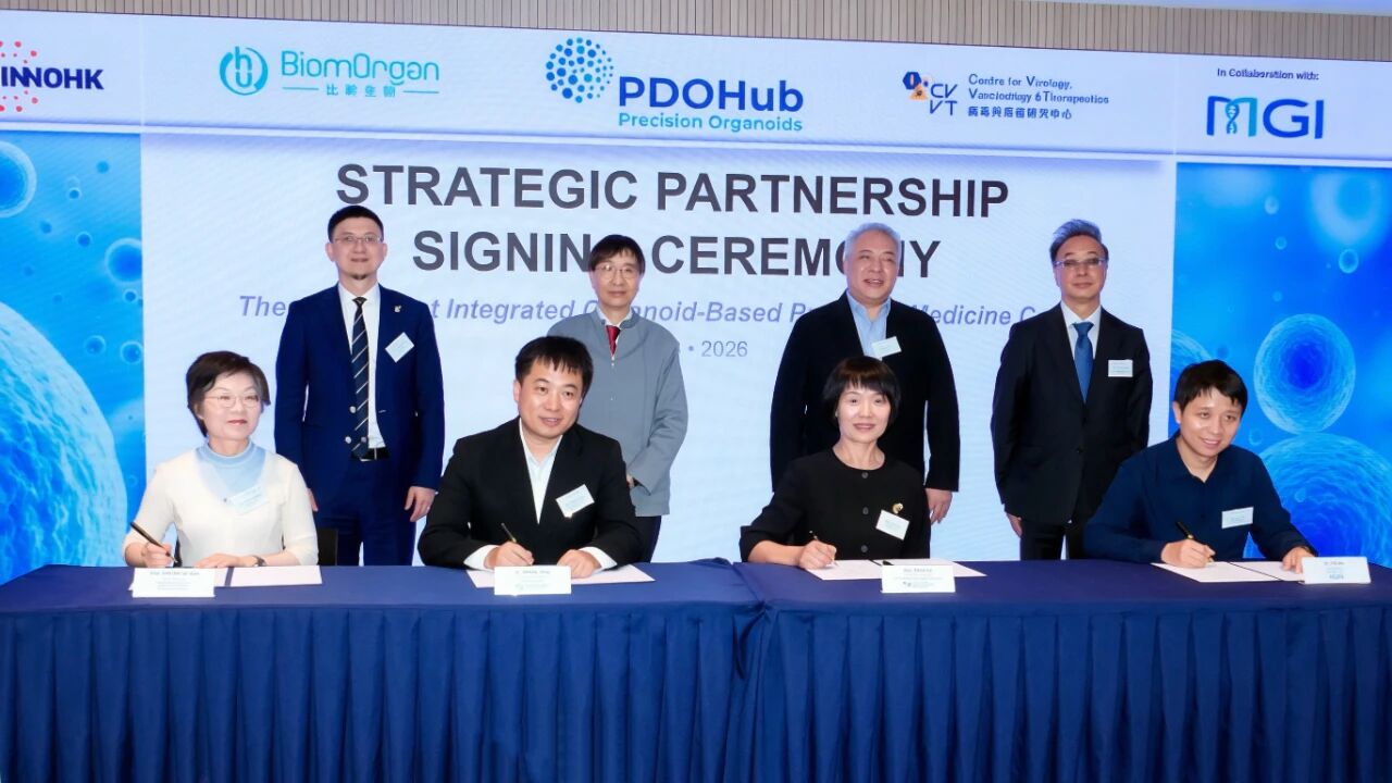 (大公文匯網記者 郭若溪)3月31日,香港生命科學公司比幹生物(簡稱「比幹生物」)、病毒與疫苗研究中心(簡稱「CVVT」)與華大智造在香港科學園宣布達成三方戰略合作,聯合打造亞洲首個整合式類器官精準醫學中心—PDOHub™ HK(以下簡稱「中心」),三方將發揮各自技術優勢,共同推動精準醫學、臨床決策支持及多病種轉化研究的發展。
