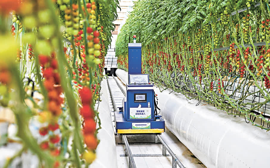 「光照、水肥都能調控,根據作物需求讓每一棵作物都吃得精準、長得健康。」王超說,佔地10畝的智能玻璃溫室僅需2名技術人員就能完成管理和運營;番茄和草莓的掛果時間長達8個月,畝產超萬斤。