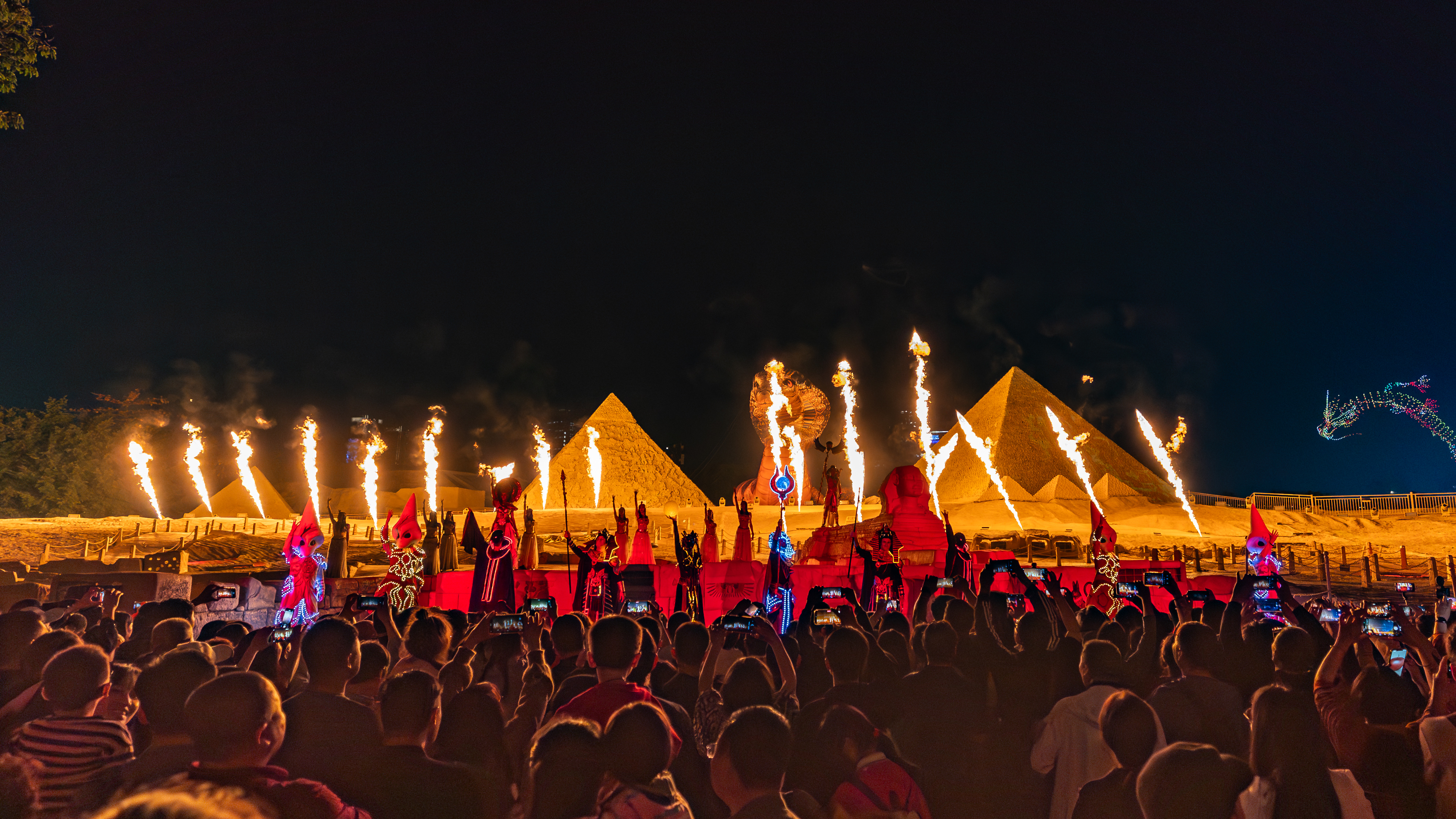 源自商周時期的儺戲,承載着驅疫消災、迎福納祥的樸素祈願,如今在世界之窗被重新定義。遊客將目睹戴上面具的舞者,以一曲融合傳統與現代審美的「現代儺戲」,在神秘而熱烈的氛圍中,為八方來客送上跨越時空的祝福。這場沉浸式文化體驗,不僅讓非遺「活」起來,更讓年輕一代在互動中感知傳統文化的深厚底蘊。