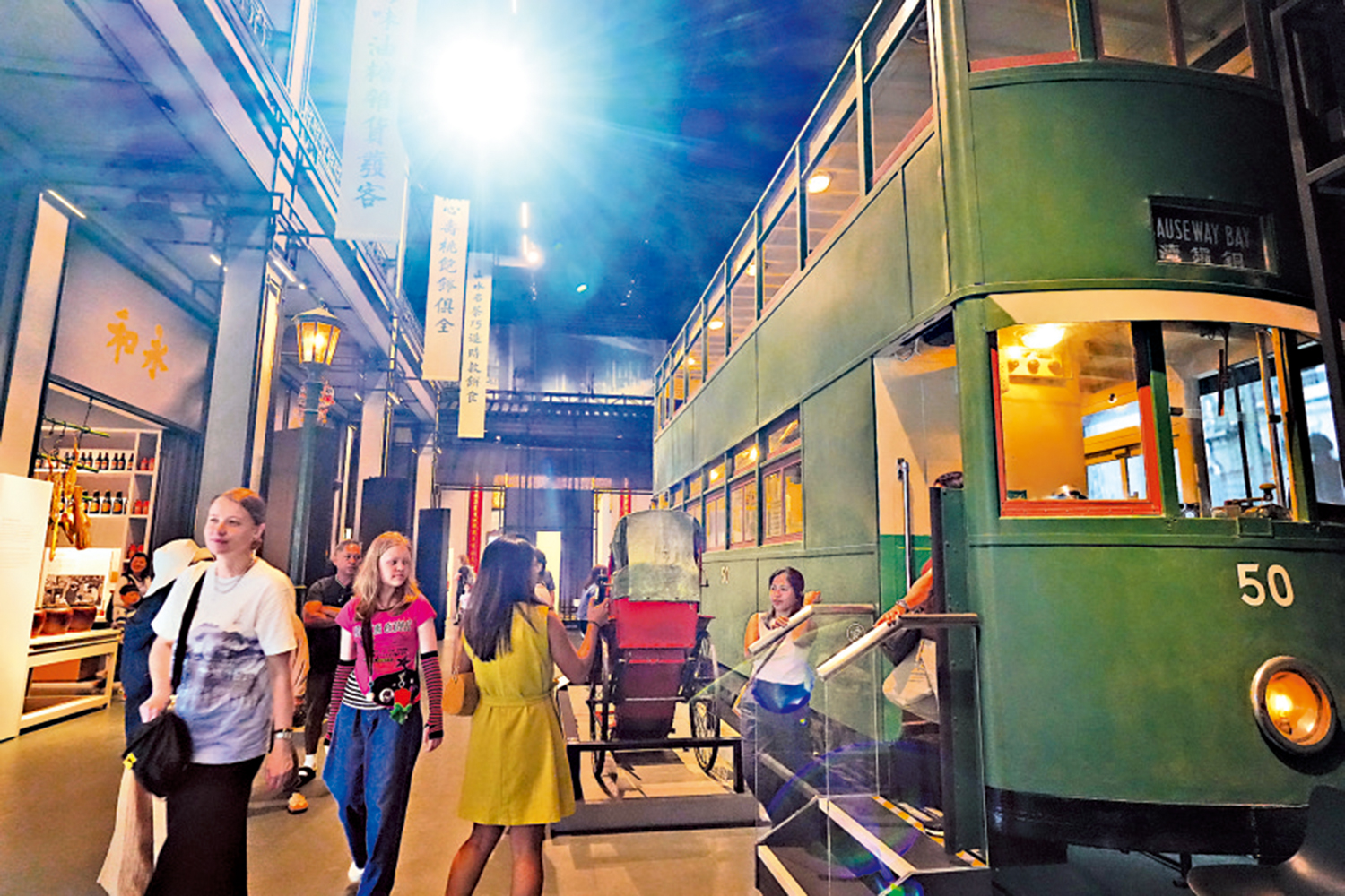 其中,「華洋融合」展區尤為引人注目,重現1930年代的大街風貌。展區內有雙層電車、唐樓街景,更有實景布置的「誠濟堂中藥店」,帶觀眾親歷當年香港華洋雜處、新舊交融的社會景象。