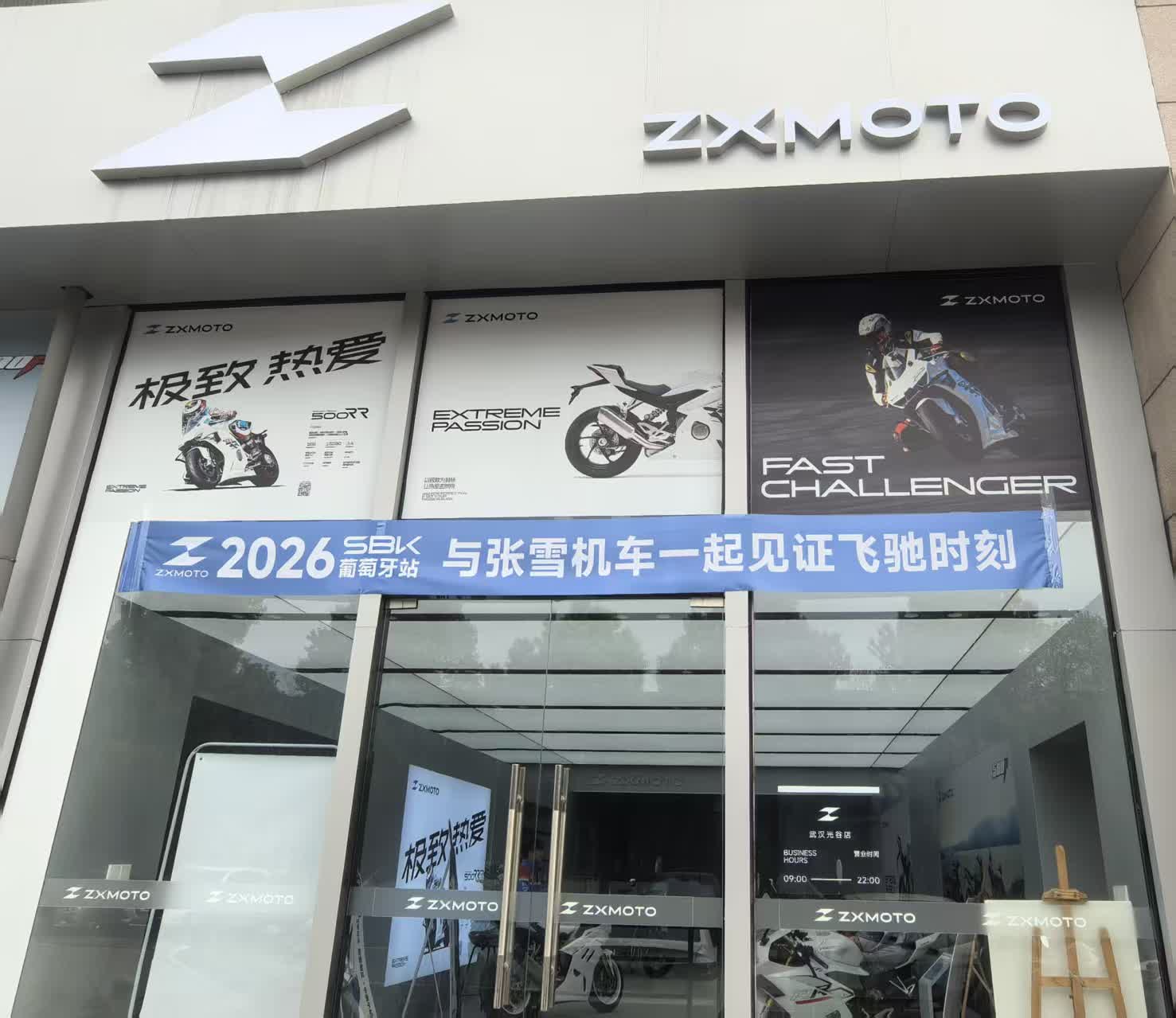 4月2日,大公文匯網記者在武漢光谷一家「張雪機車」門店採訪了解,「張雪機車」在WSBK賽場實現兩連勝後,這裏銷售火爆,門店特別在門面上方掛了寫着「與張雪機車一起見證飛馳時刻」的藍色橫幅。奪冠當日,銷售員直到凌晨還在忙着處理與顧客洽談訂單,「半夜還有客戶甩單過來」。